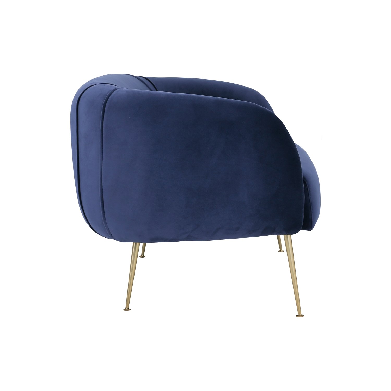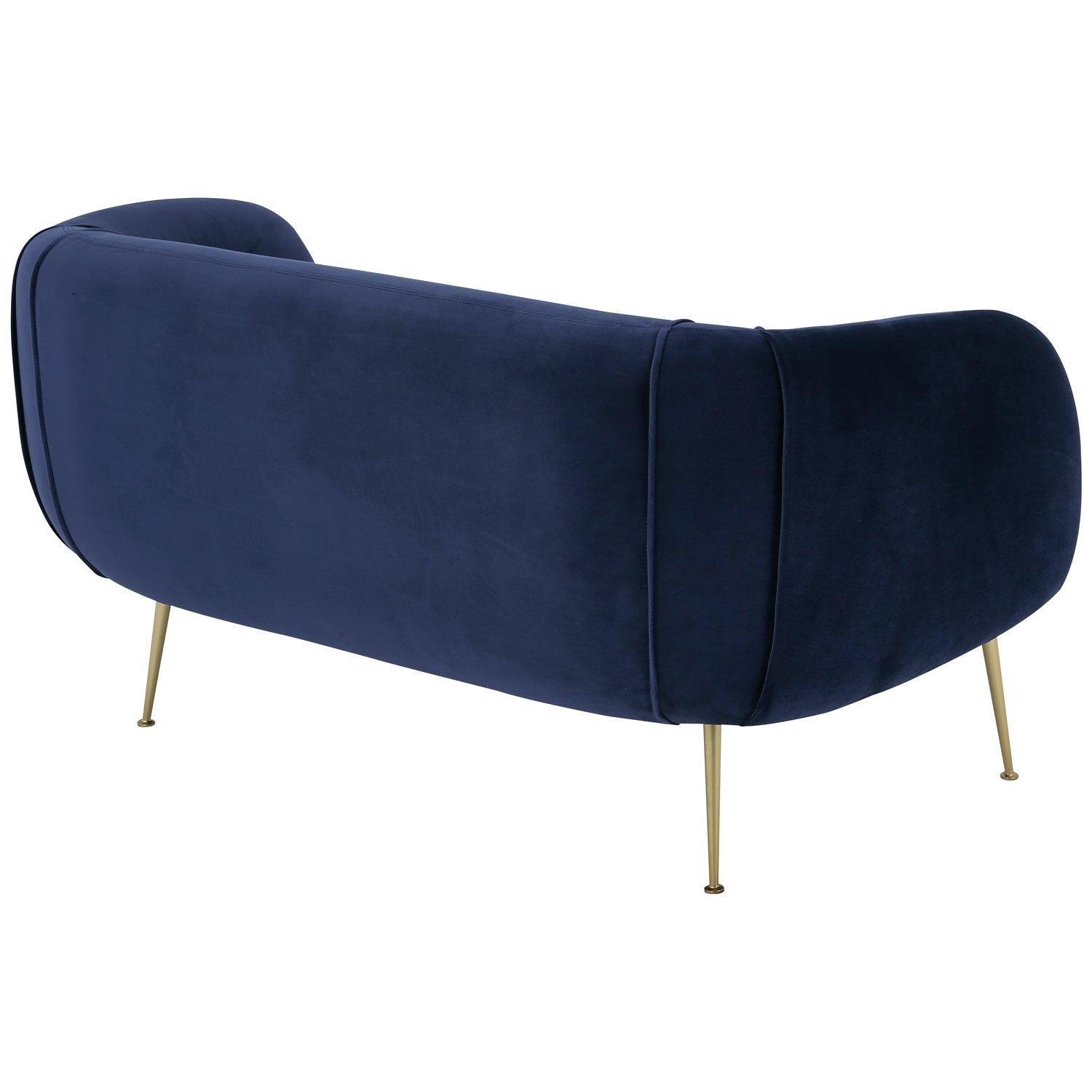 Alero 2 seater sofa with Gold plated leg, Midnight Blue colour in Veloutine fabric