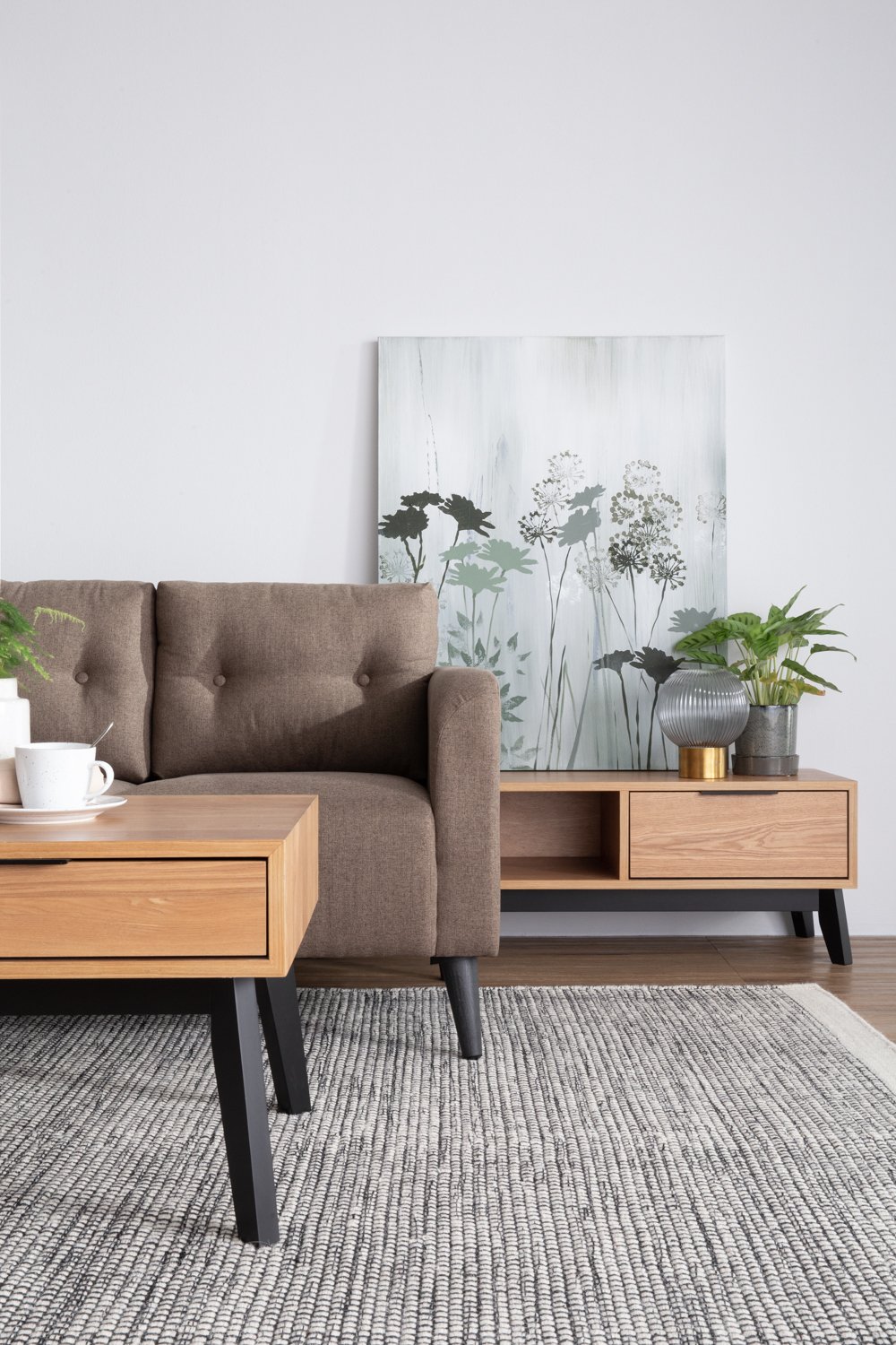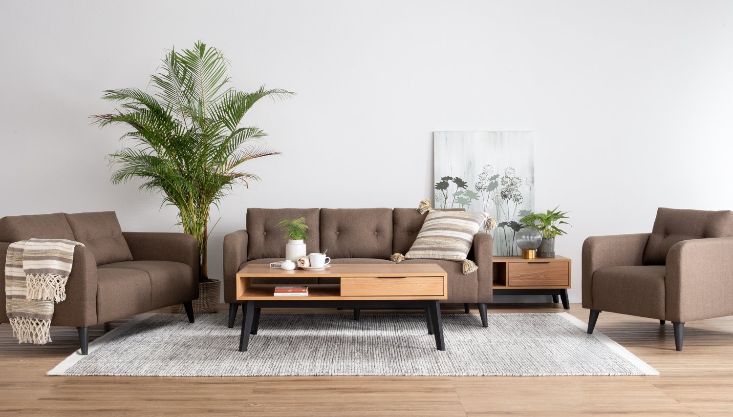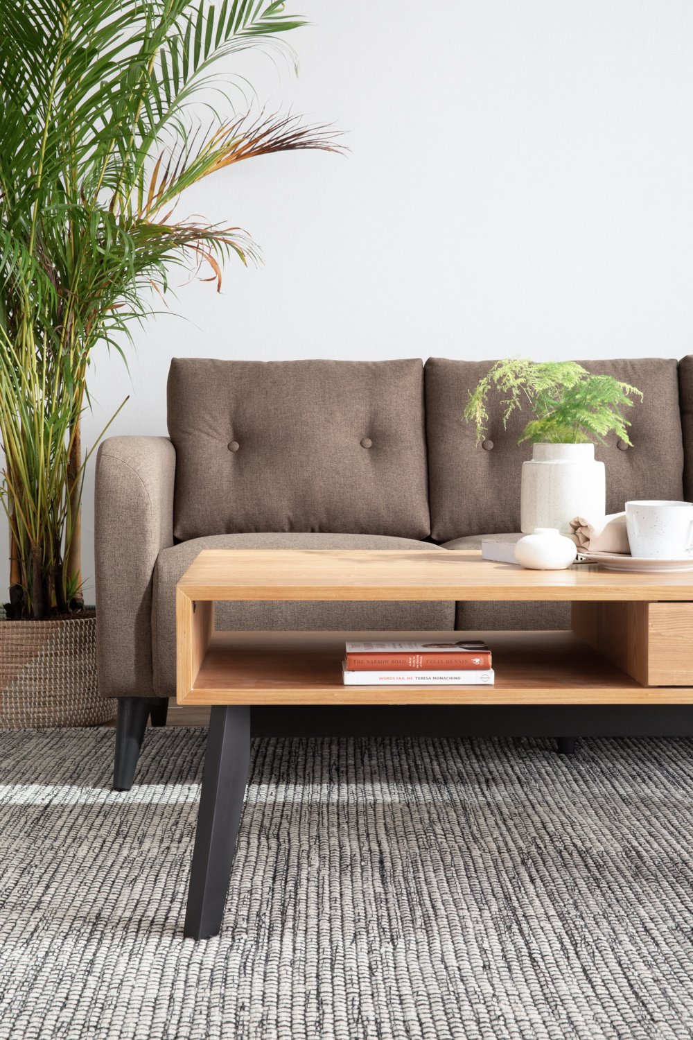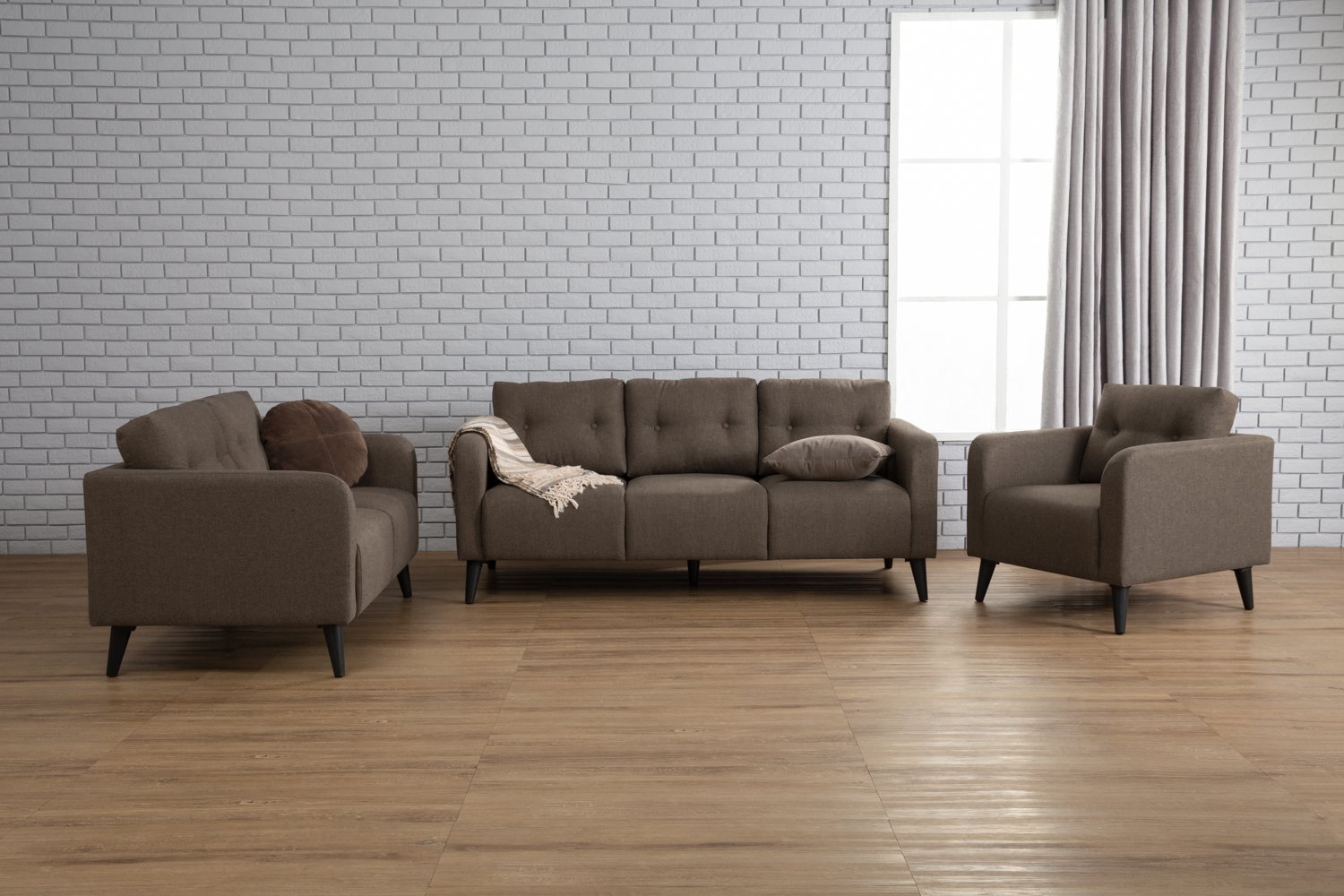 Alto 3 seater sofa in Black colour leg, Chestnut colour Challis fabric body