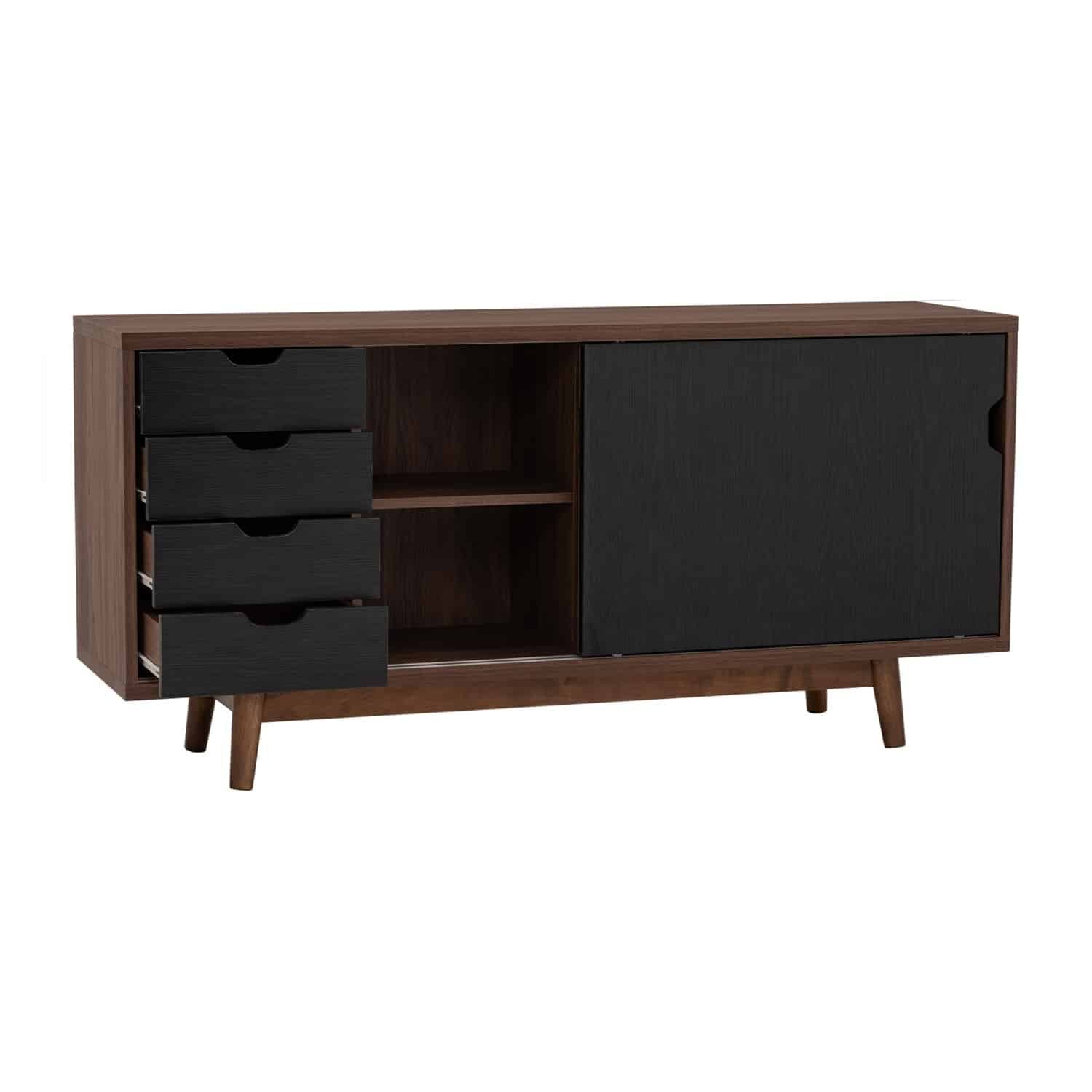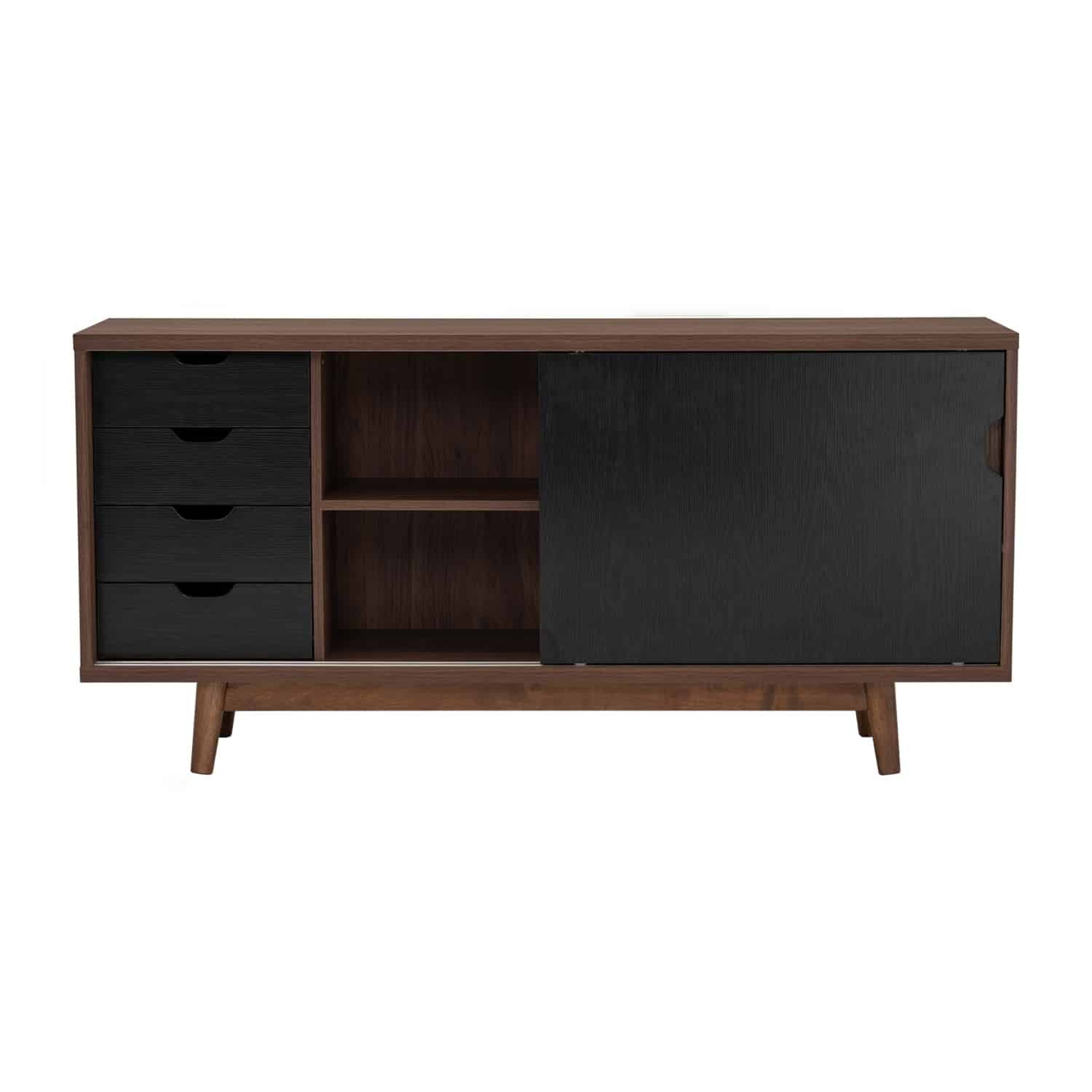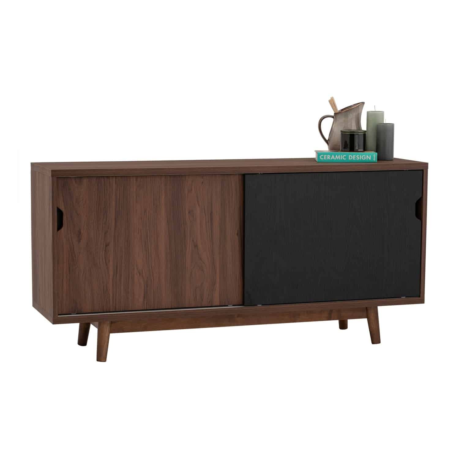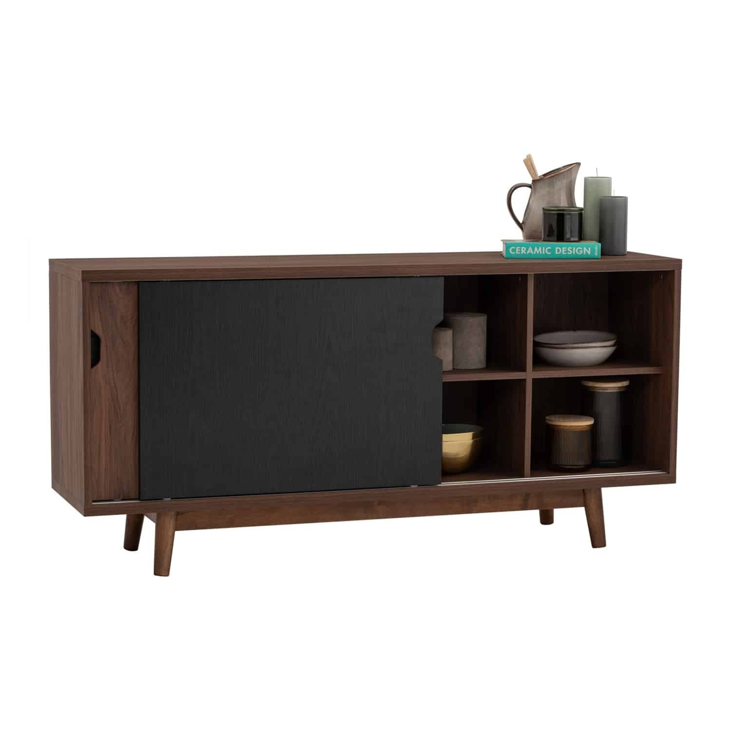 Anas sideboard on Cocoa leg, Walnut laminate body and door and Black laminate door