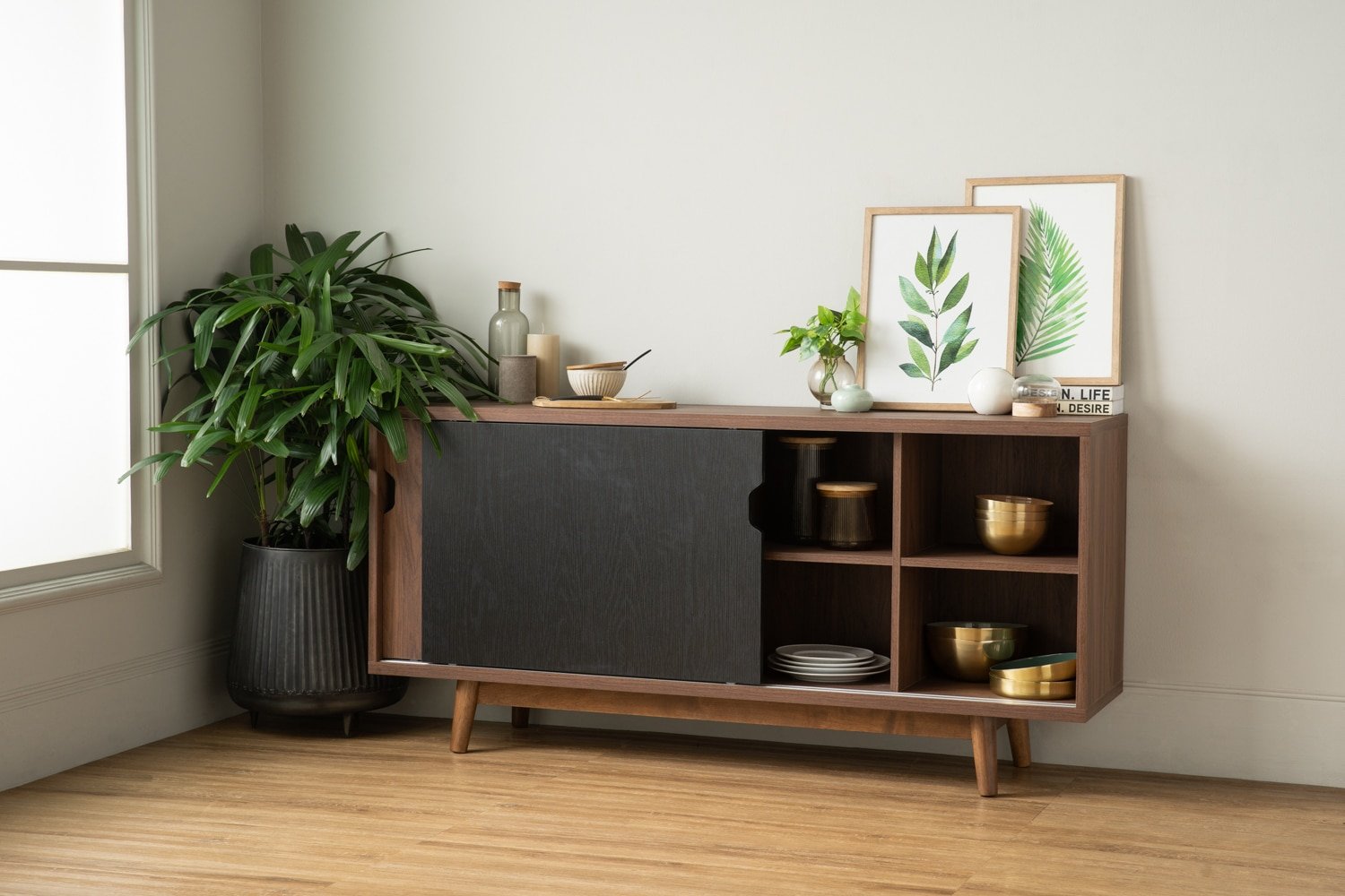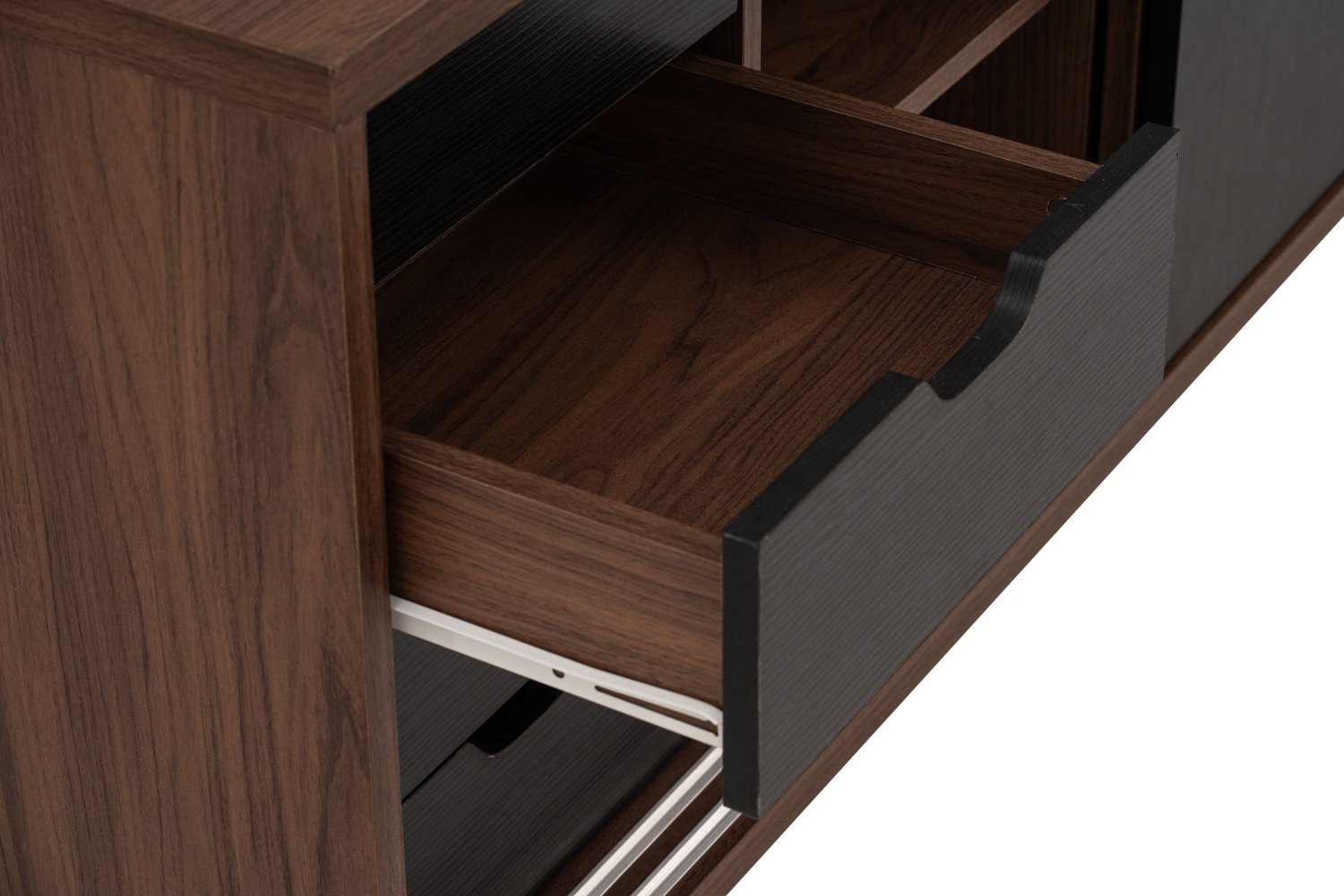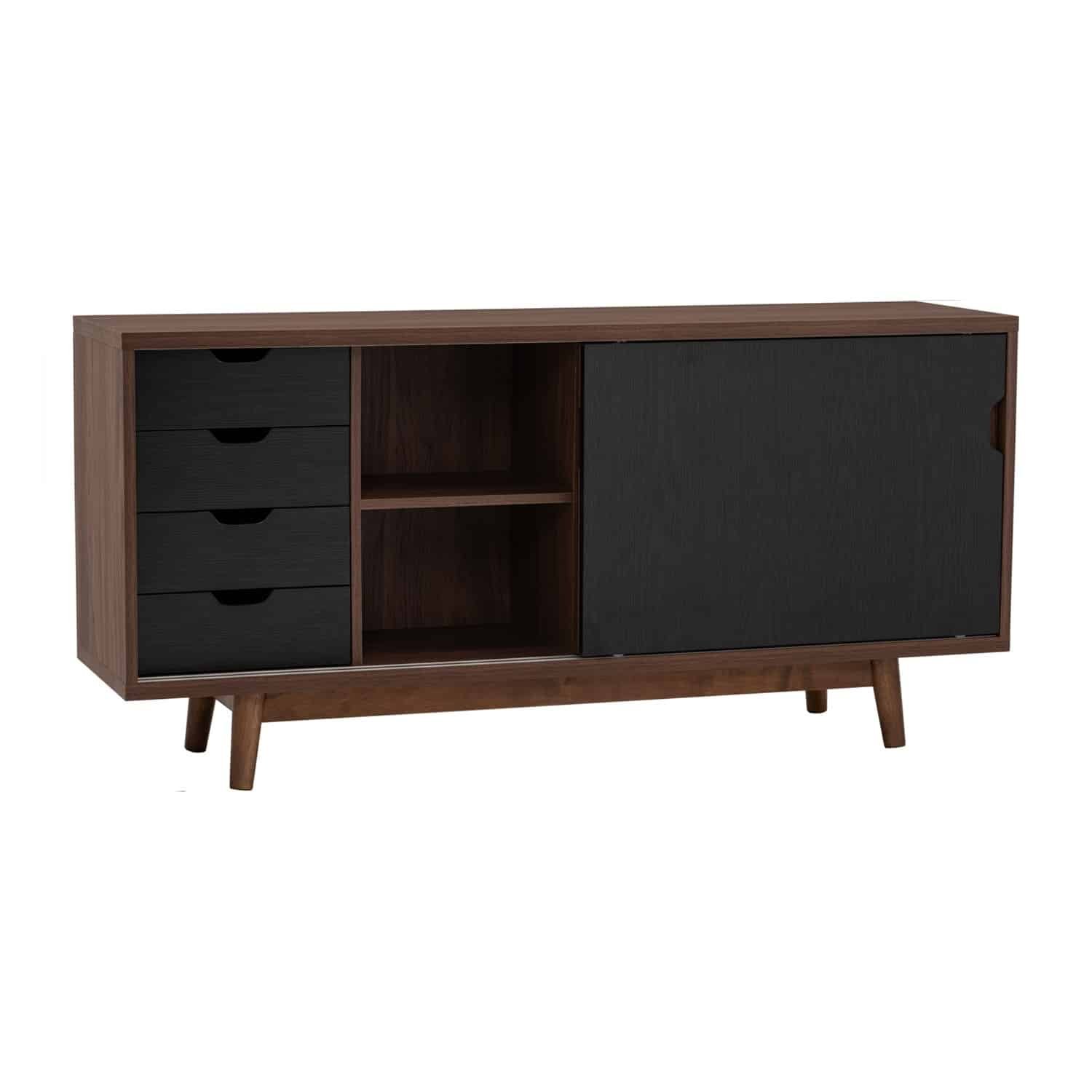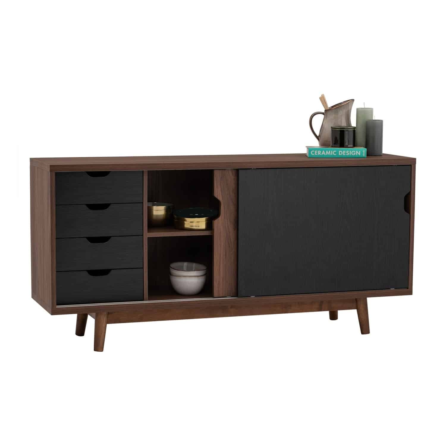 Anas sideboard on Cocoa leg, Walnut laminate body and door and Black laminate door
