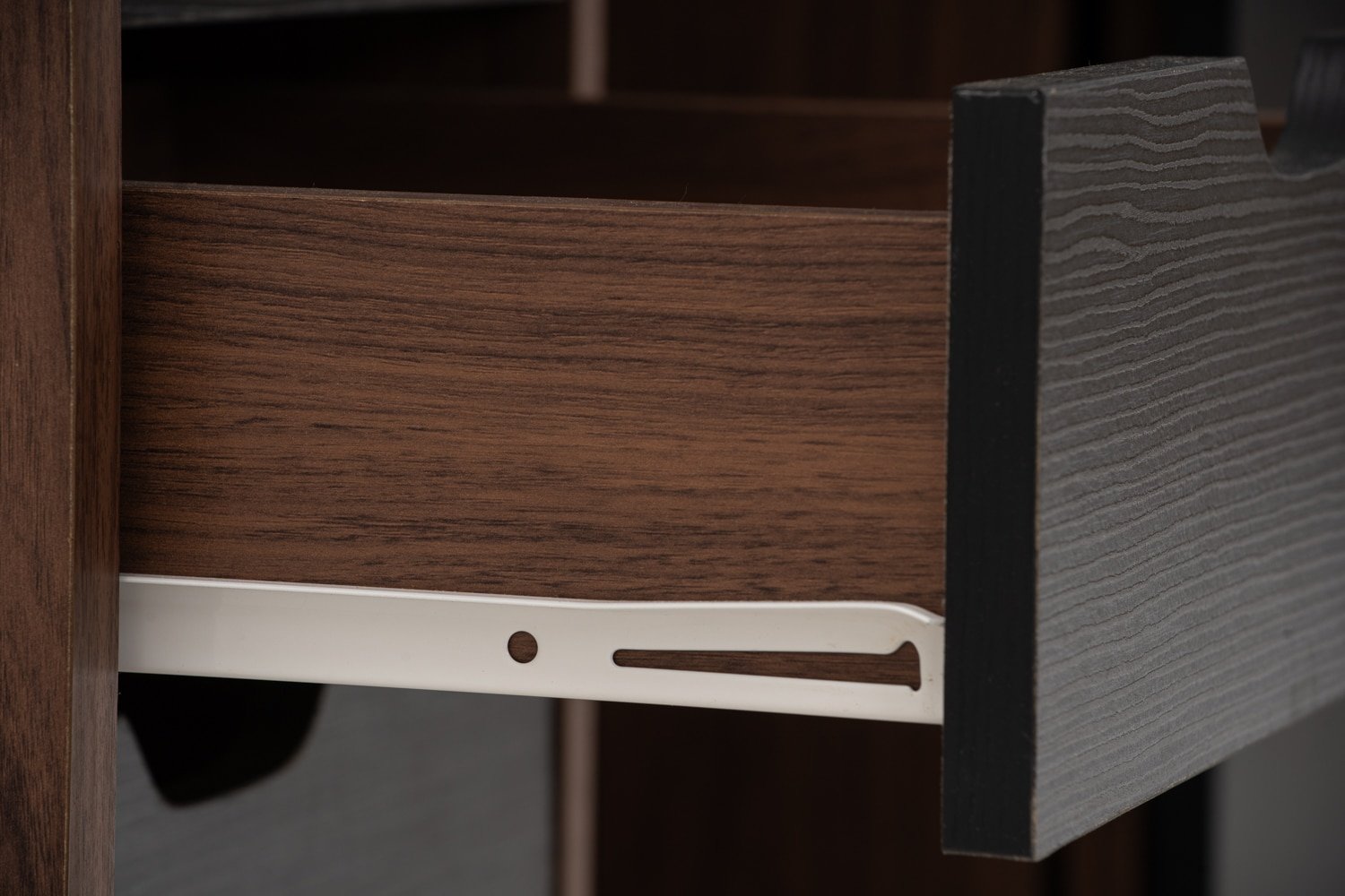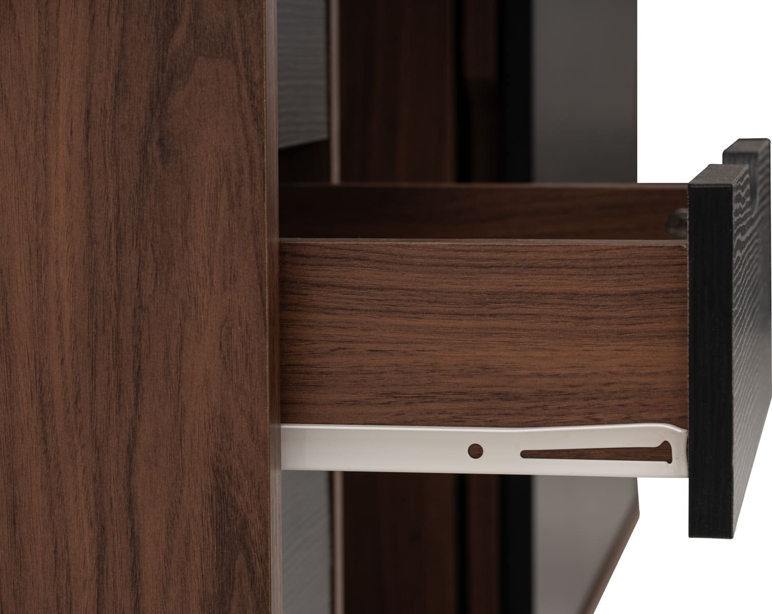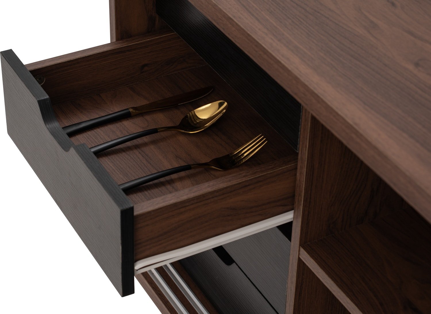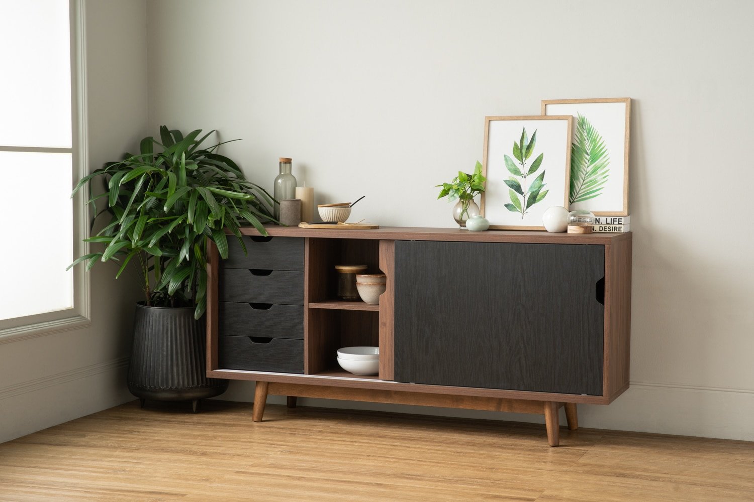 Anas sideboard on Cocoa leg, Walnut laminate body and door and Black laminate door