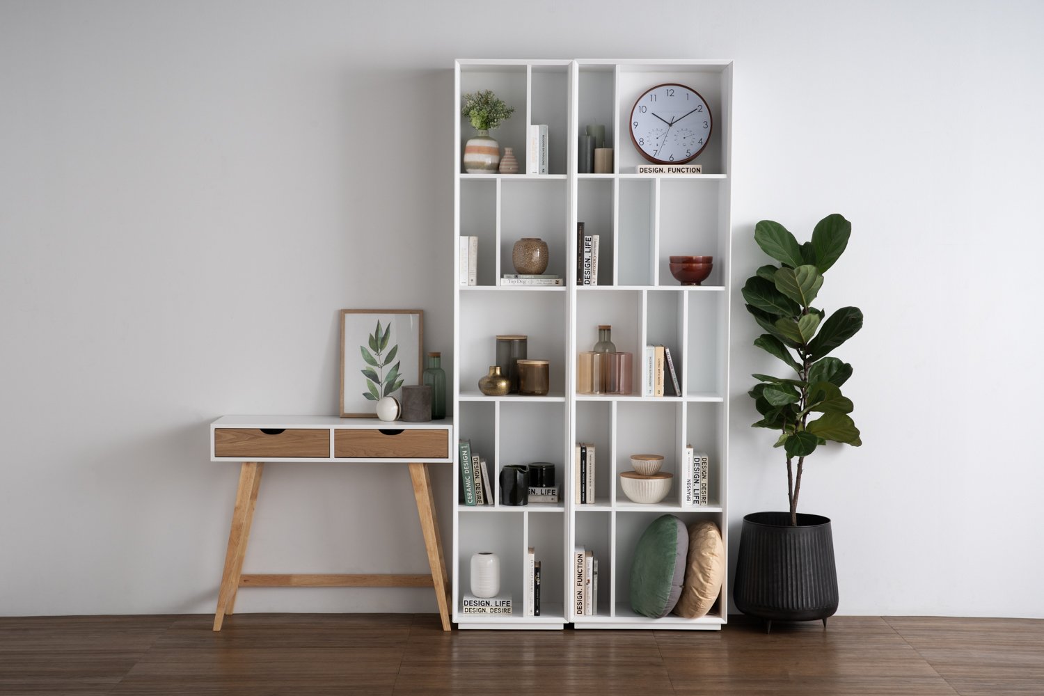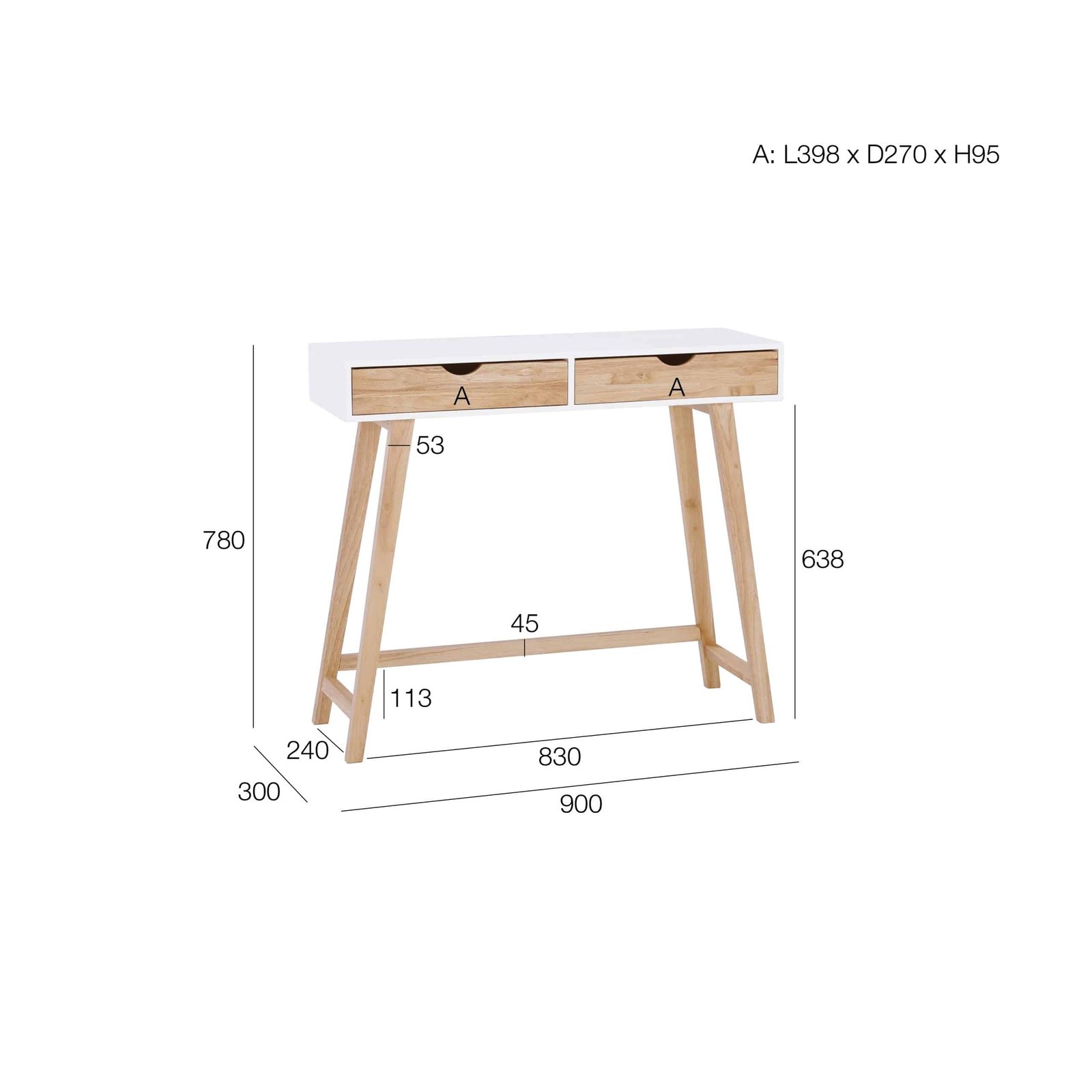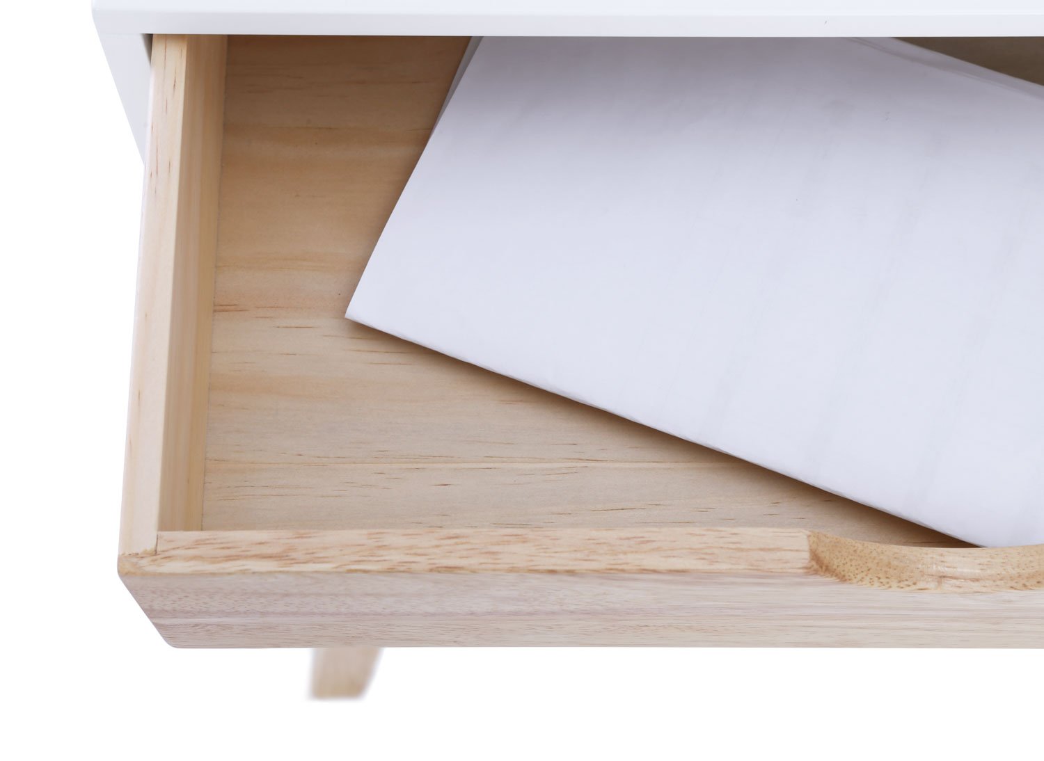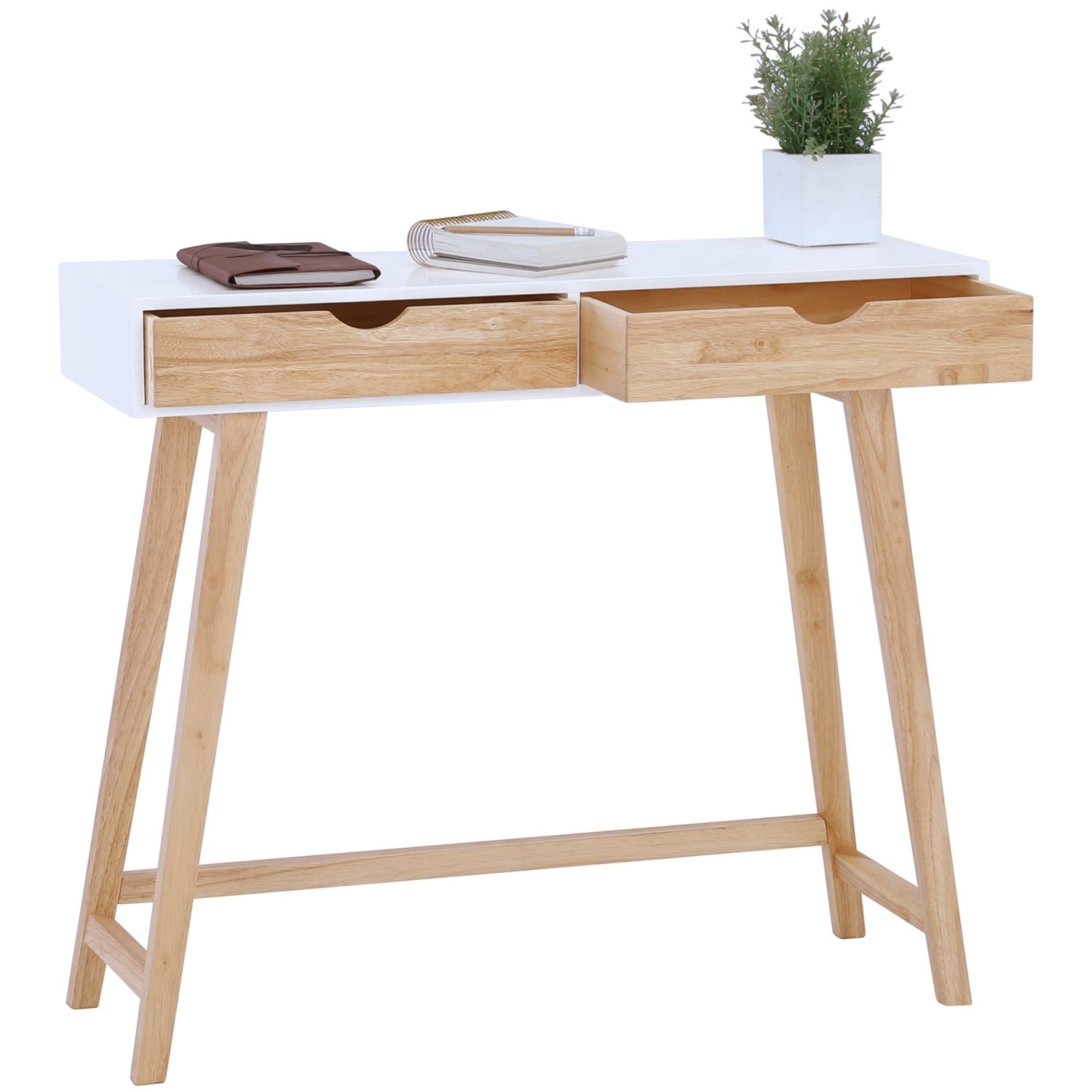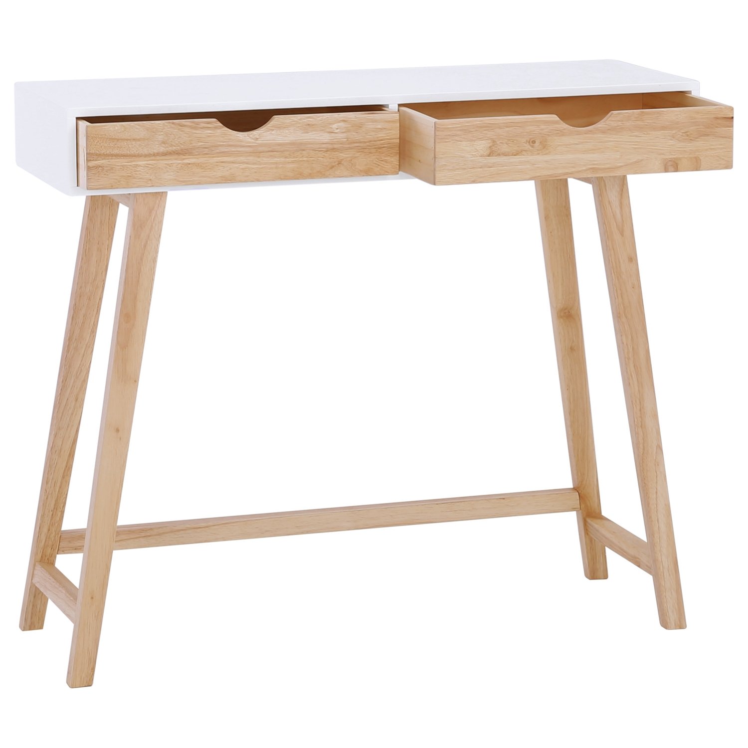 Arsenio console table in White colour top and Natural colour drawer, Natural leg