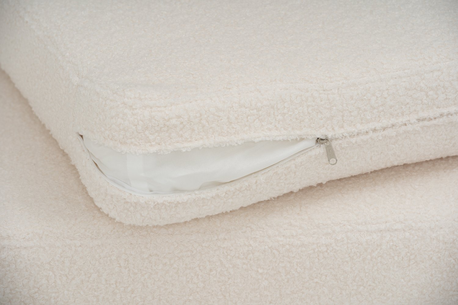 Aston stool in Cocoa colour frame, Pearl White colour Furry fabric cushion