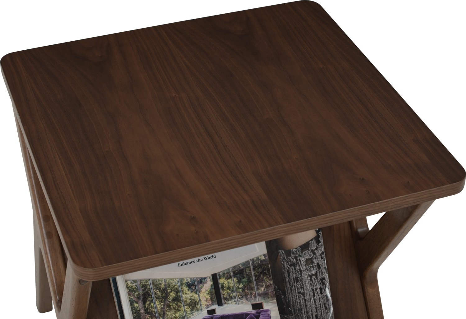 Aston side table in Walnut veneer top and shelf, Cocoa colour leg