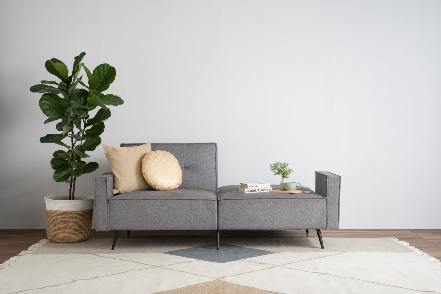 Austral 3 seater sofa in Black colour leg, Oyster Bay colour Chevron fabric