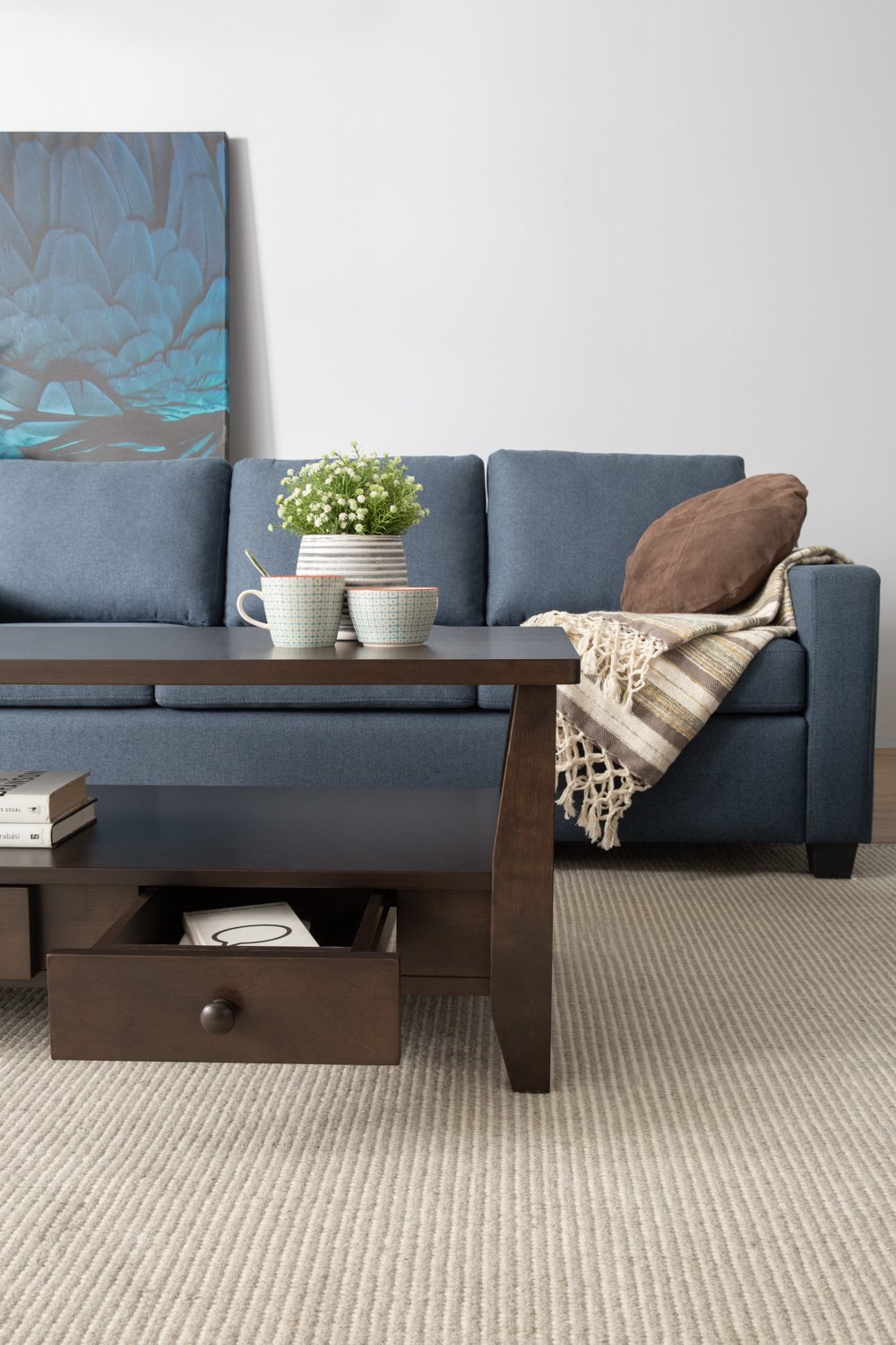 Baleno 3 seater sofa in Black colour leg, Yale colour Challis fabric body