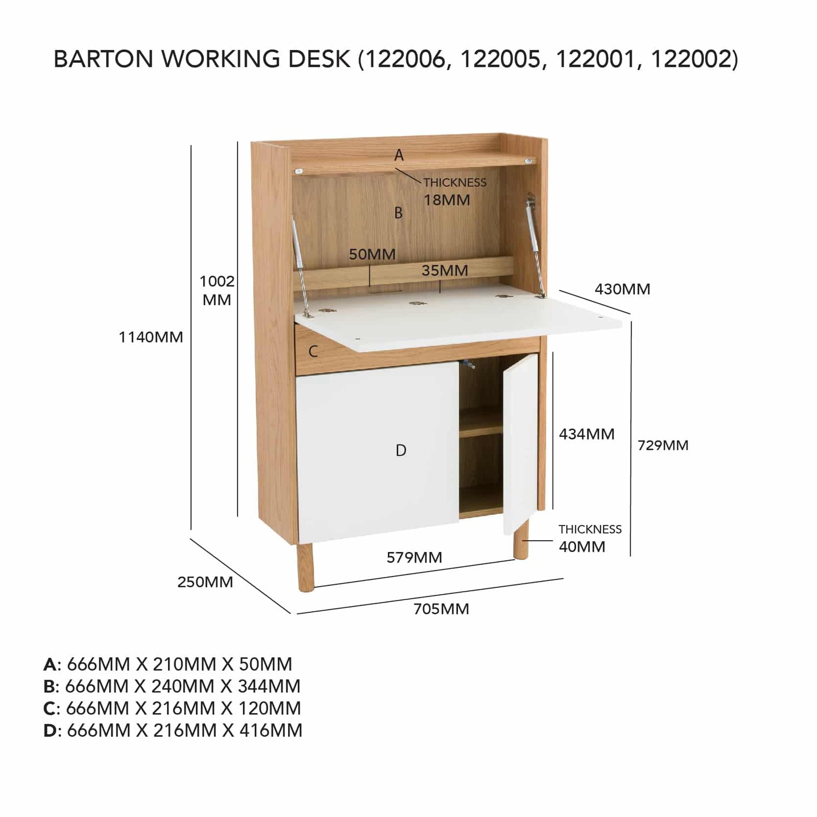Barton working desk in Oak colour body, Space Blue colour door and Oak colour leg