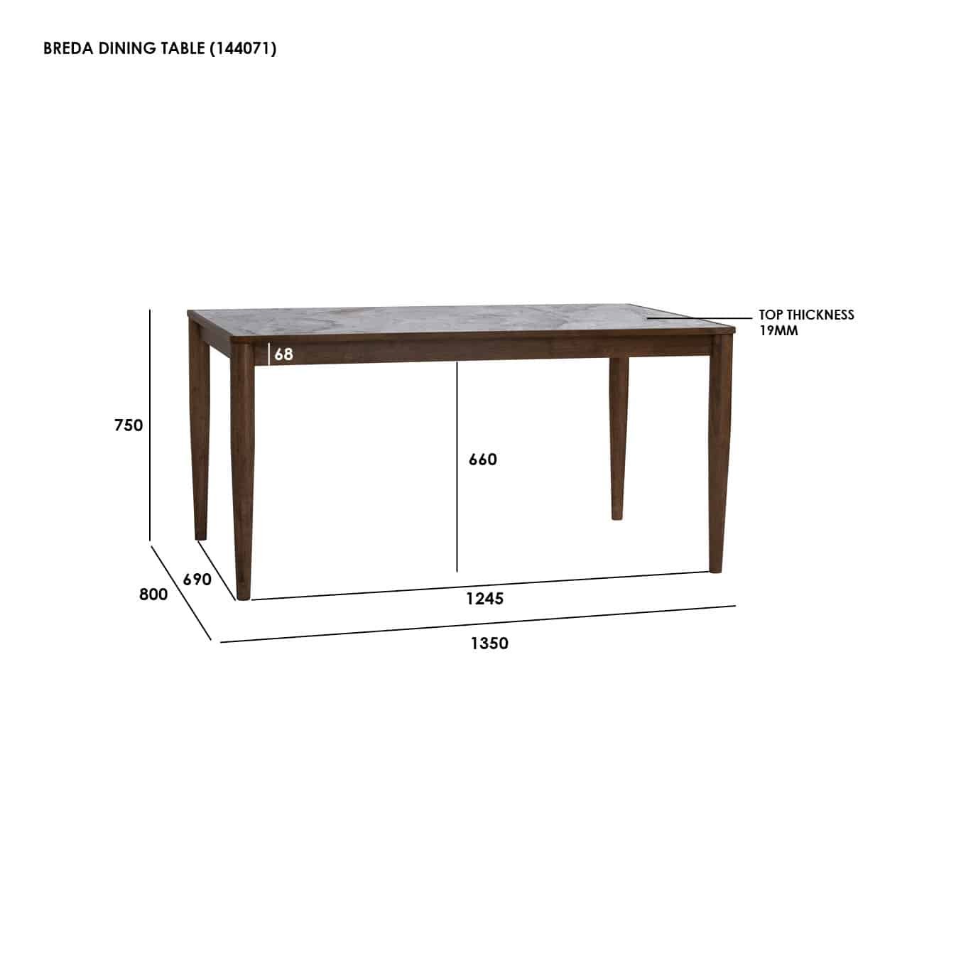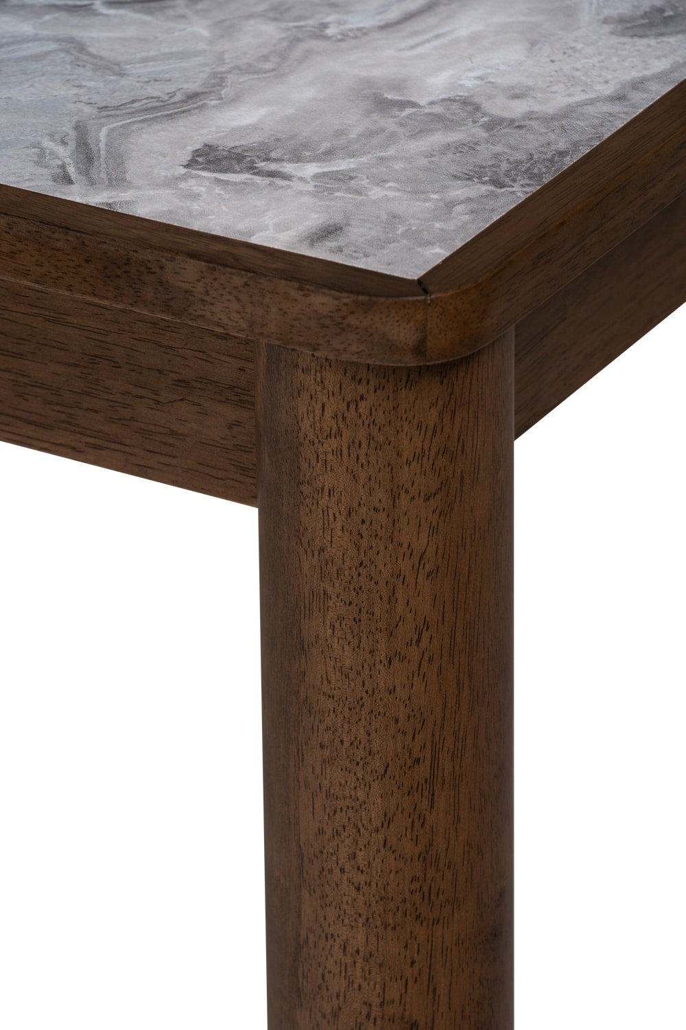 Breda 800×1350 dining table leg in Cocoa colour, White Marble colour Melamine top