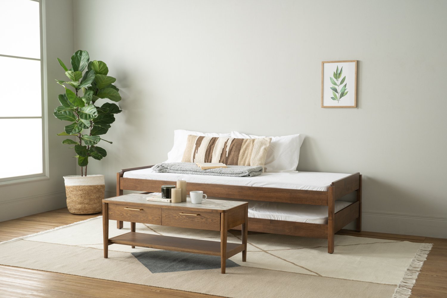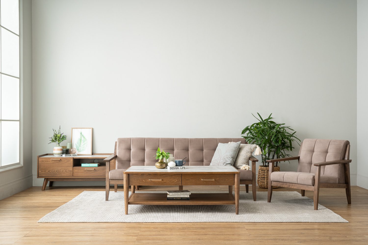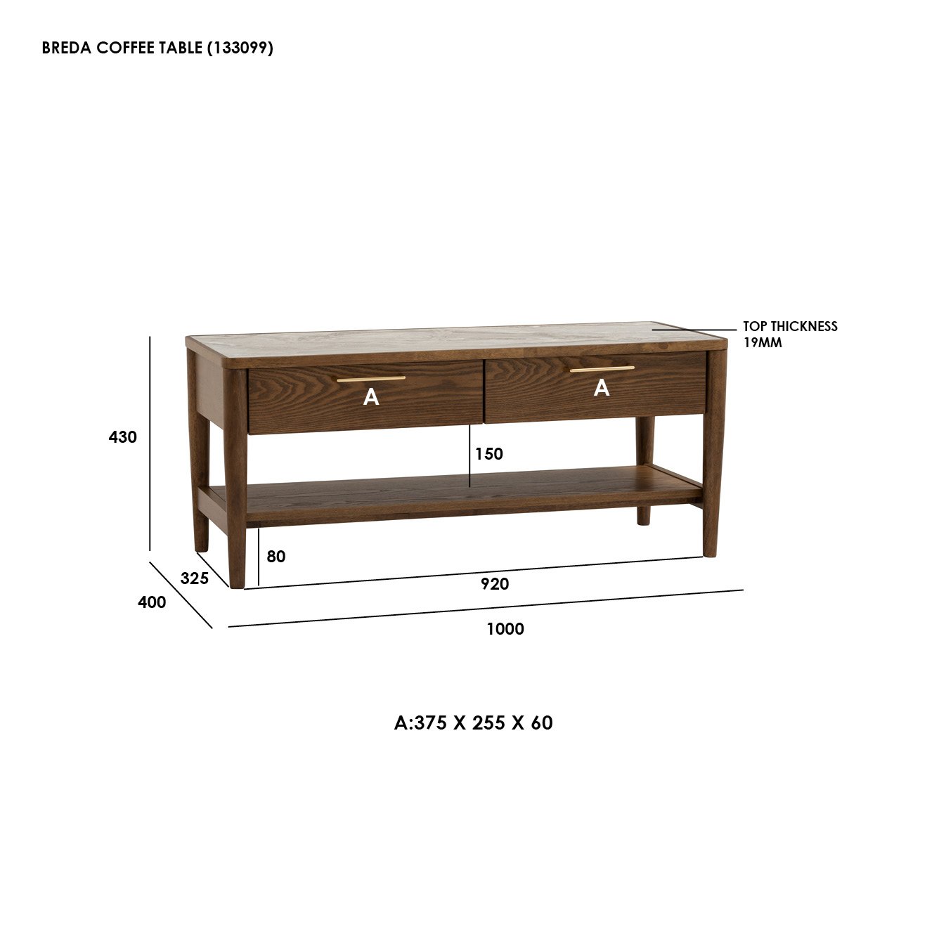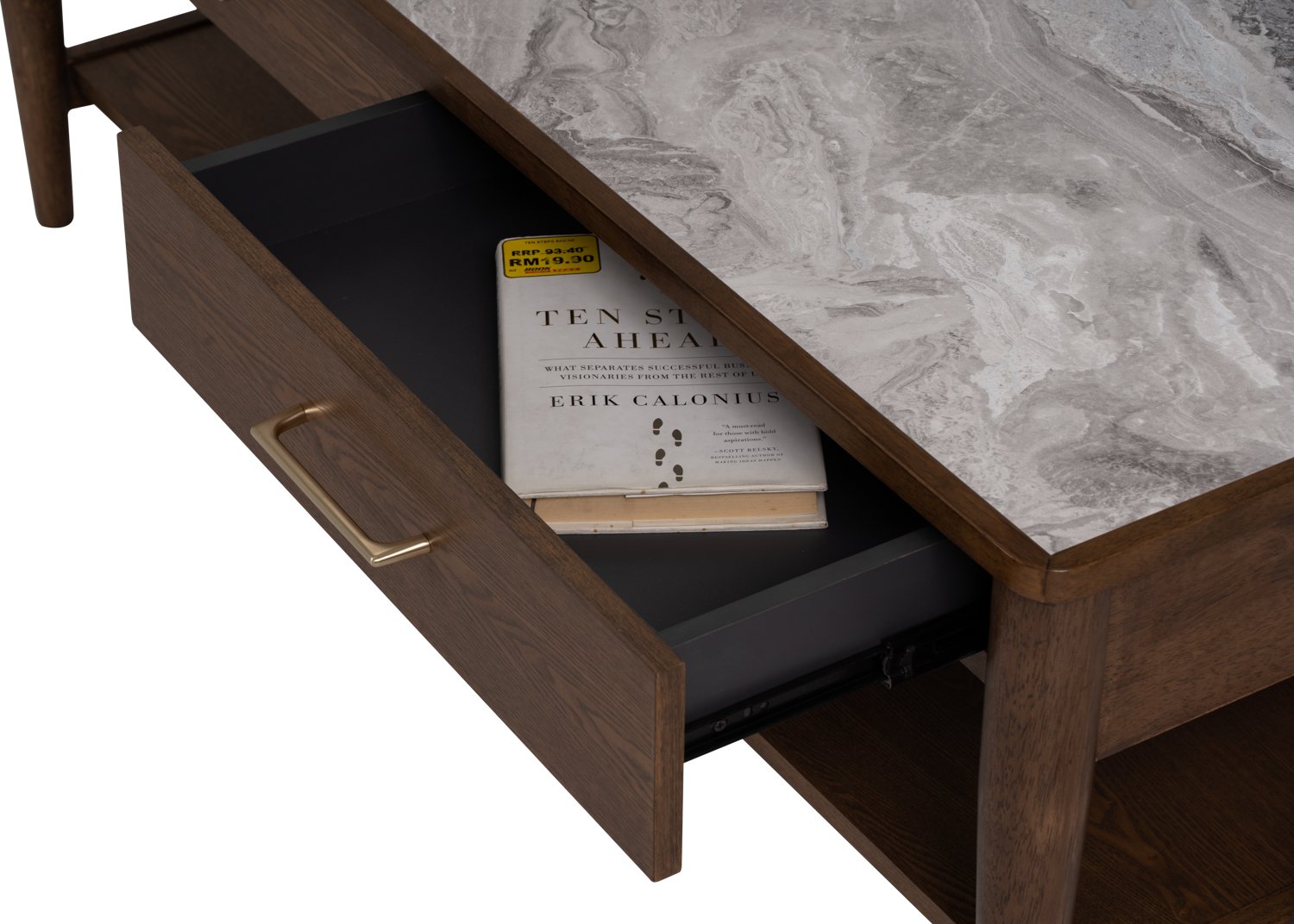 Breda coffee table in White Marble melamine top, Cocoa colour leg