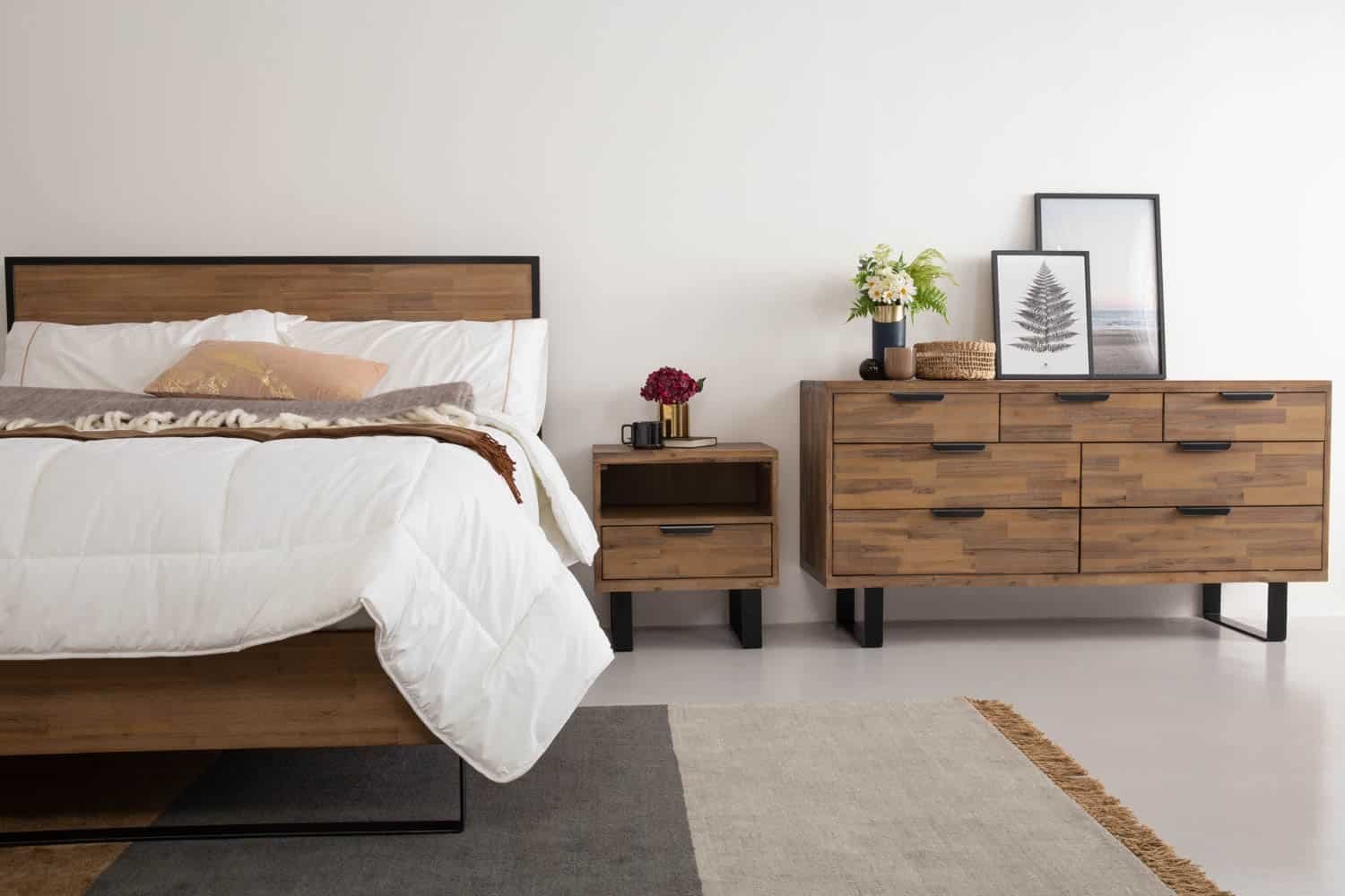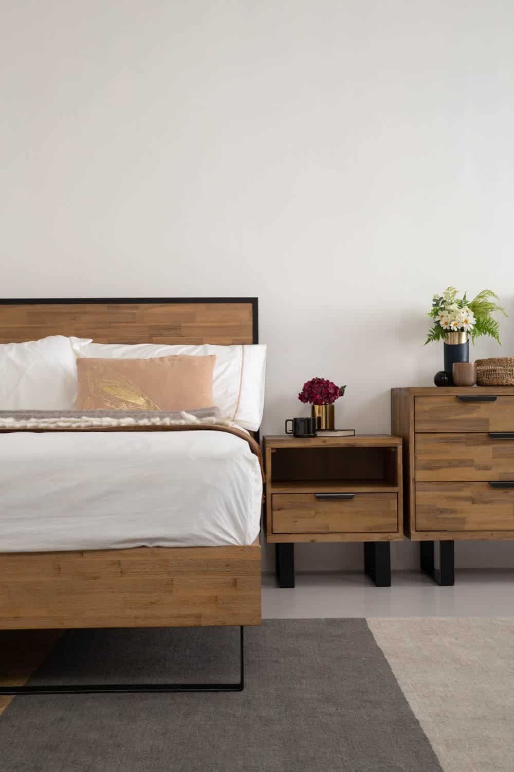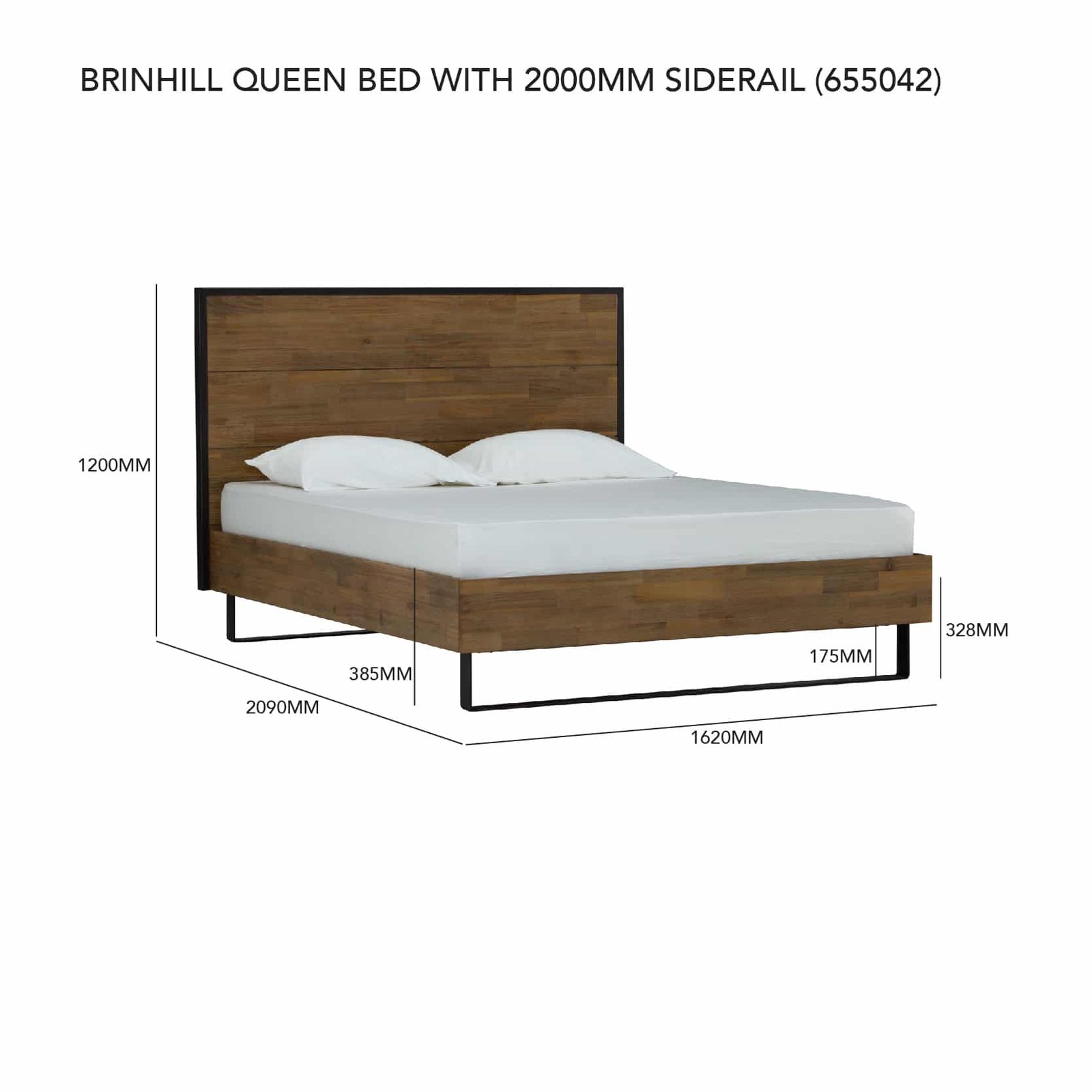 Brinhill Queen Bed on Matt Black Epoxy colour metal leg, Light Tennessee Walnut colour frame (Fit mattress : 1520mm x 2010mm)