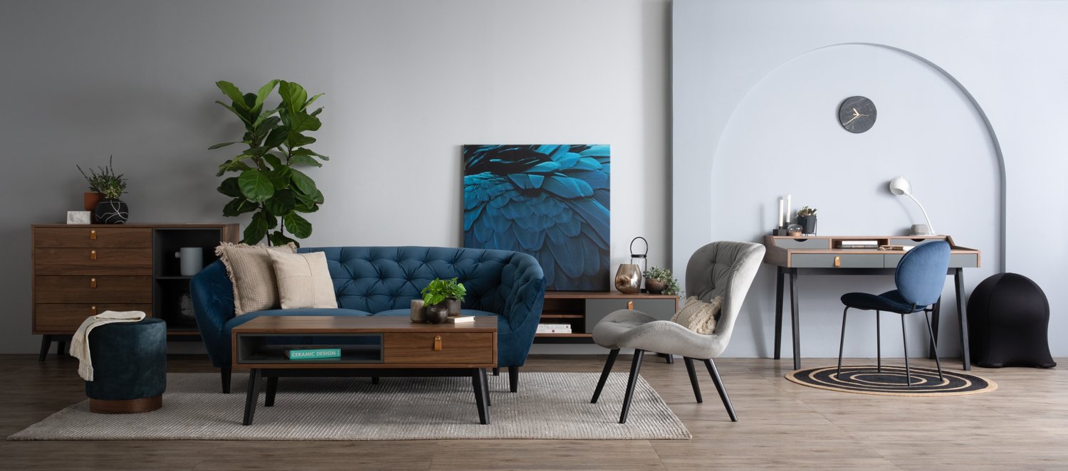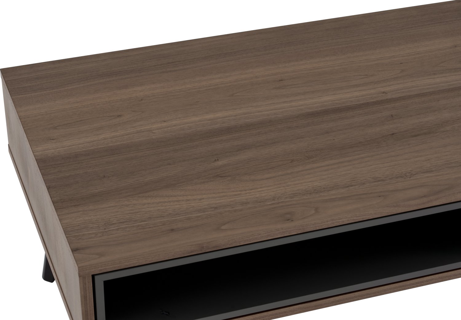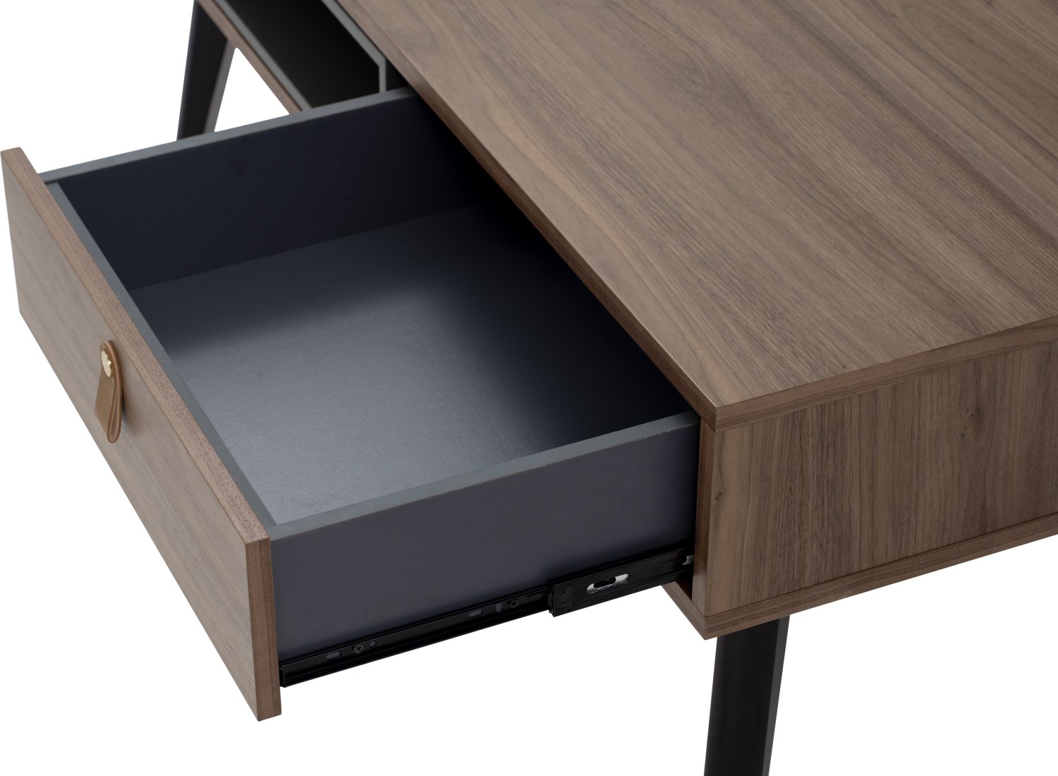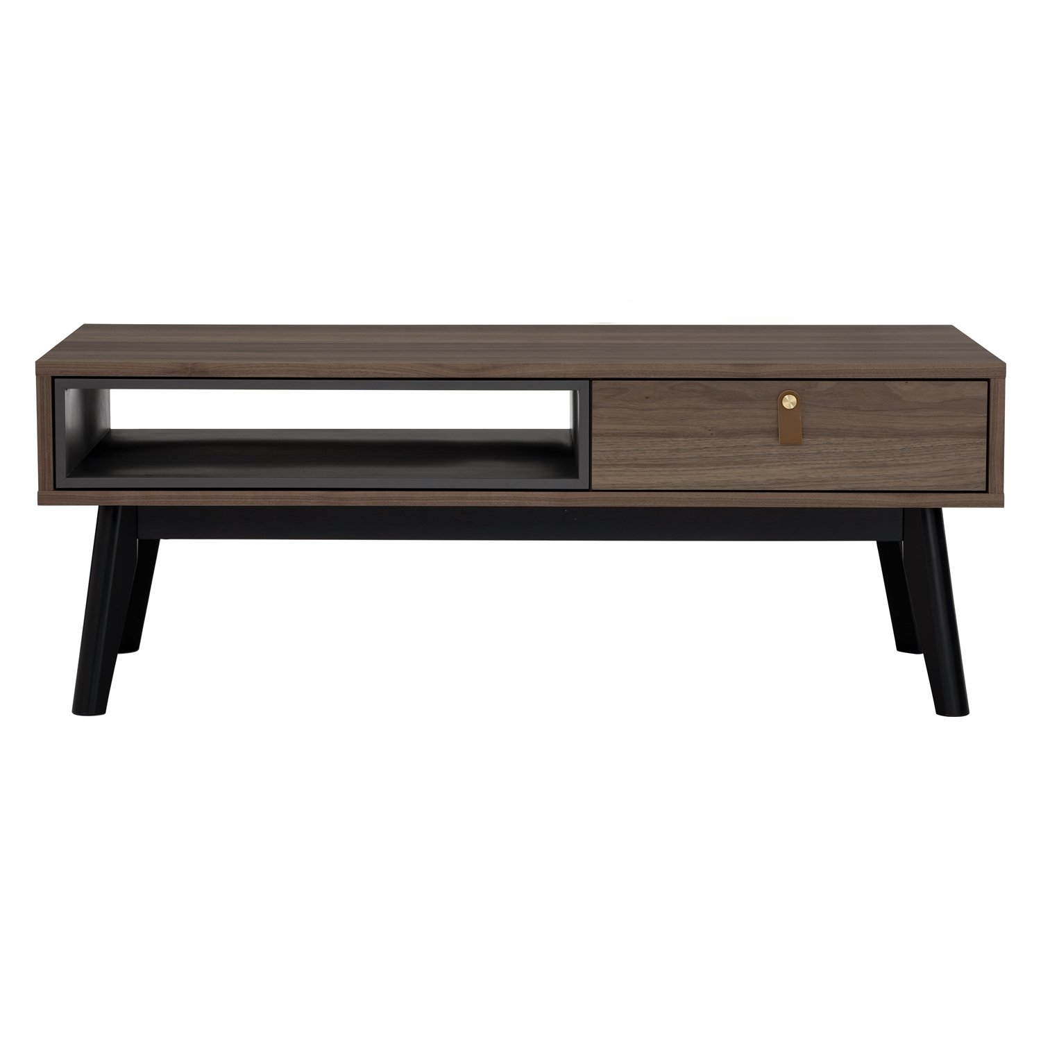 Castor Coffee Table in Walnut veneer top, Gunmetal Grey colour drawer with Black colour leg