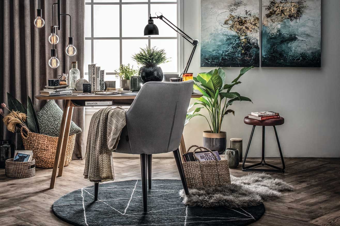 Cawny Dining Chair with Black colour leg, Pale Silver colour Saxony fabric