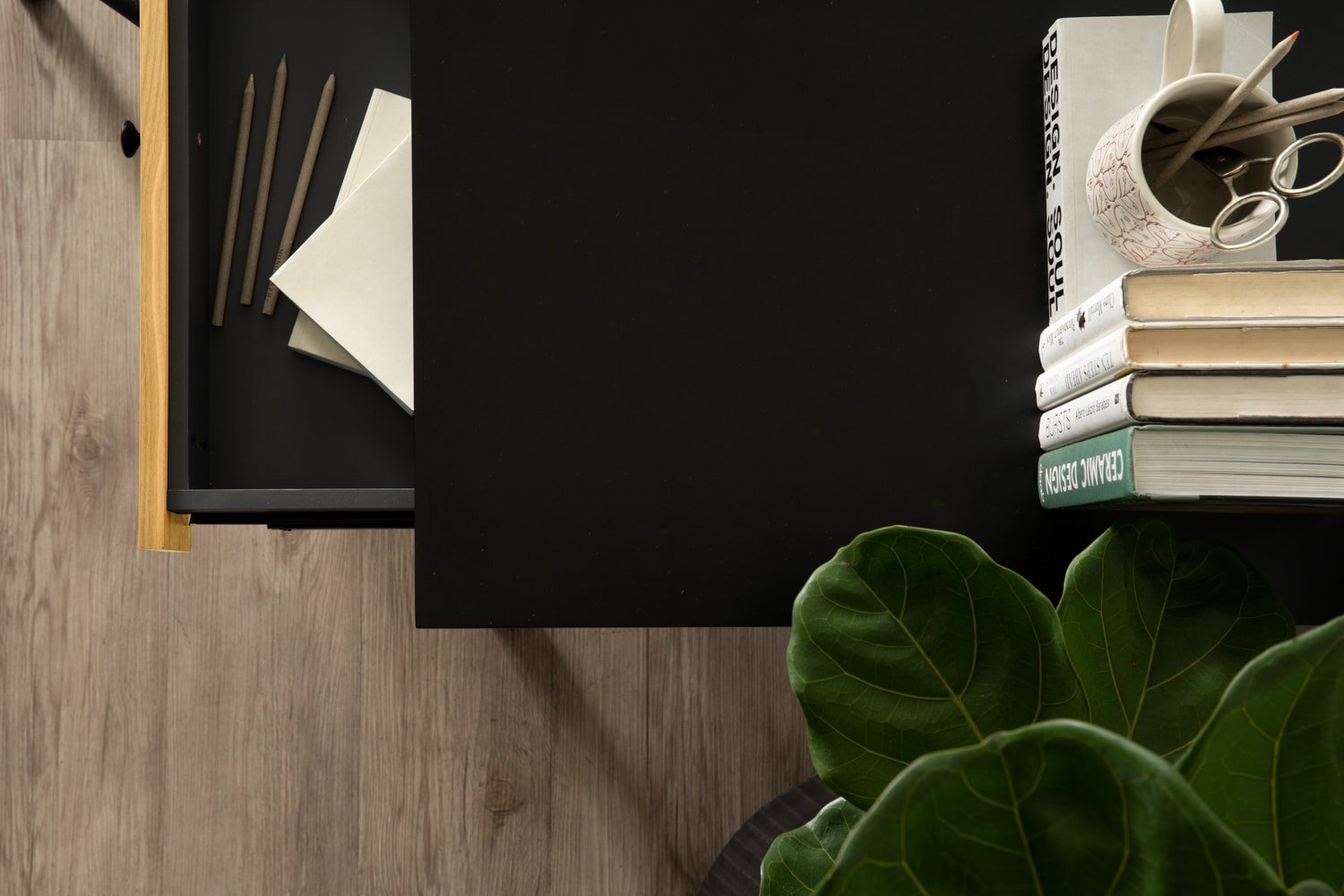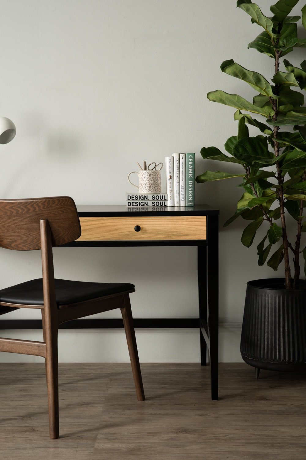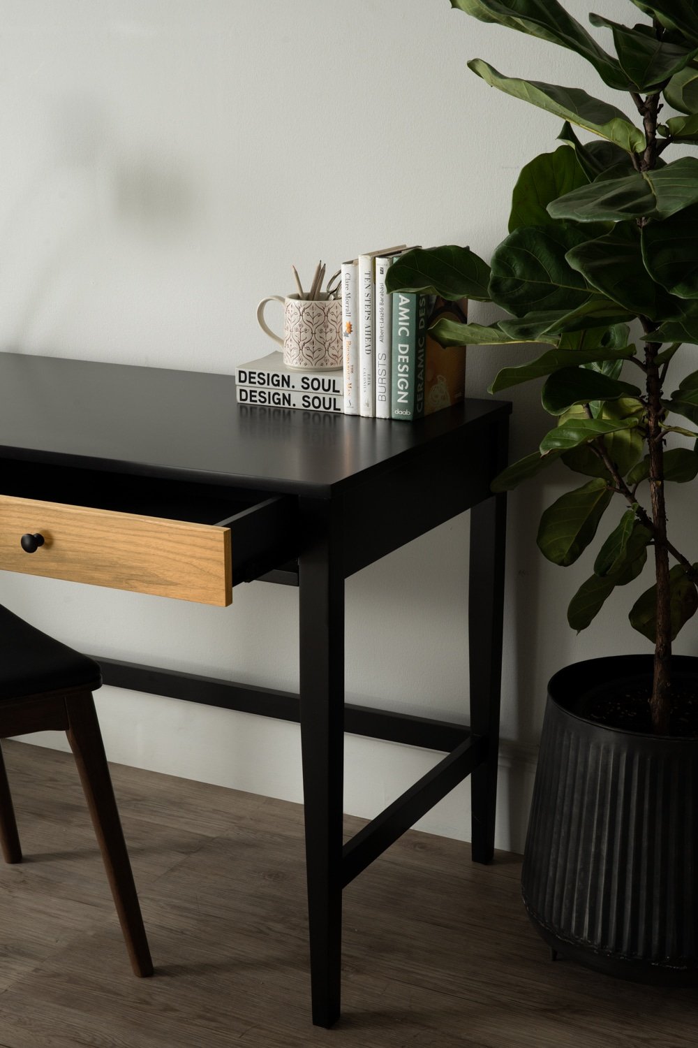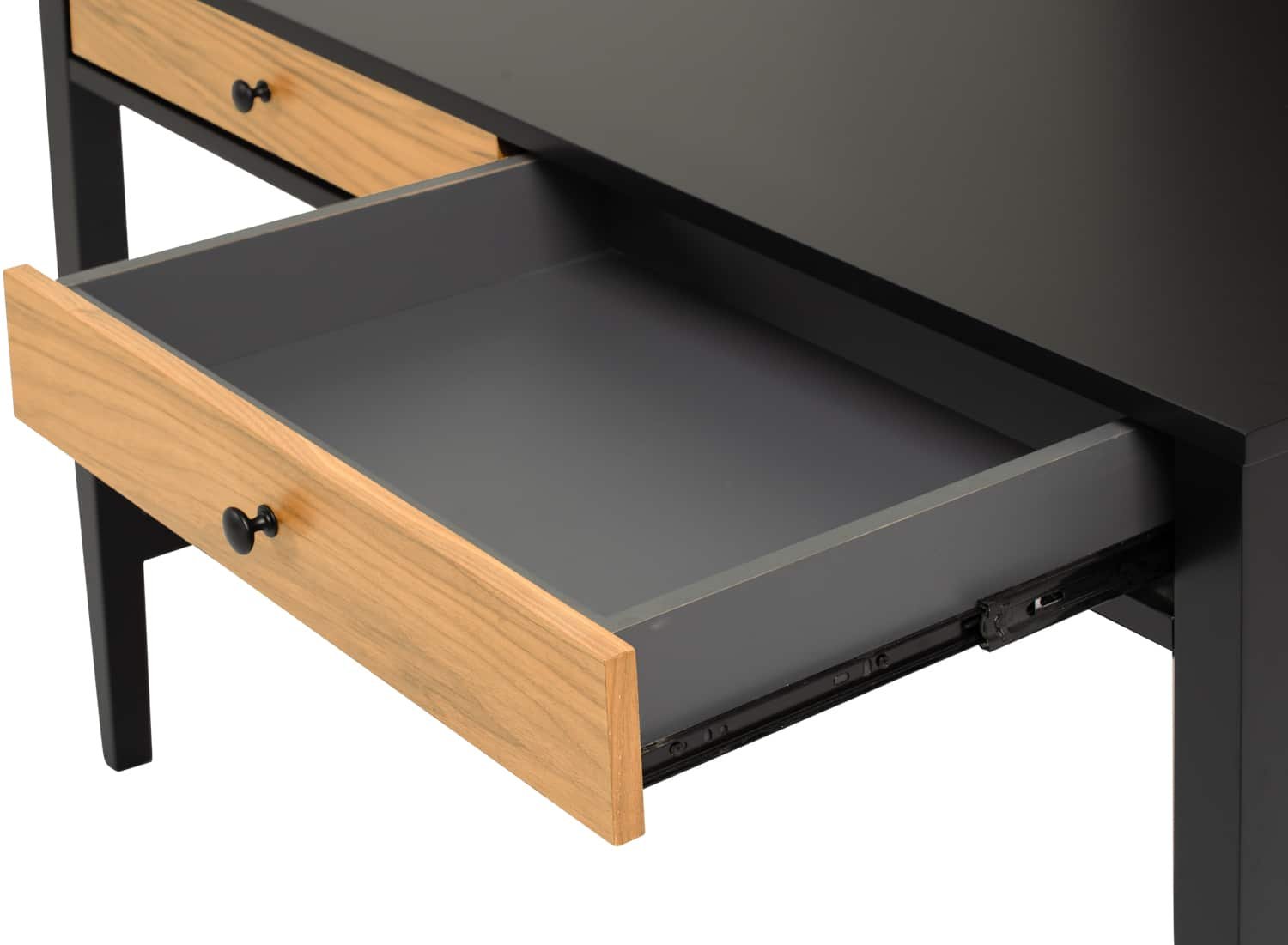 Conall working desk in Black colour leg, Black colour top and Natural drawer