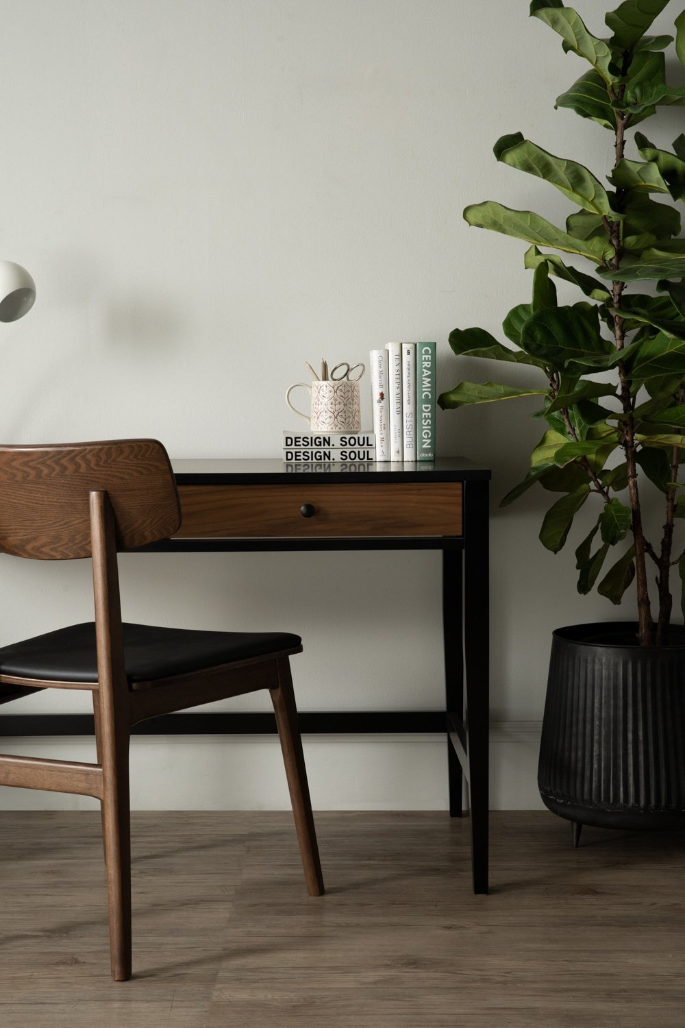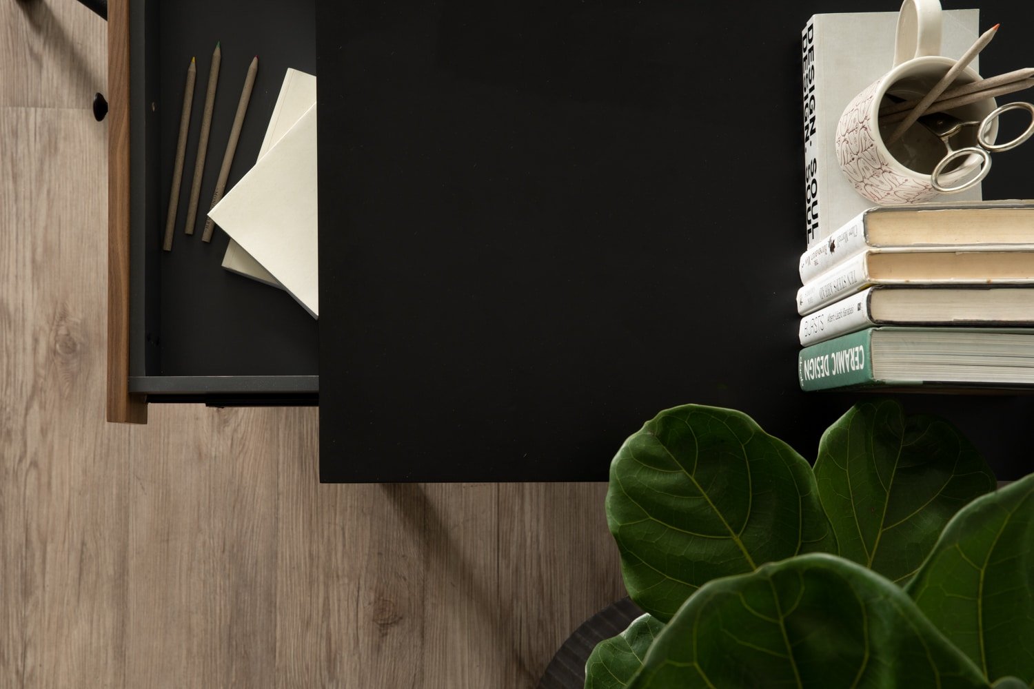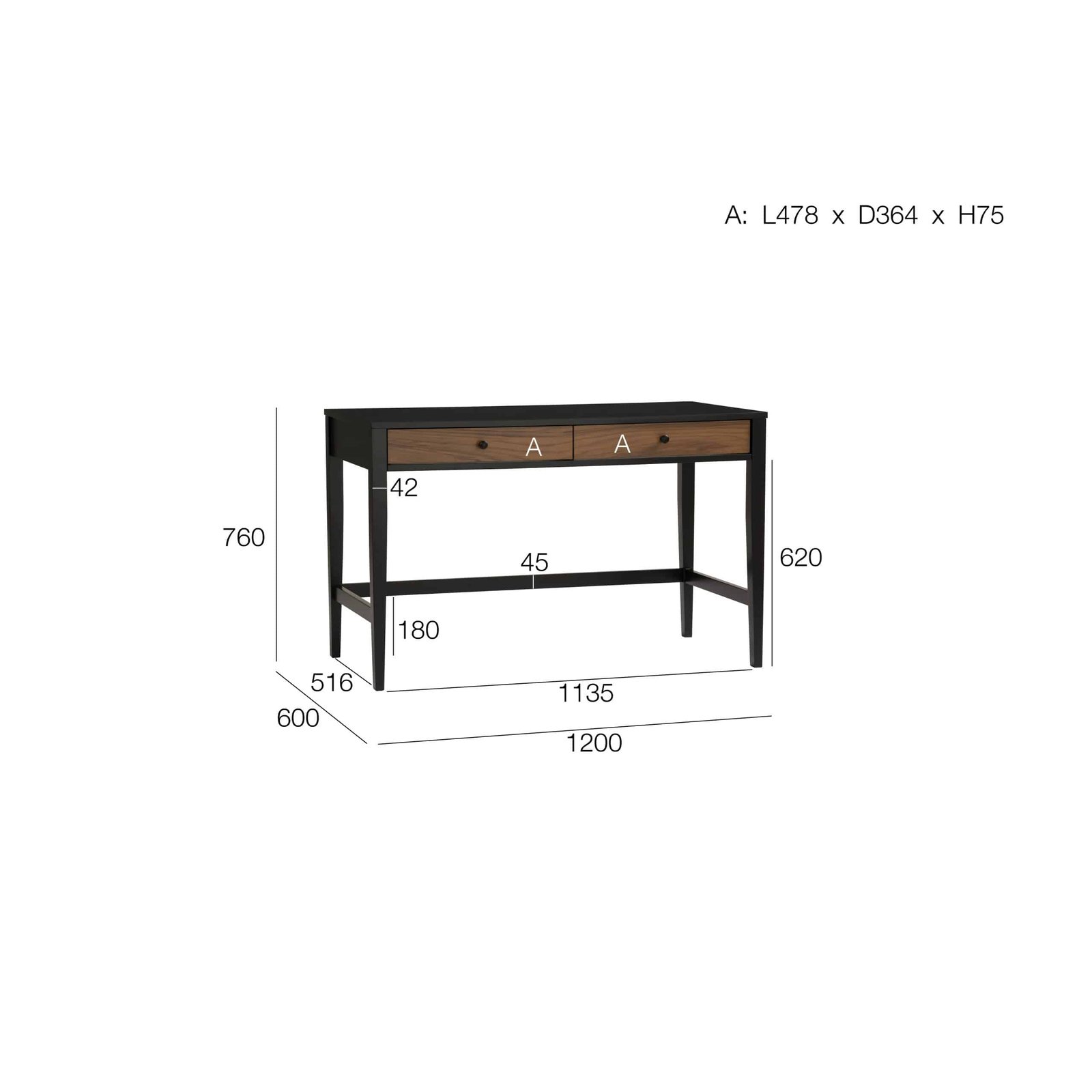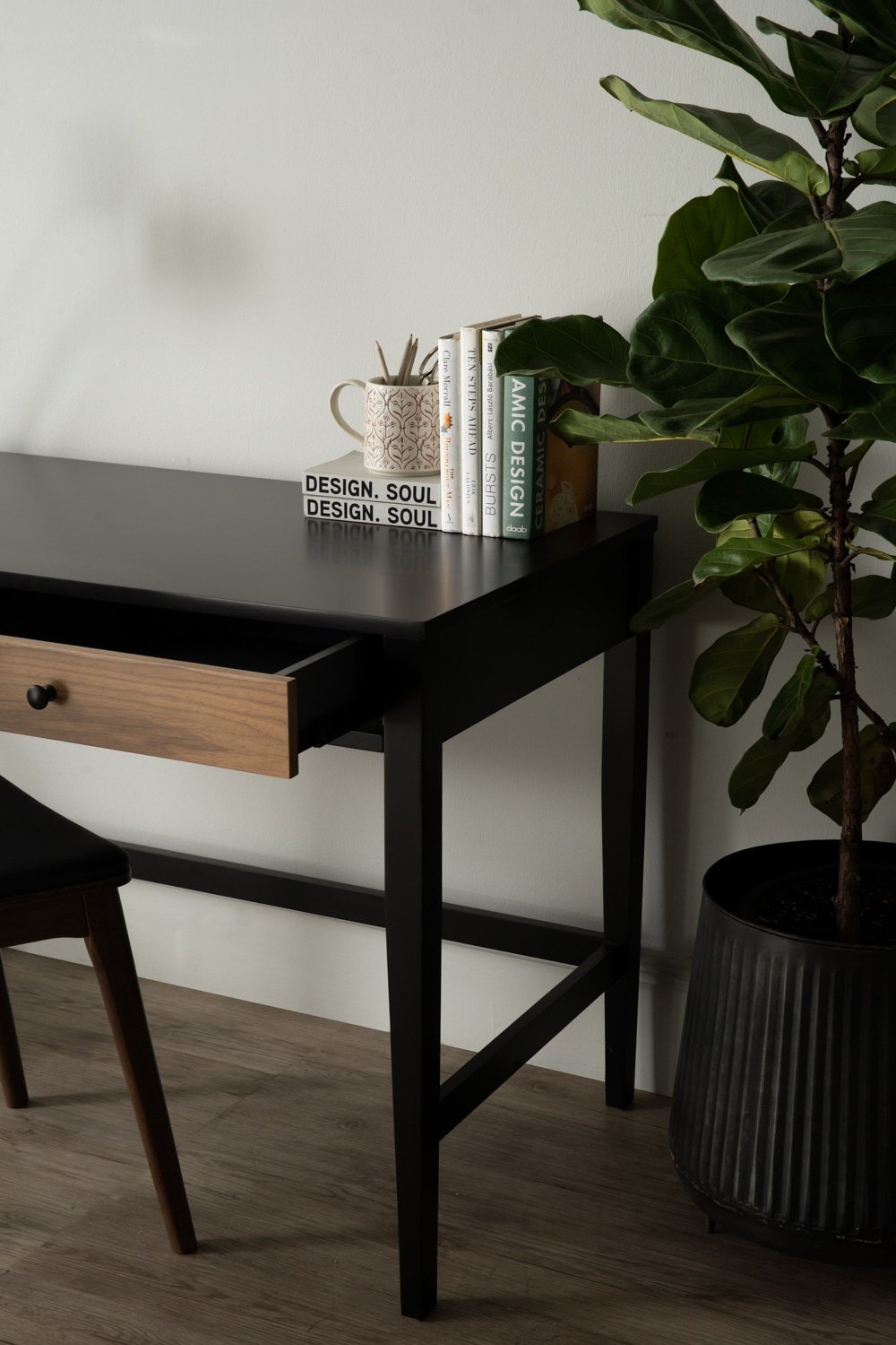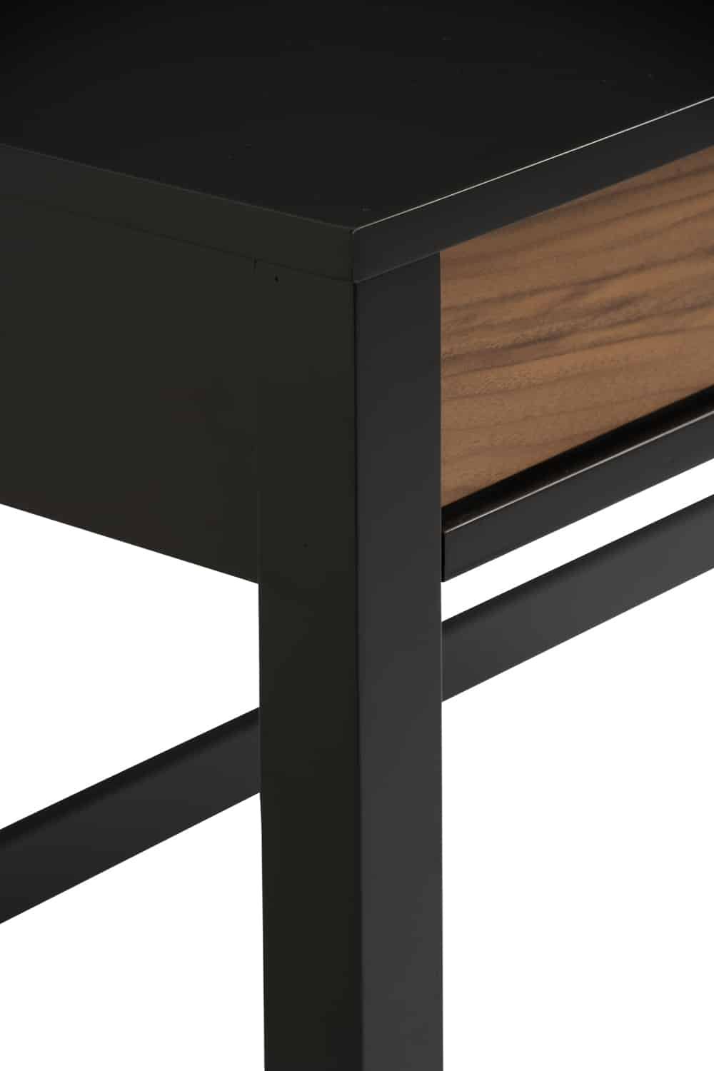 Conall working desk in Black colour leg, Black colour top and Walnut drawer