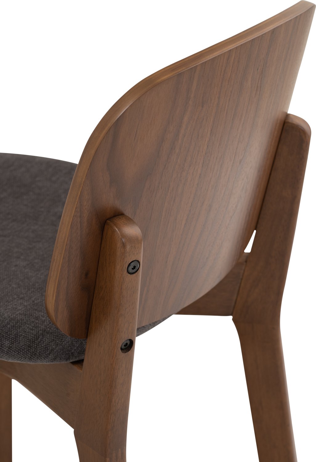 Cora counter chair in Cocoa colour frame, Walnut veneer back and Deep Grey colour Danny A fabric seat