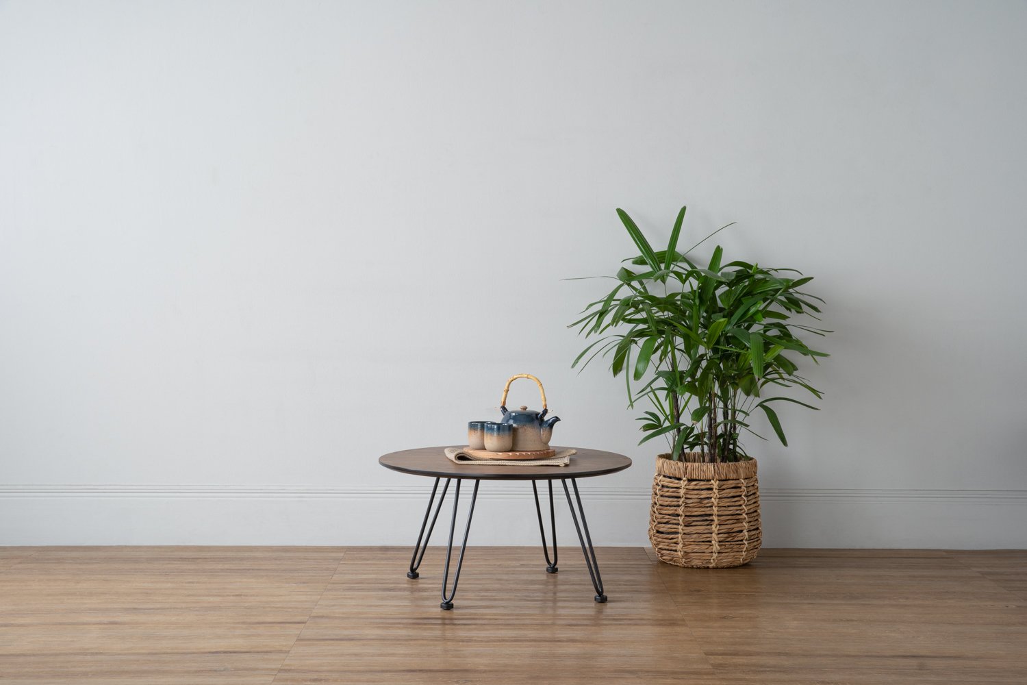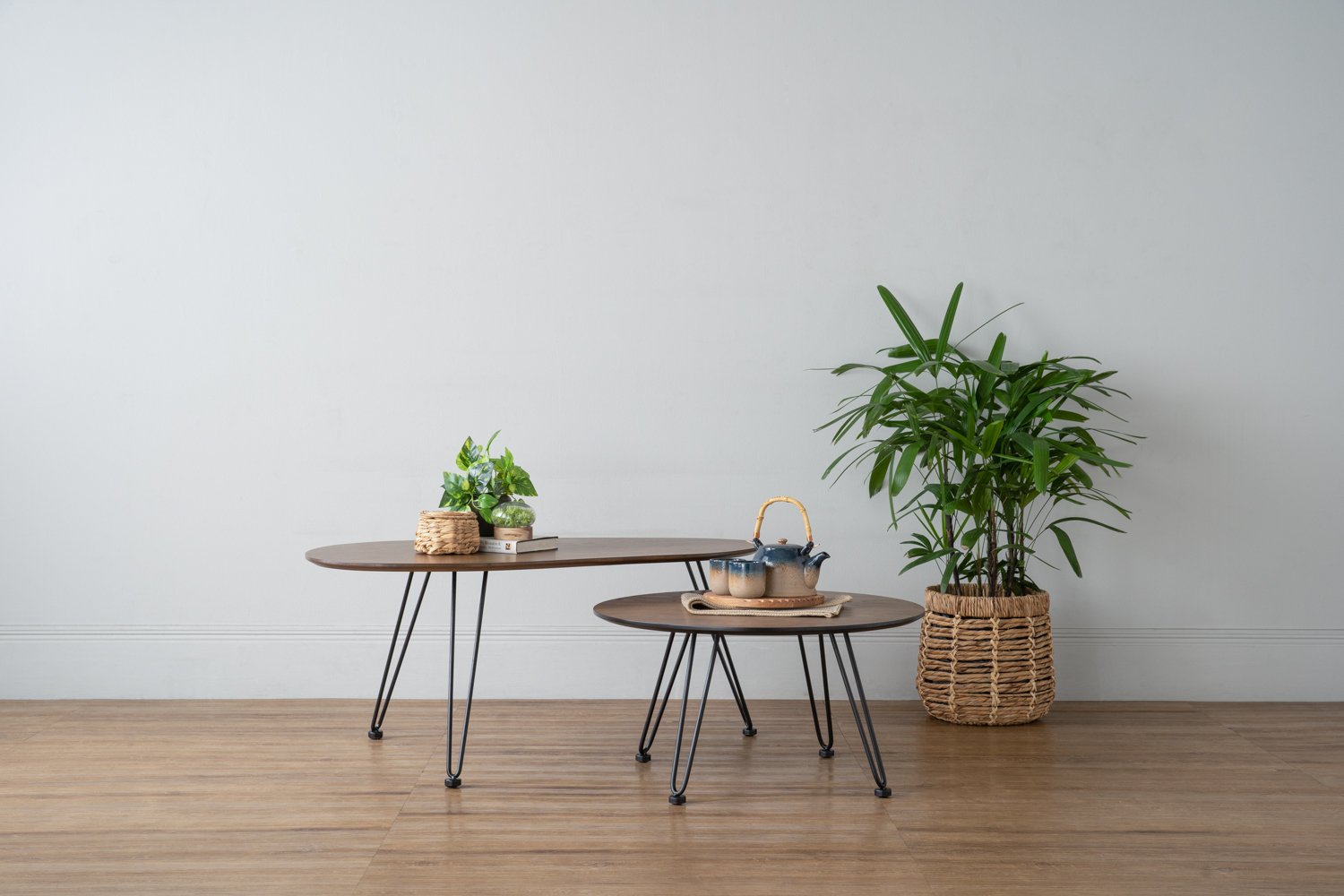 Corwin Round coffee table in Cocoa colour top with Matt Black Epoxy leg