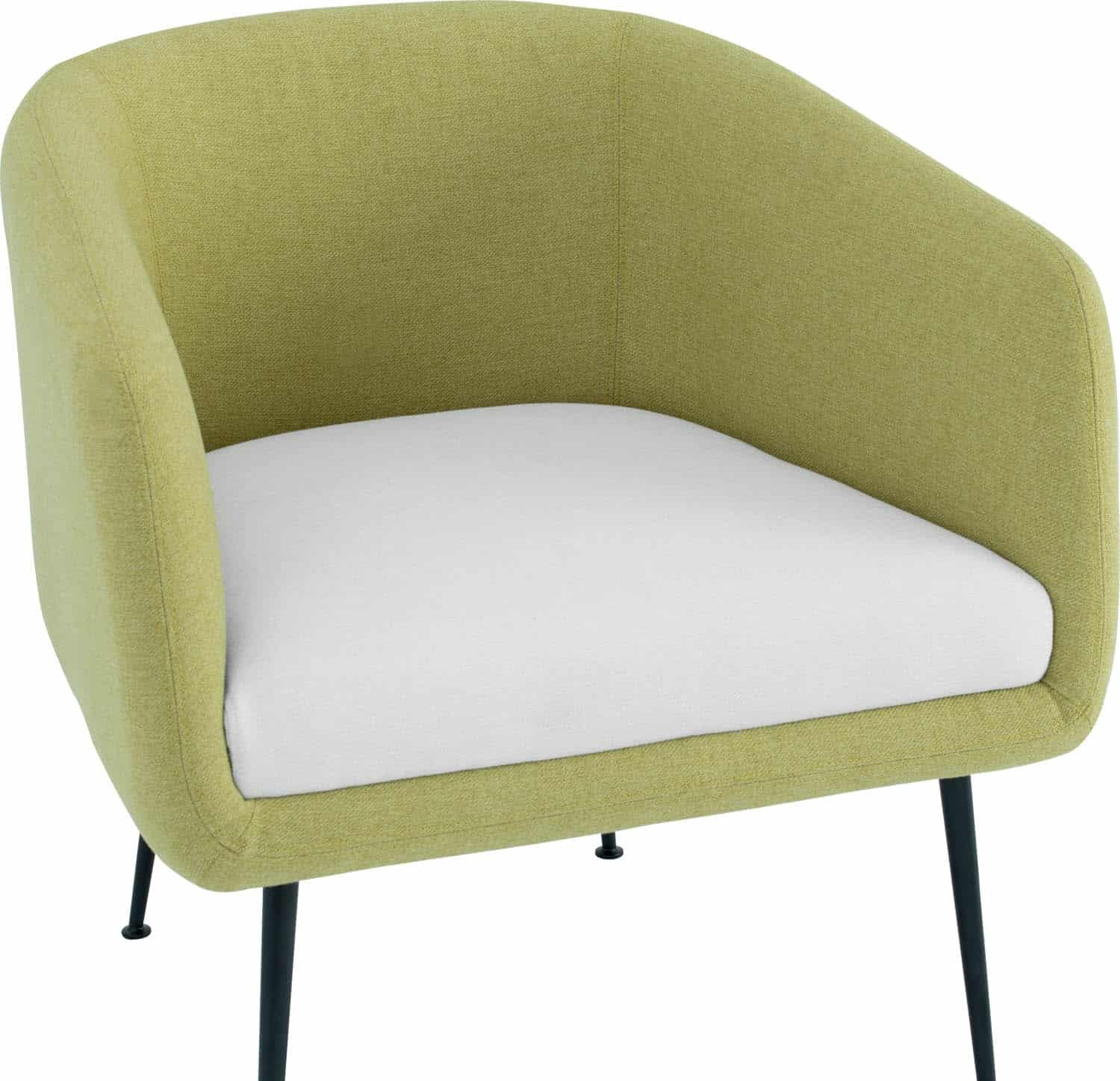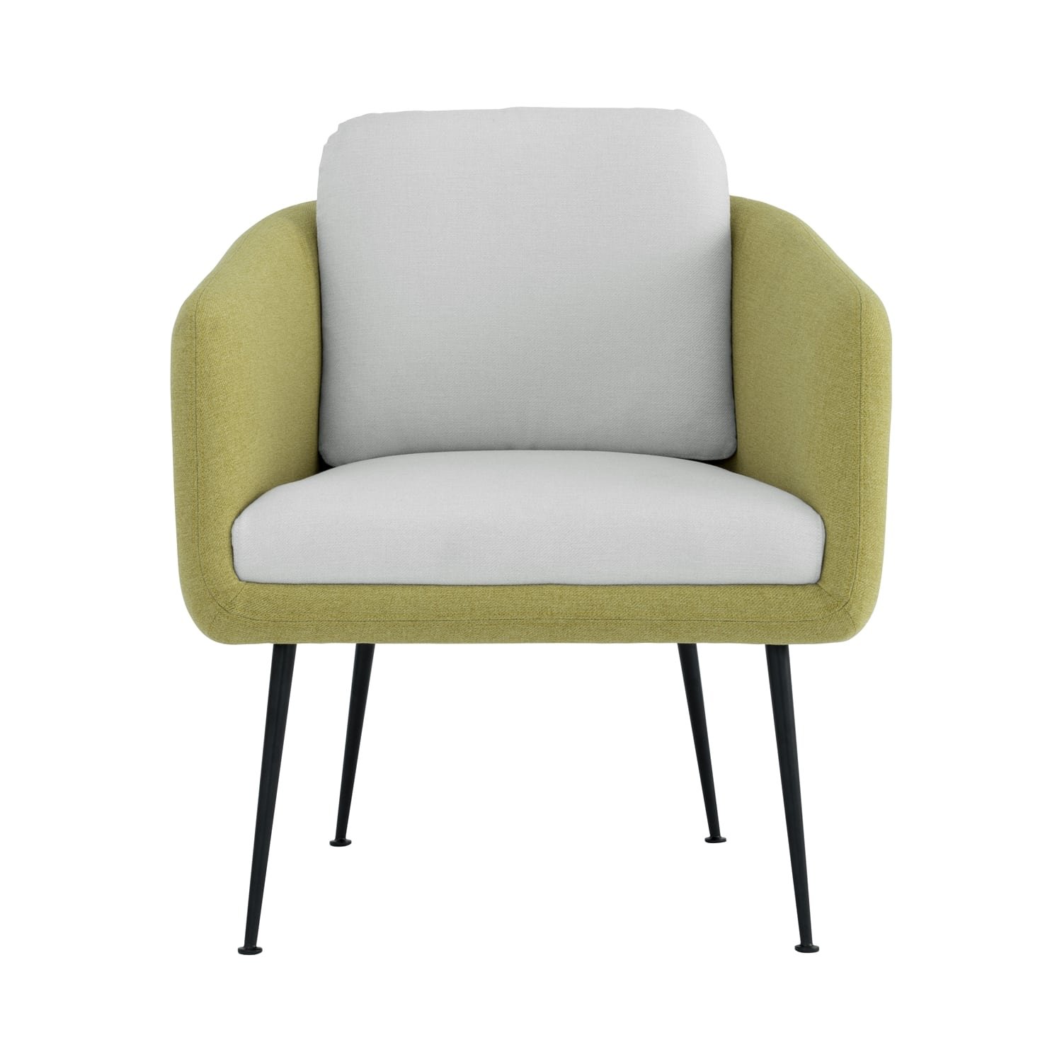 Cougar lounge chair with Matt Black Epoxy leg, Tea Green colour body, Pale Golden colour seat and backrest cushion in Tricot fabric