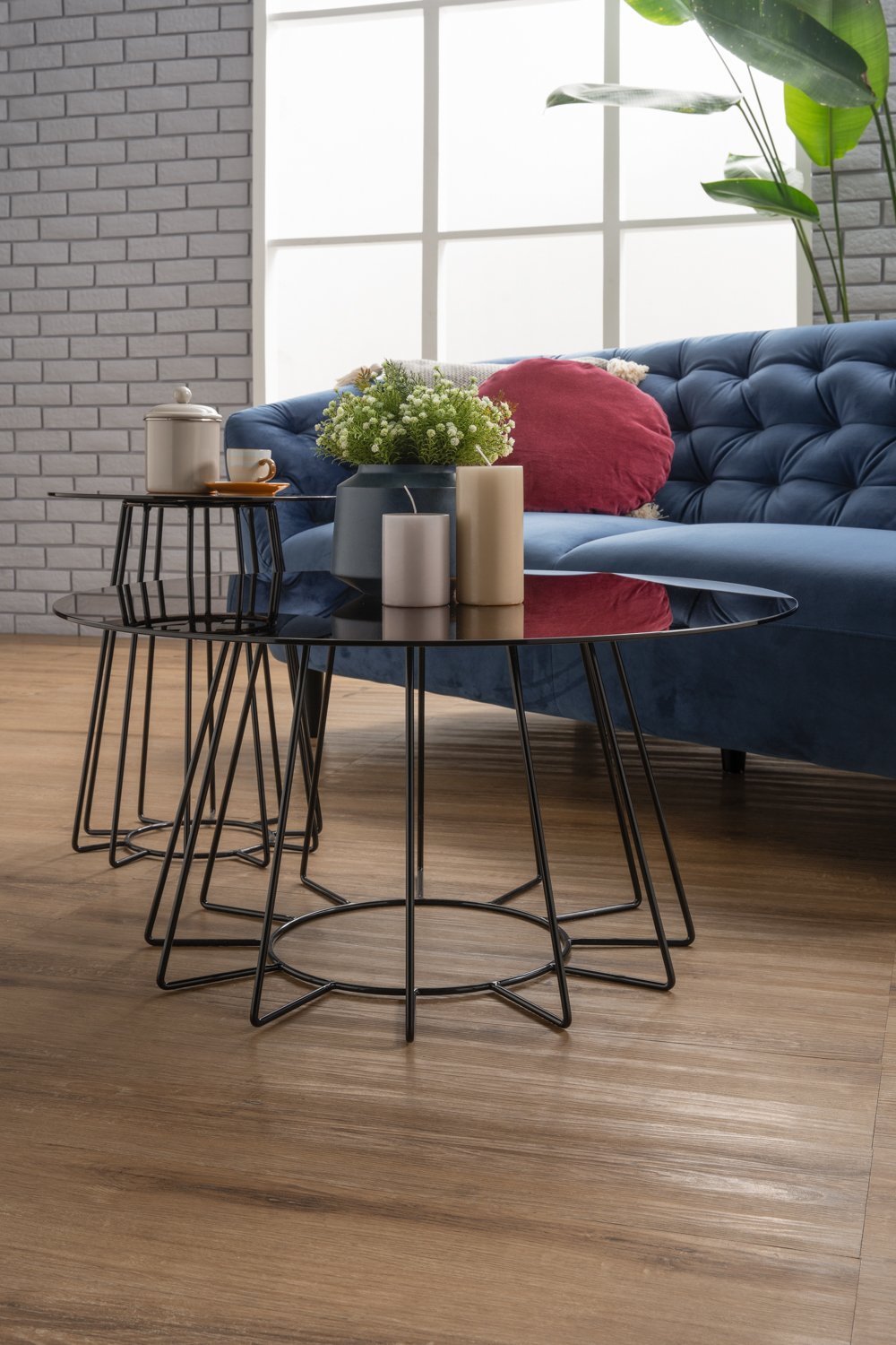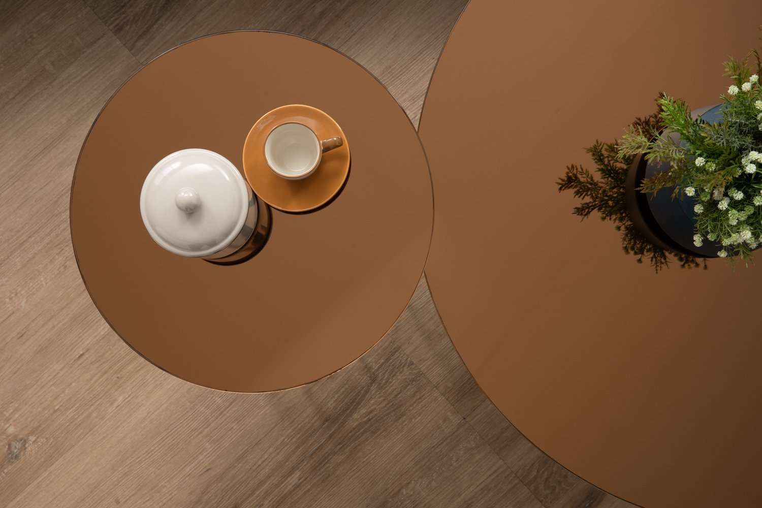 Cyrus Coffee Table in mirror glass top with Matt Black Epoxy colour leg