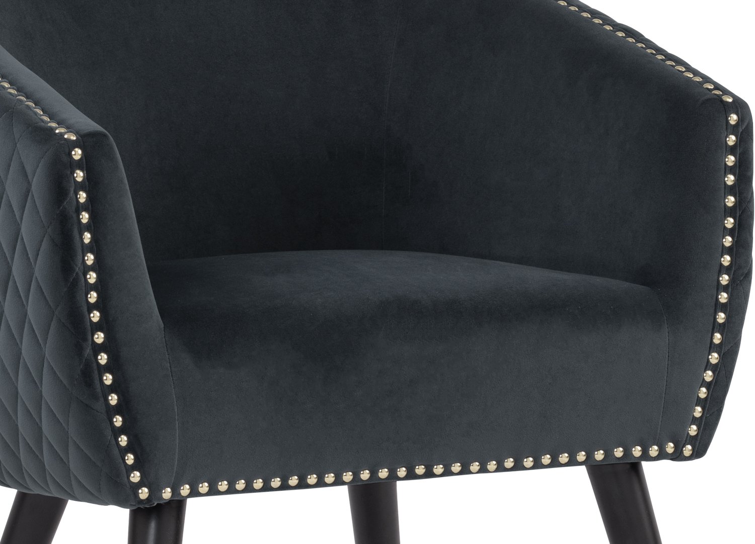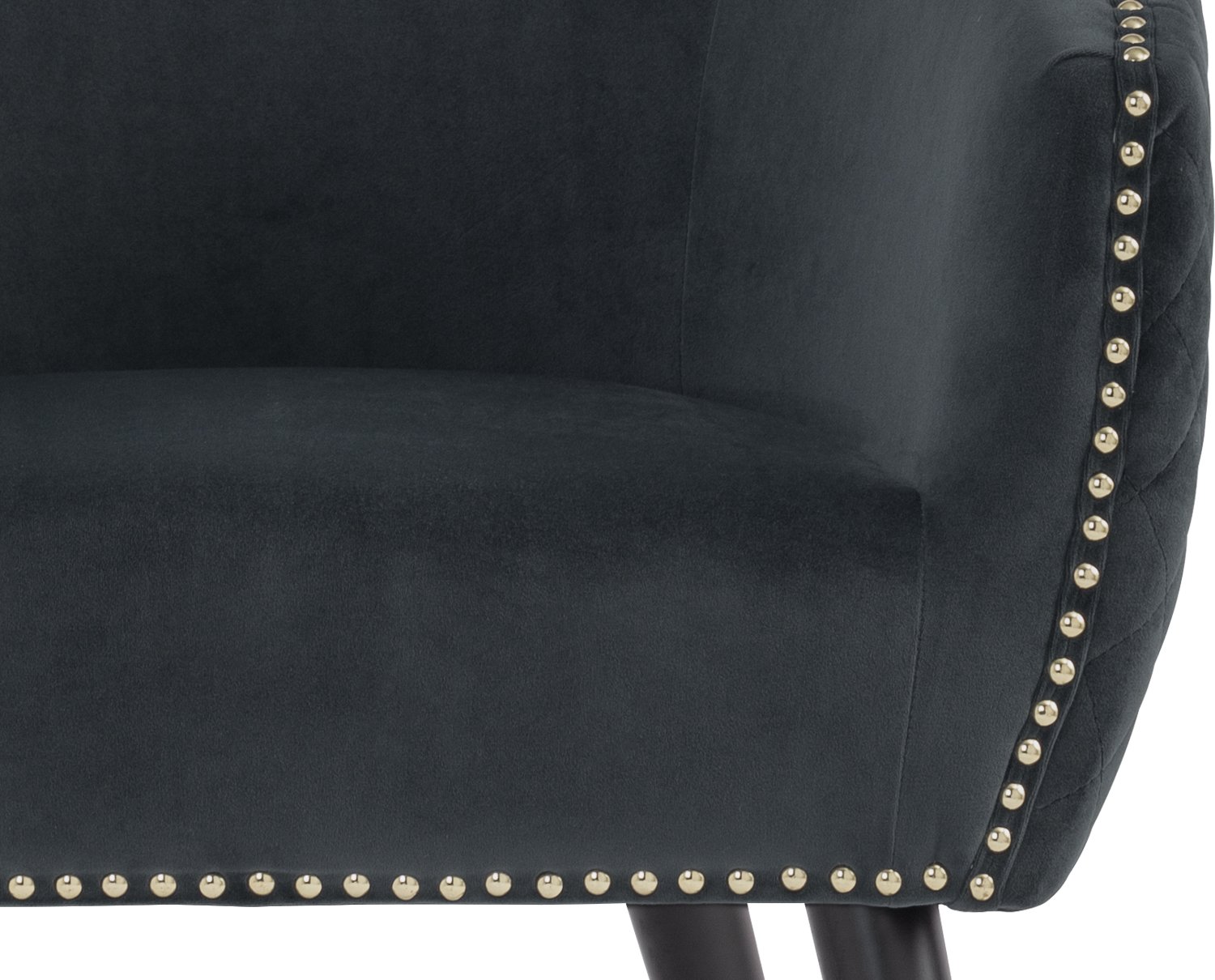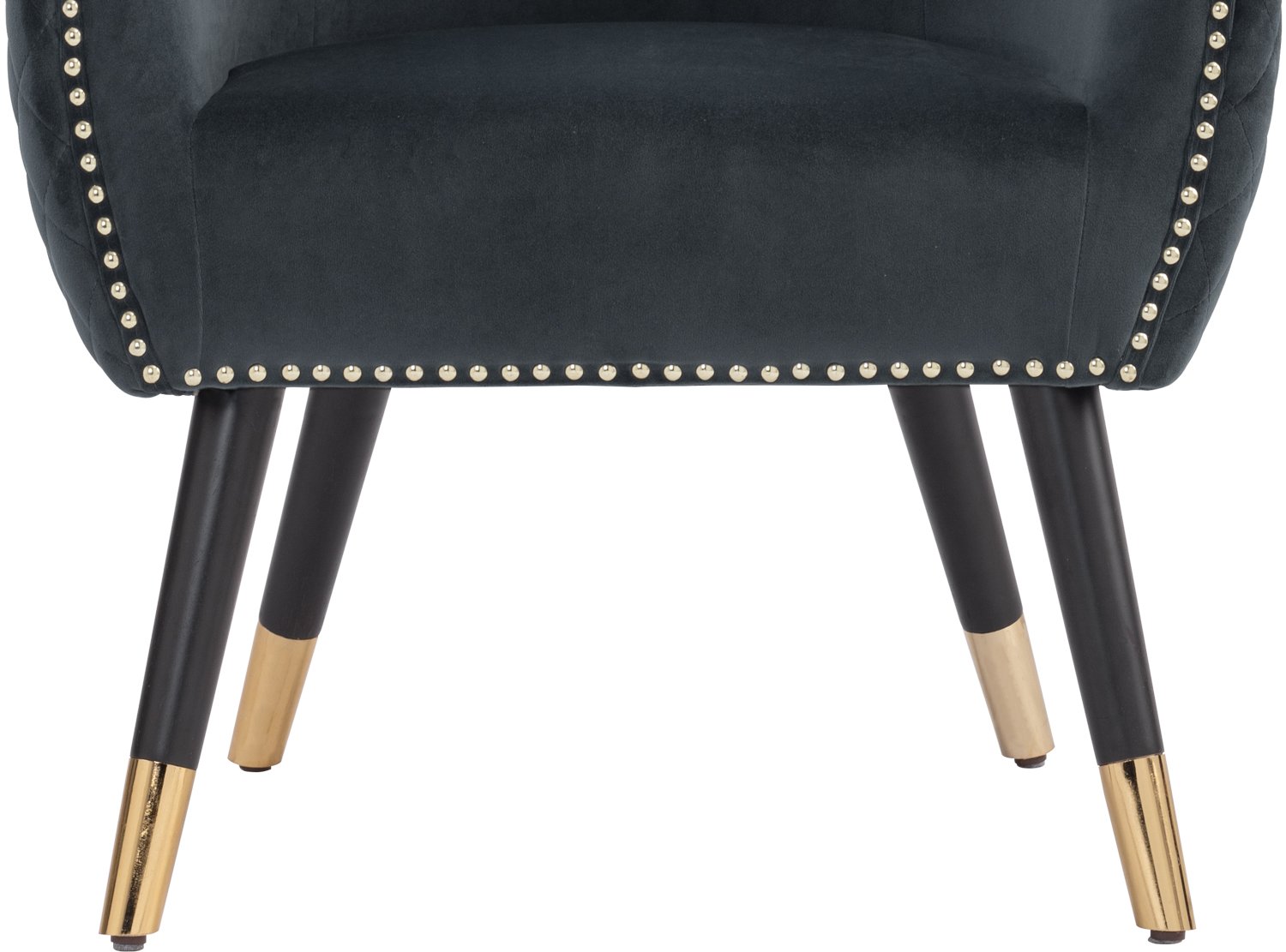 Deniz Lounge Chair with Black and Gold colour leg, Dim Blue colour Arctus fabric