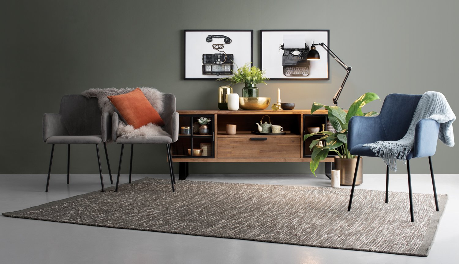 Desta Arm Chair with Black colour leg, Steel colour in Veloutine fabric