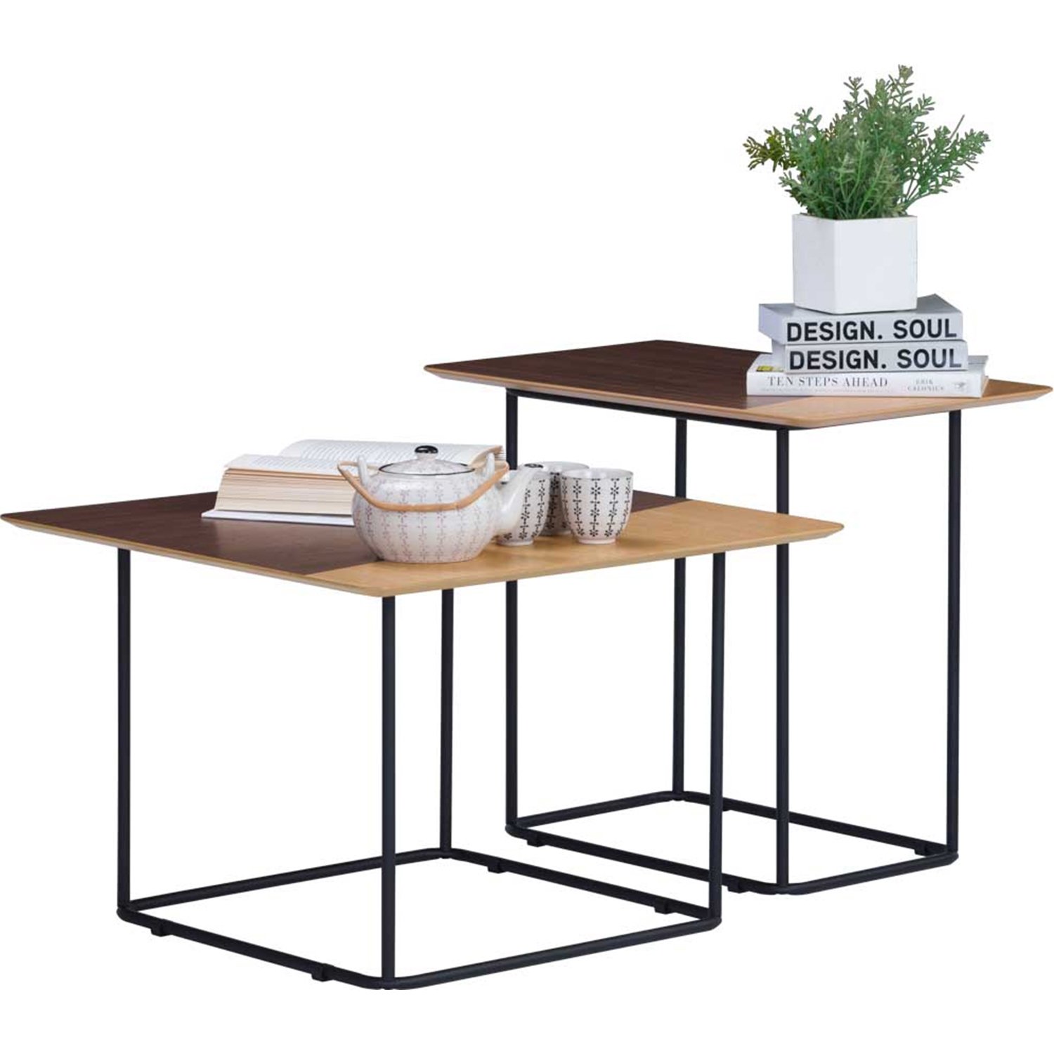 Destry coffee table in Oak and Walnut colour top, Matt Black Epoxy Leg
