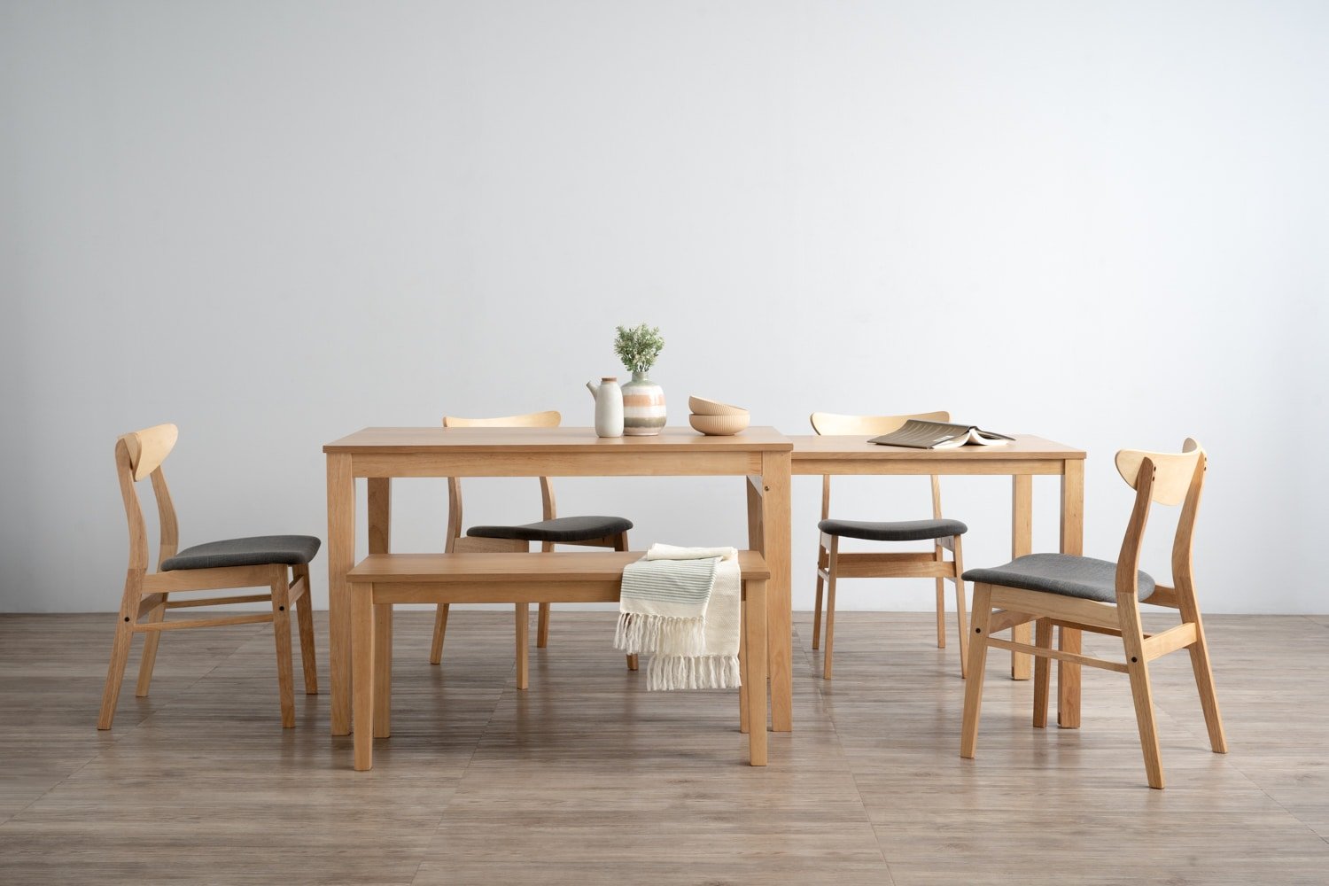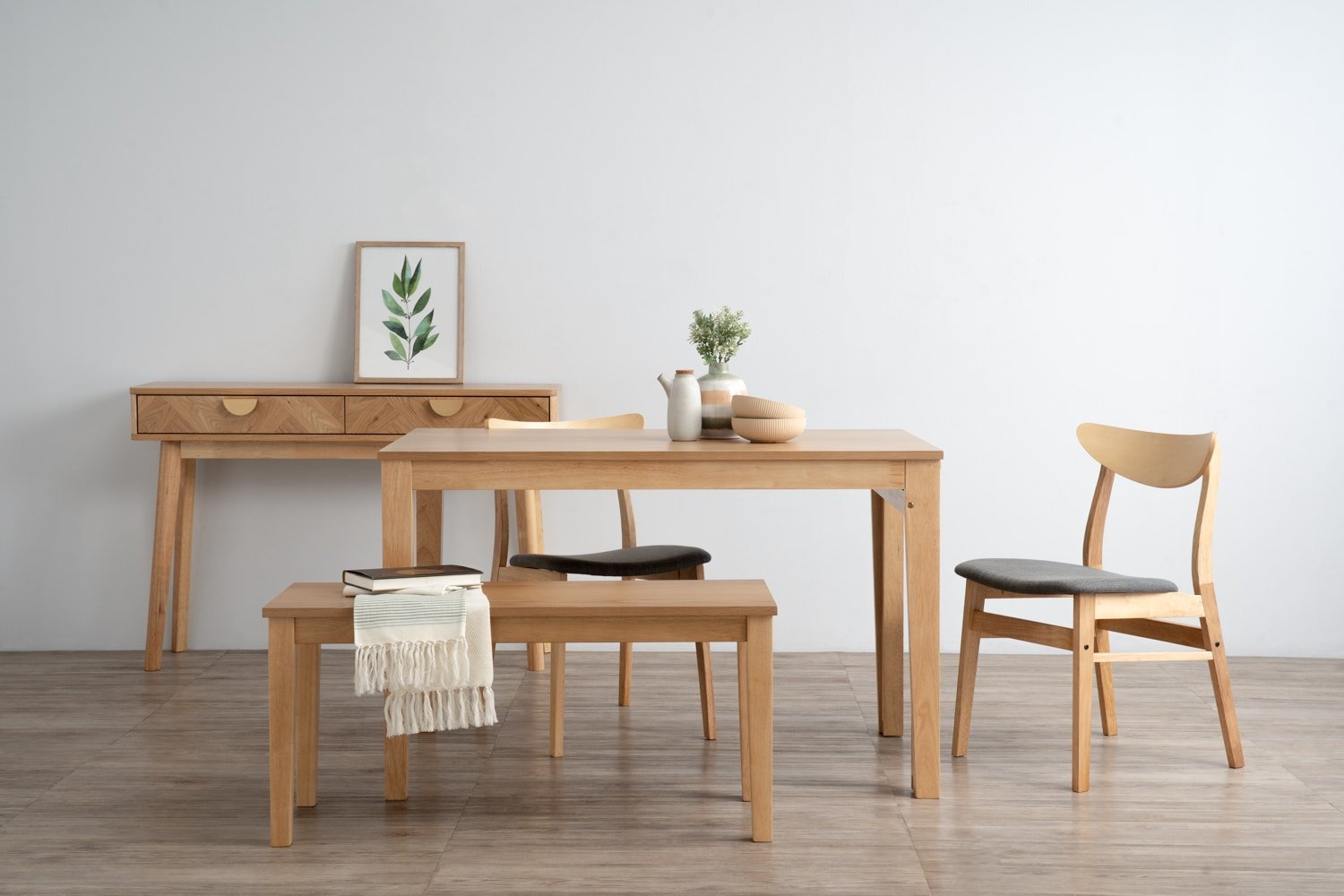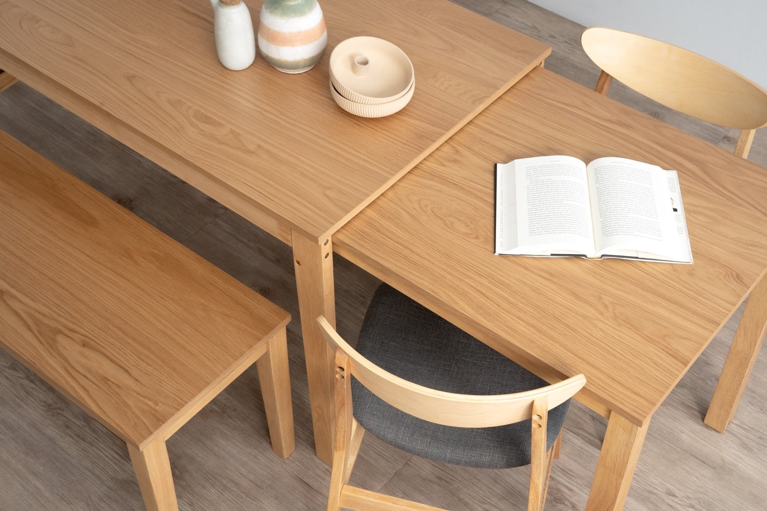 Ditta 750×1200+750 Extension Dining Table in Natural colour leg, Oak veneer top