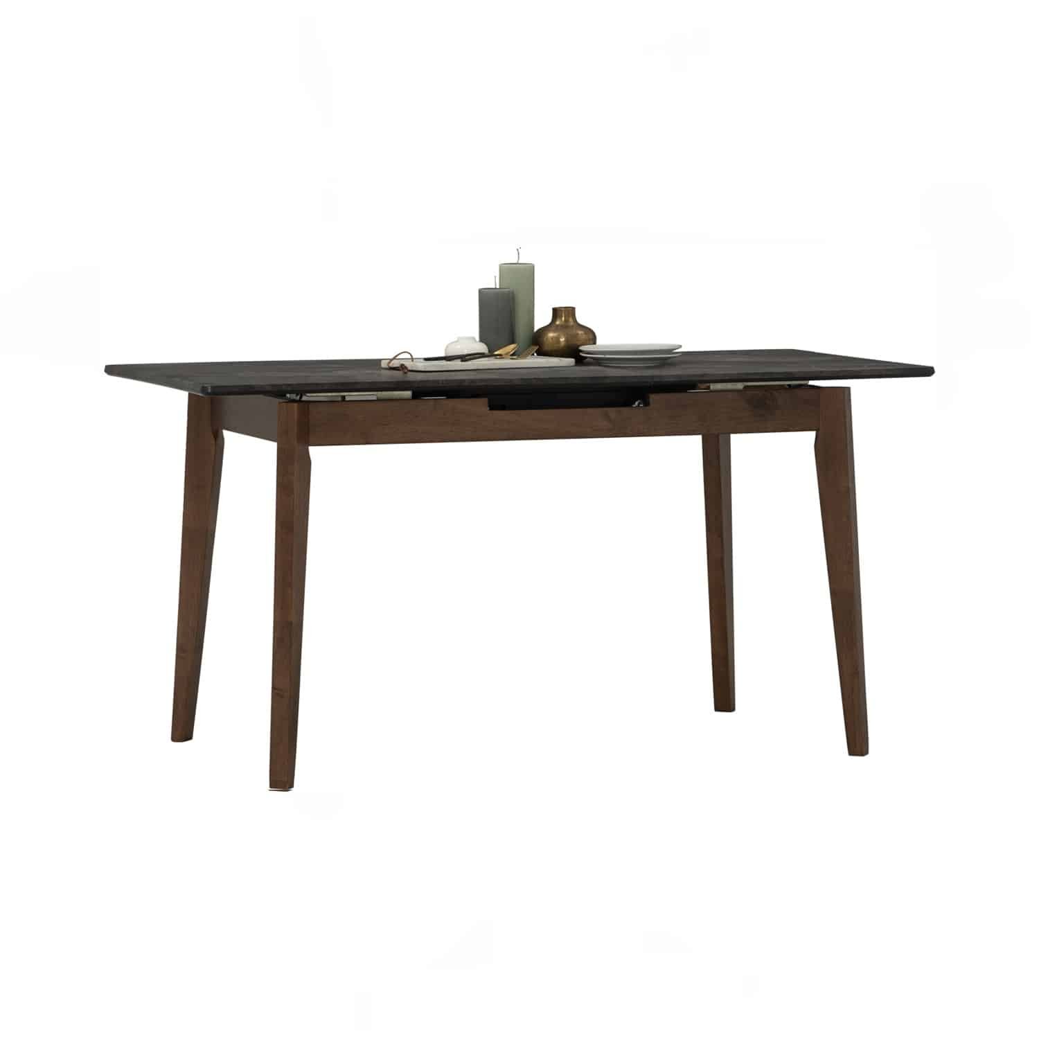 Folto 700×1200+300 extension table in Cocoa colour leg, Black Marble colour laminated top
