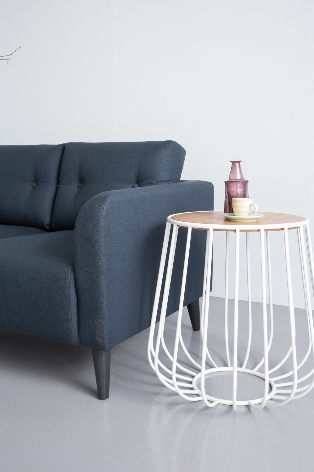 Gabbia round side table in Natural colour top, Matt White Epoxy leg