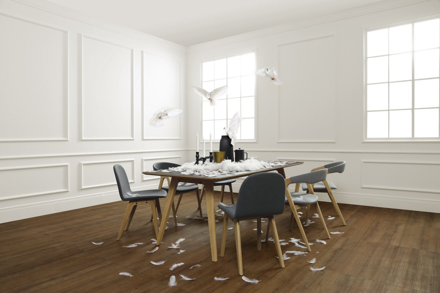 Ganit Dining Chair with Oak frame, Dim Grey colour Highland fabric seat