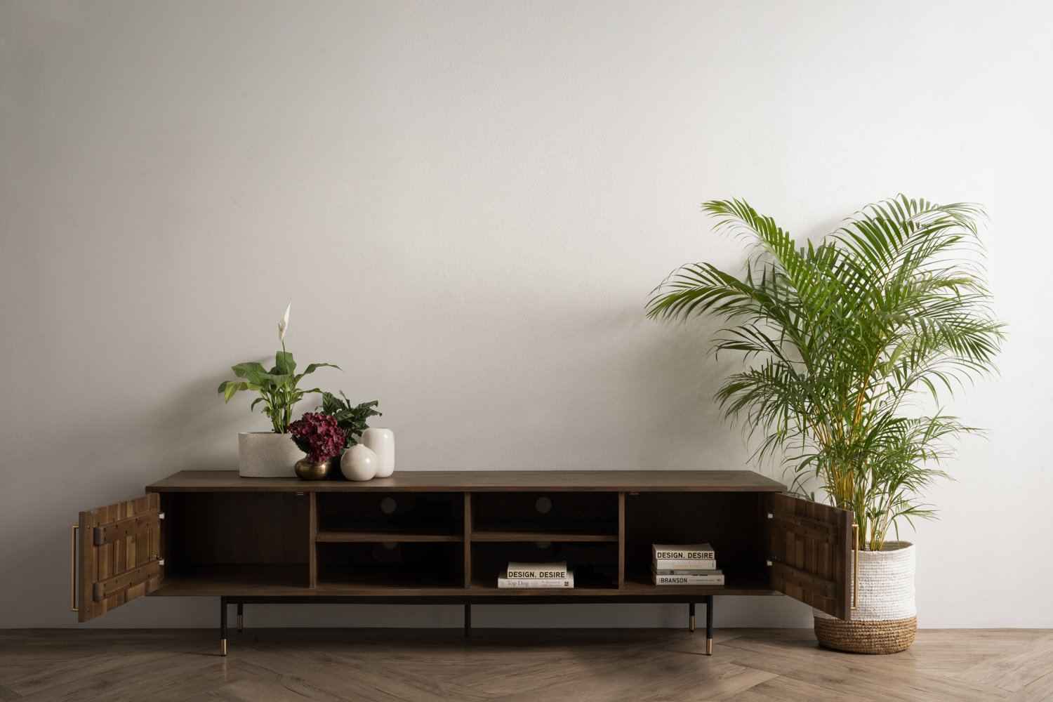 Hamilton 2.0M TV Cabinet with Sand Black colour leg, Toffee colour body