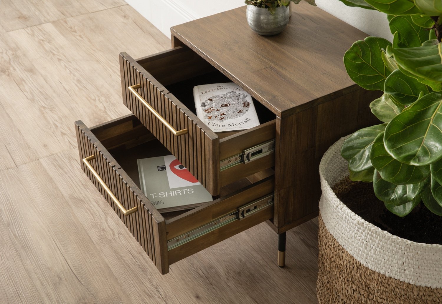 Hamilton Bedside Table with Sand Black colour leg, Toffee colour body