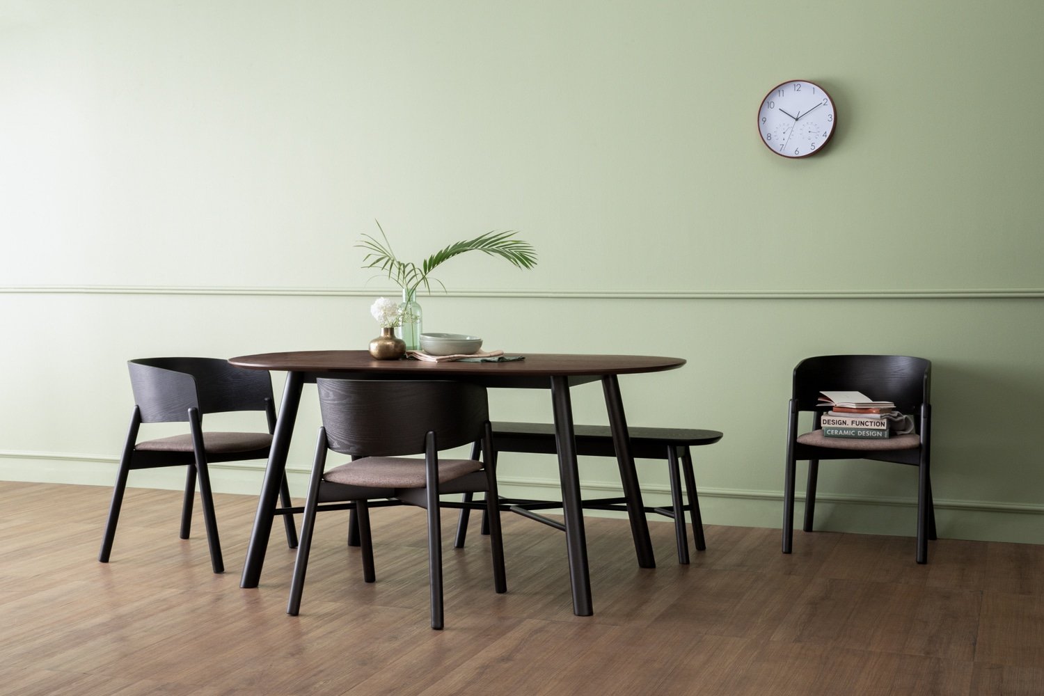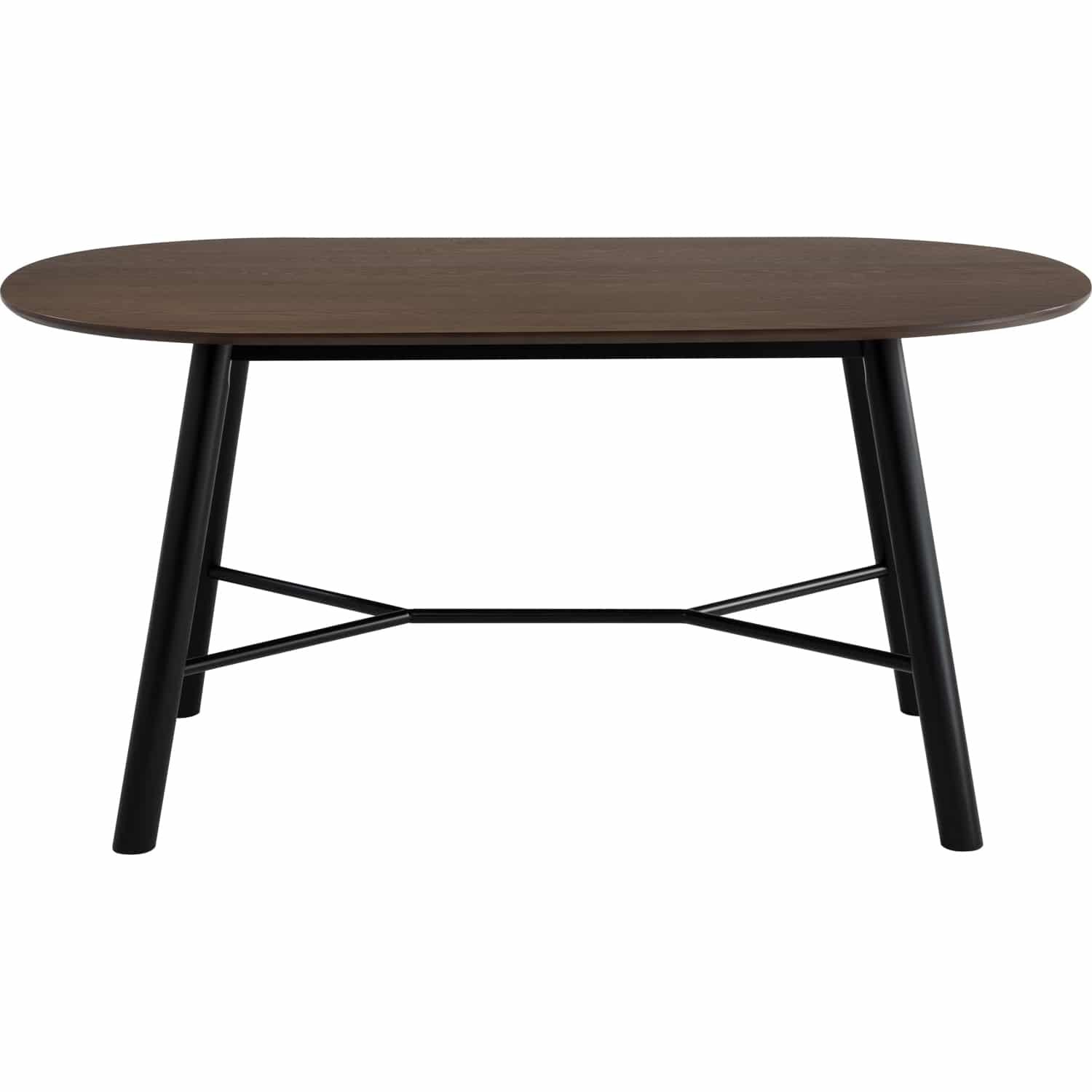 Harold 950×1600 dining table in Black colour leg and Matt Black Epoxy metal cross bar, Cocoa colour table top