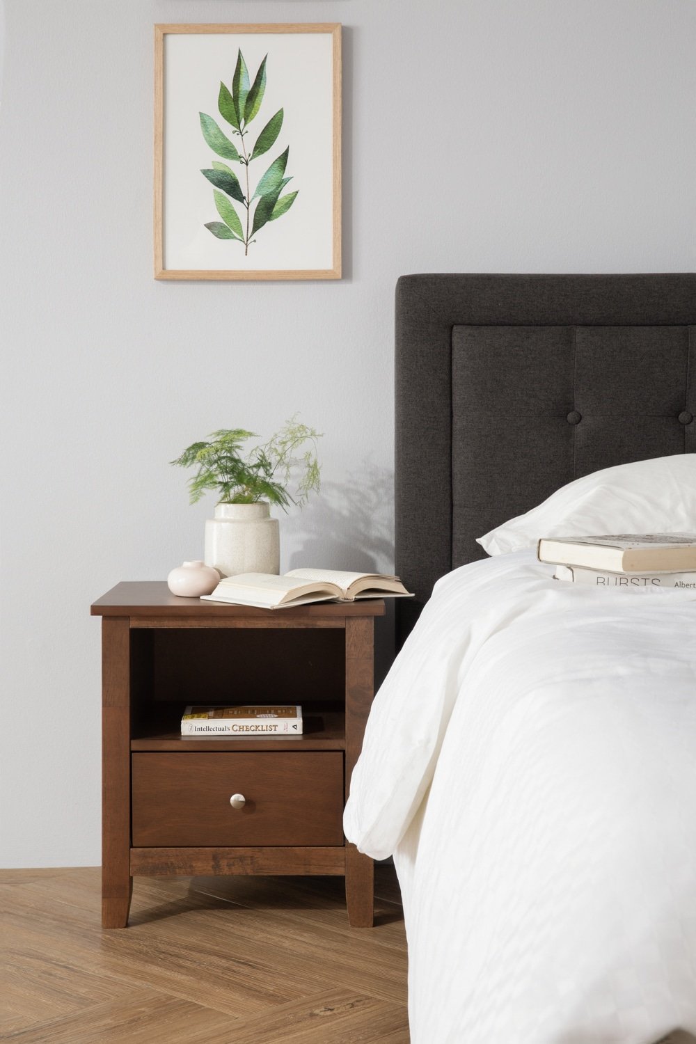 Hayden King bed on Black colour leg, Seal colour Dimity fabric (Fit mattress: 1820mm x 1910mm)