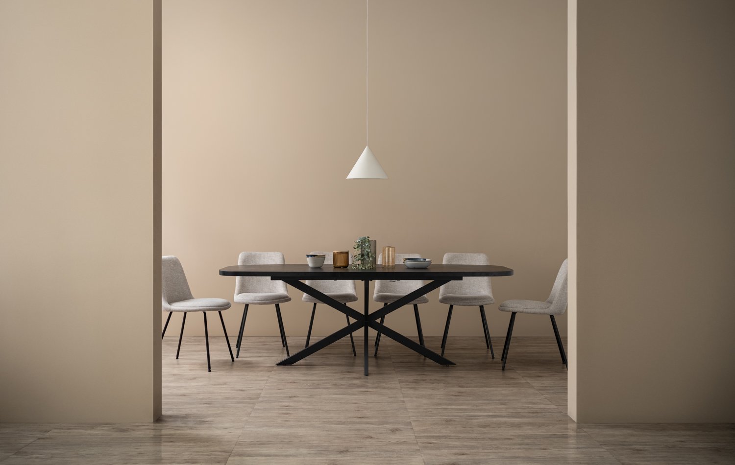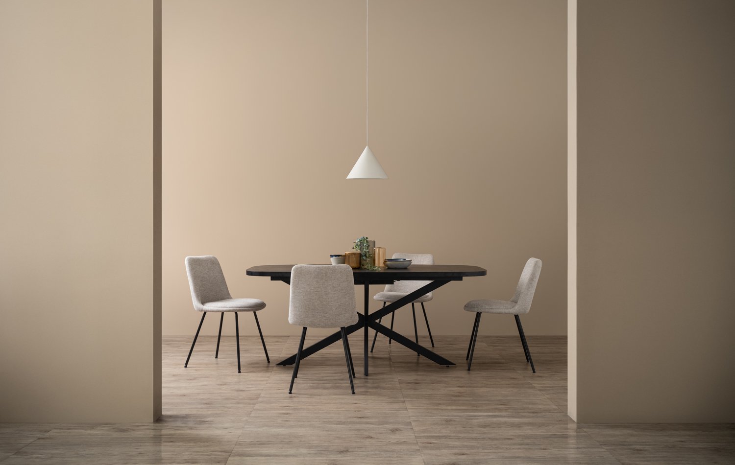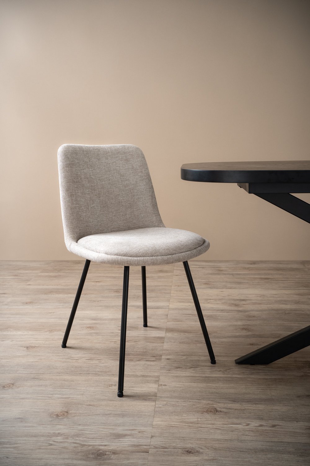 Hemi dining chair in Matt Black Epoxy colour leg, Sand colour Prado fabric