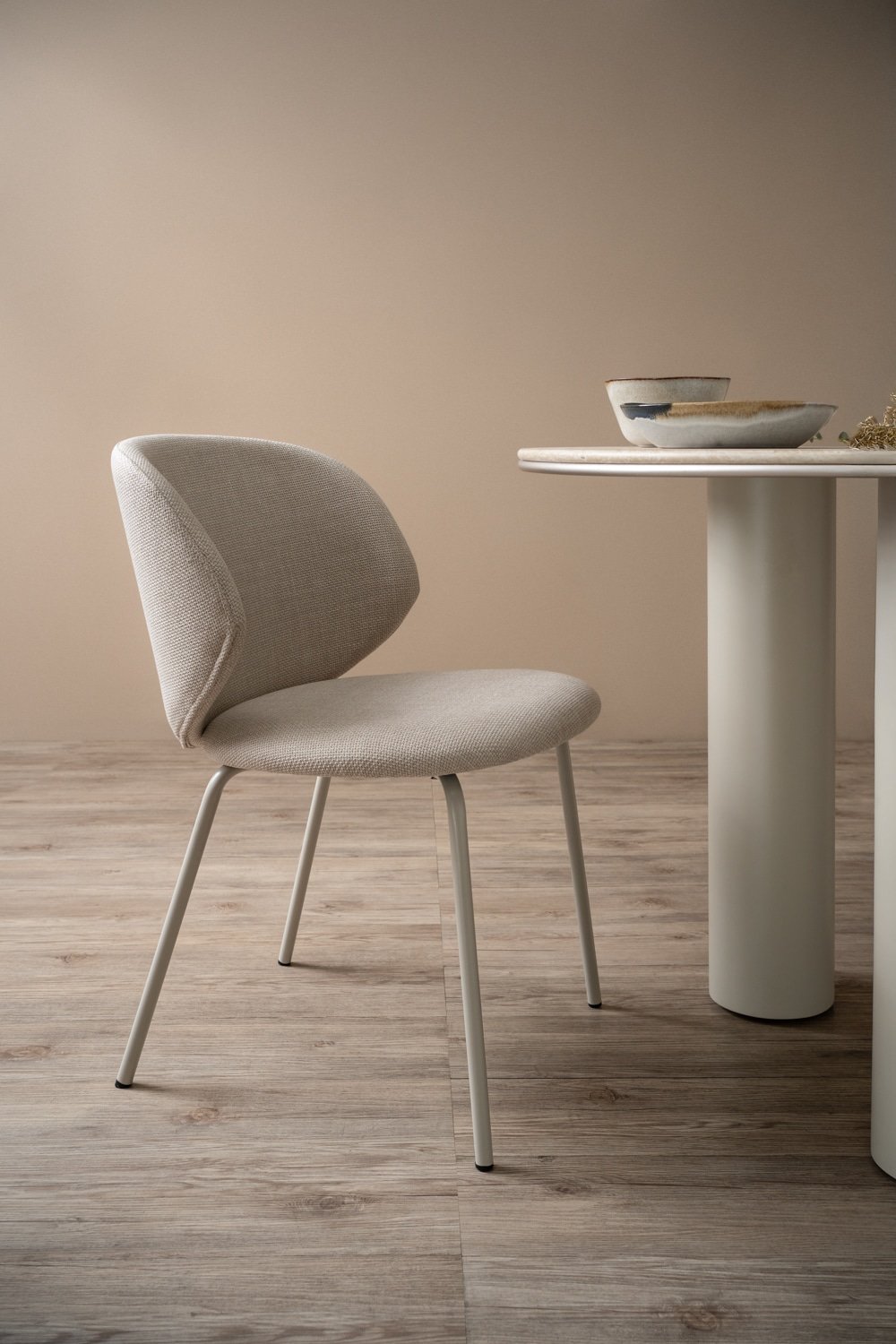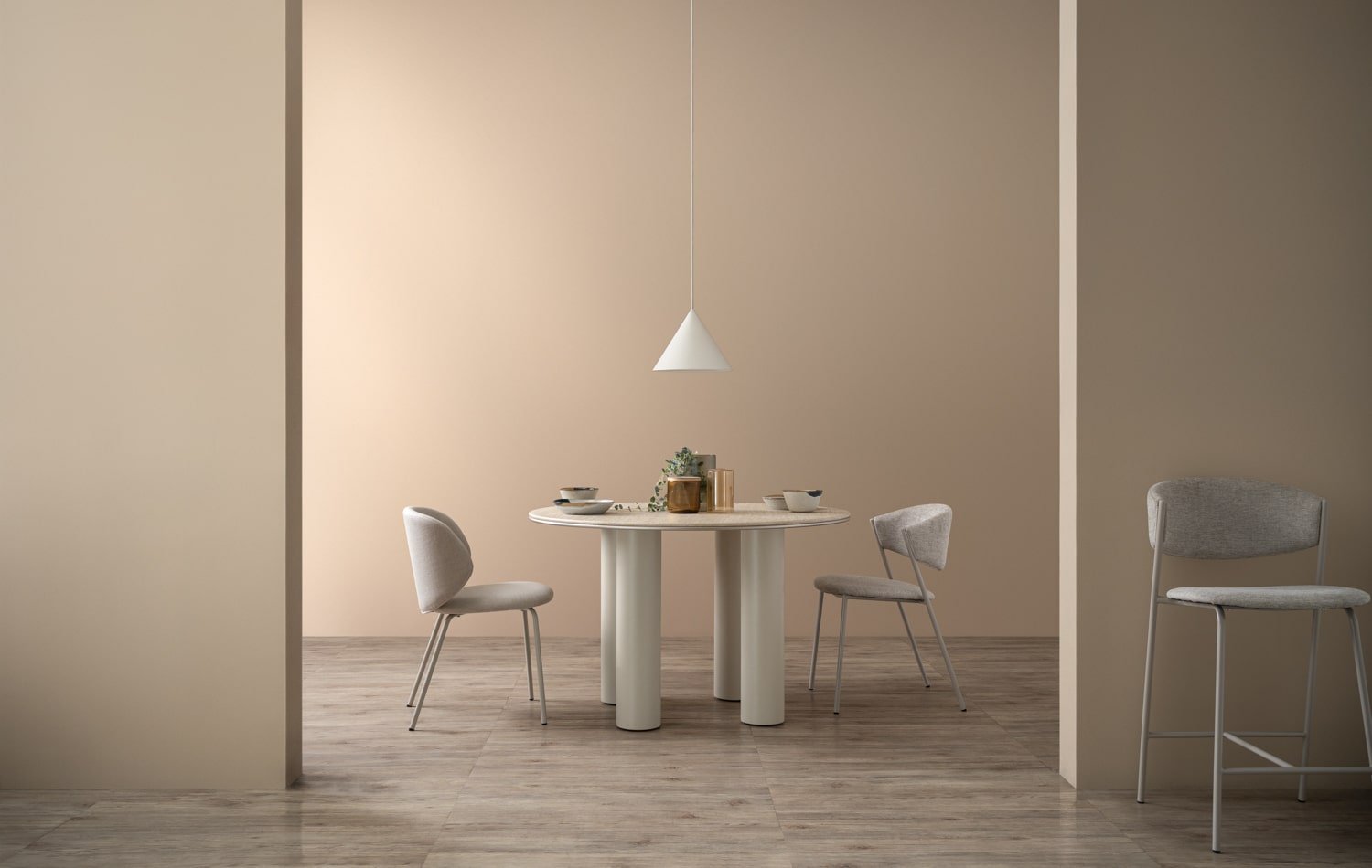 Hiri Dia 1200 round dining table in Beige colour leg, Beige Marble colour Malamine top