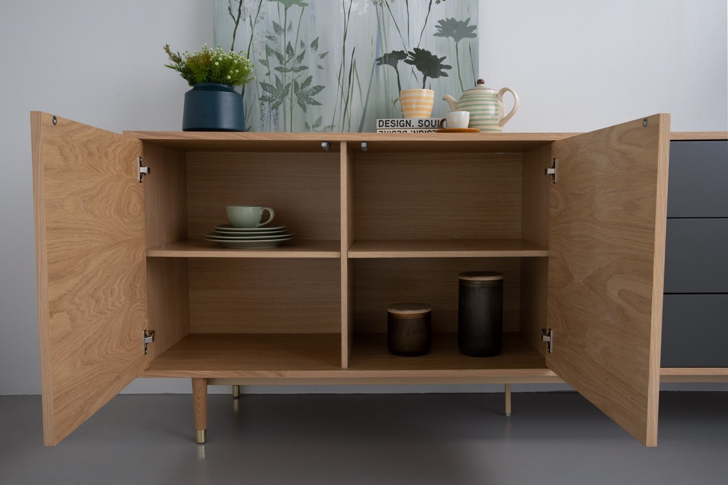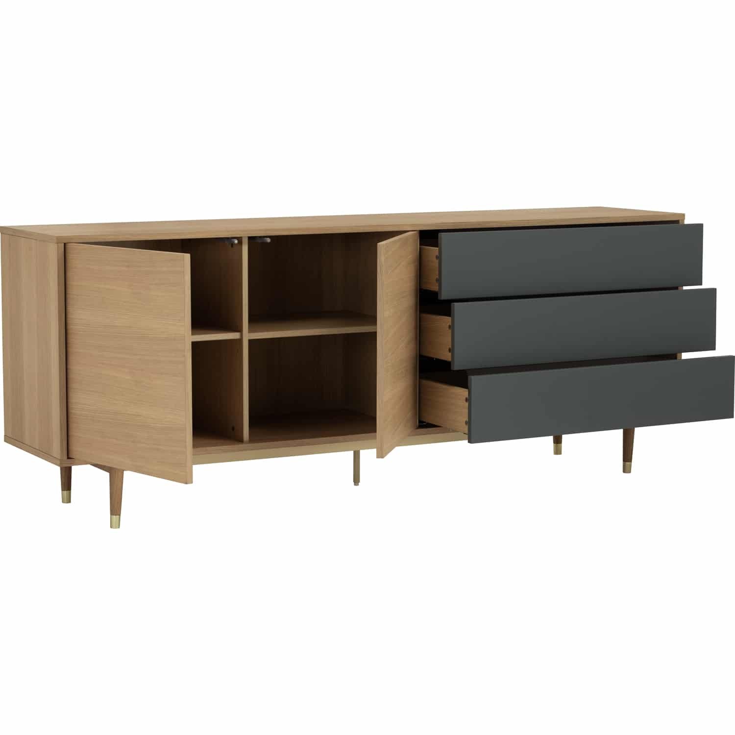 Houston 2.0M Sideboard in Oak veneer body, Gunmetal Grey Lacquered door and drawer with Oak leg