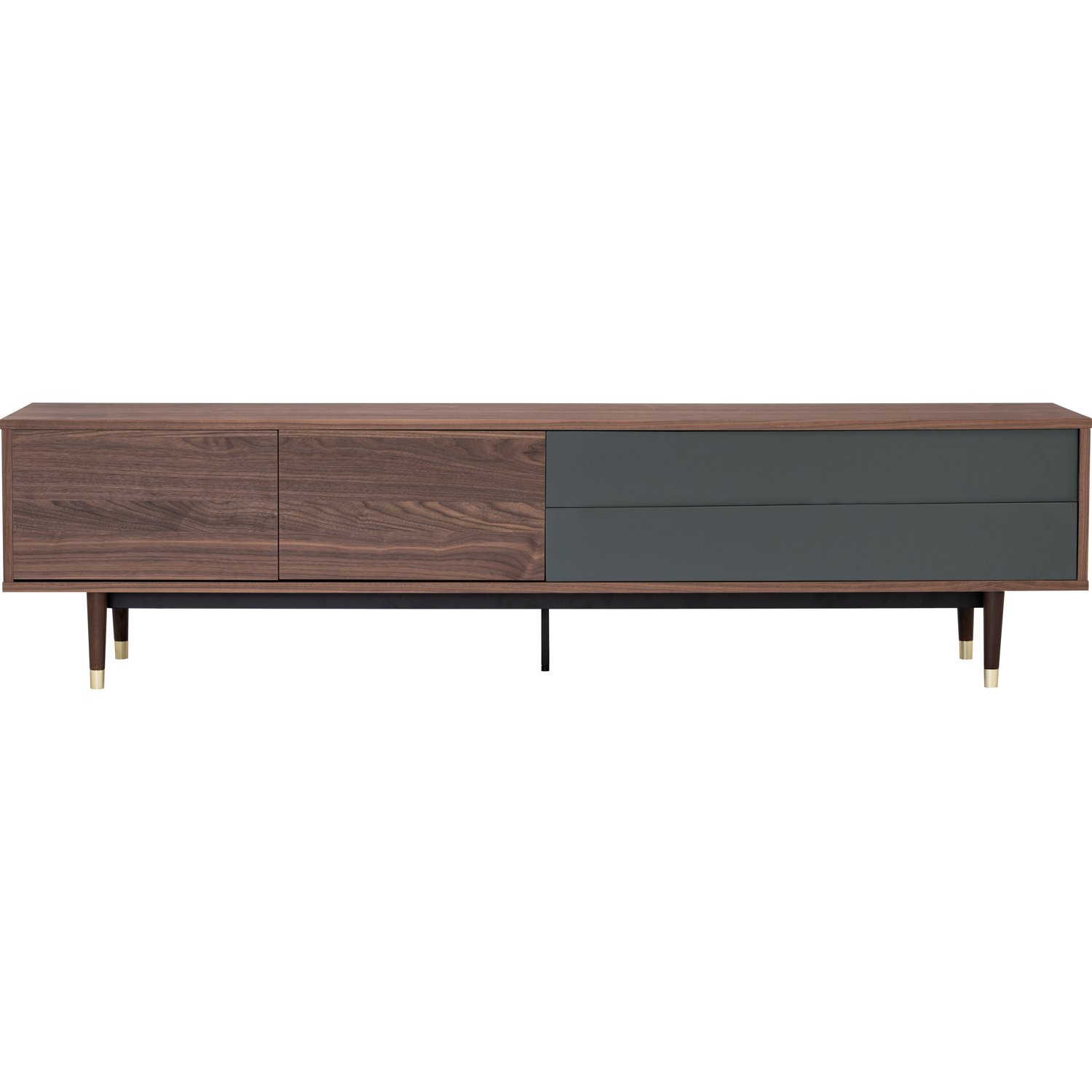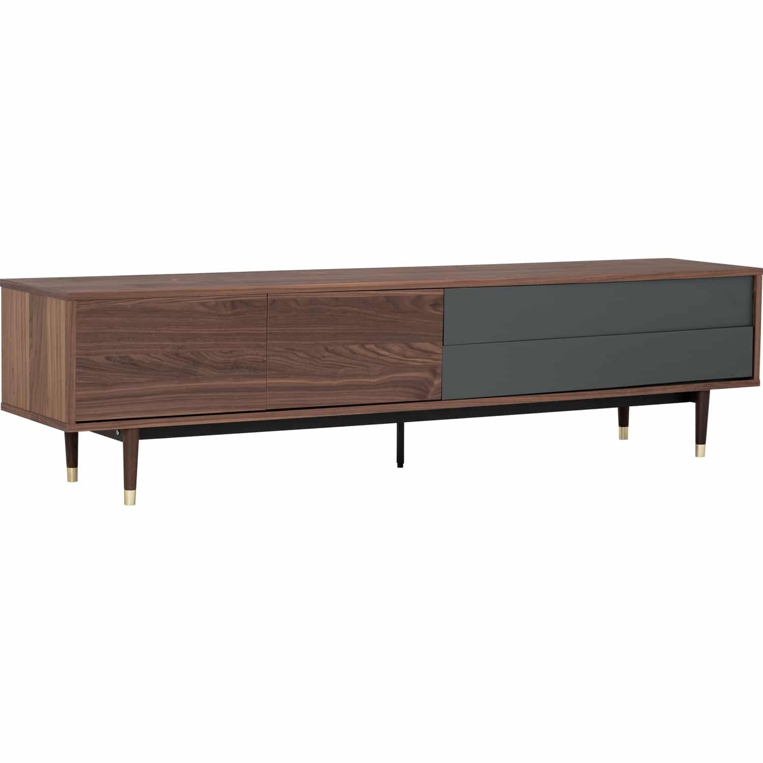 Houston 2.0M TV Cabinet in Walnut veneer body, Gunmetal Grey Lacquered drawer with Walnut colour leg