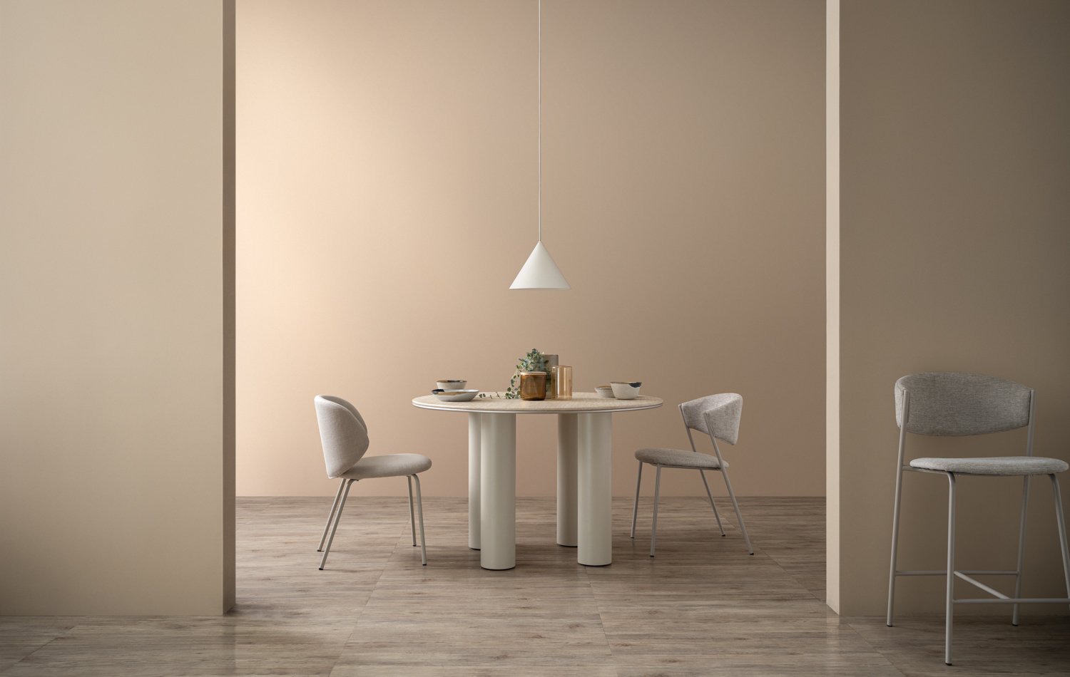 Kenzi dining chair in Matt Beige Epoxy colour leg, Beige colour Bjorn fabric