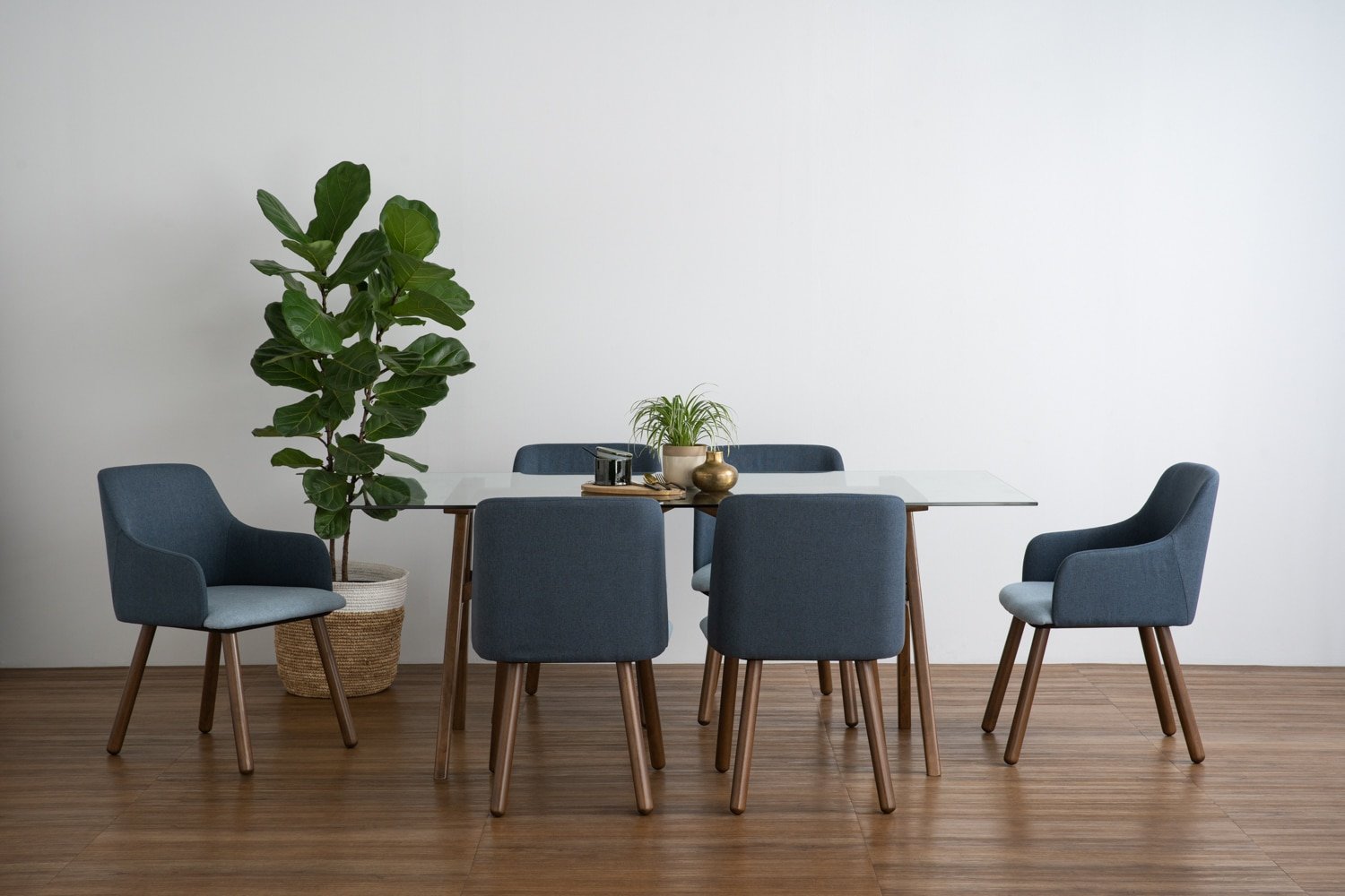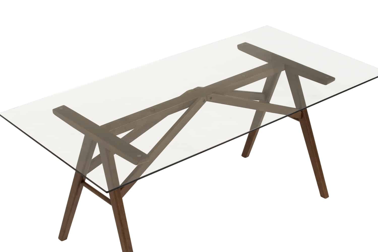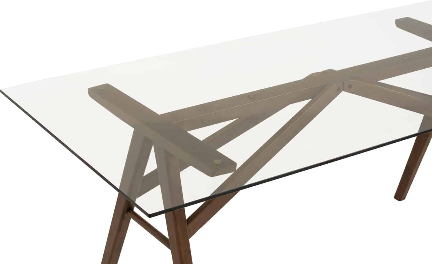 Koen 900×1800 dining table in Cocoa colour leg, Clear tempered glass top