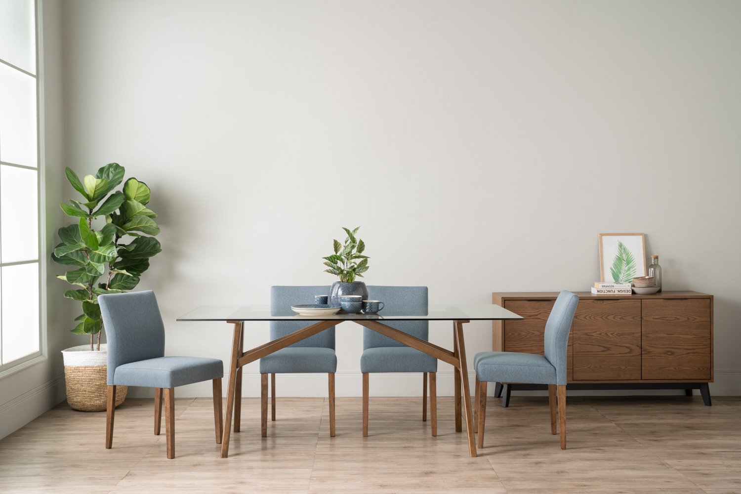 Ladee dining chair in Cocoa colour leg, Steel Blue colour Drill fabric