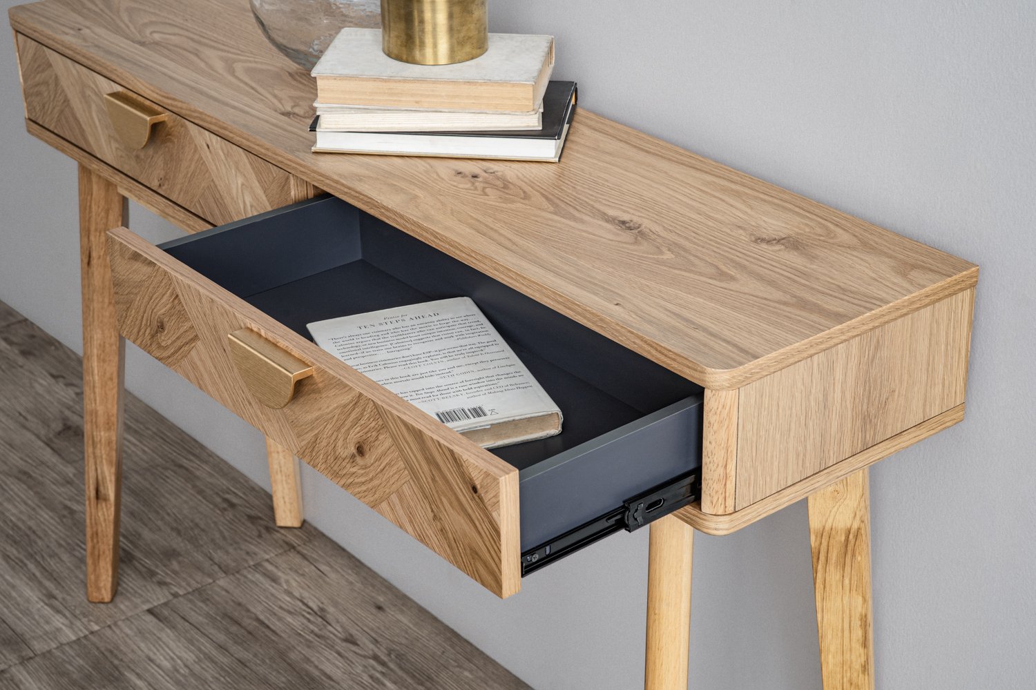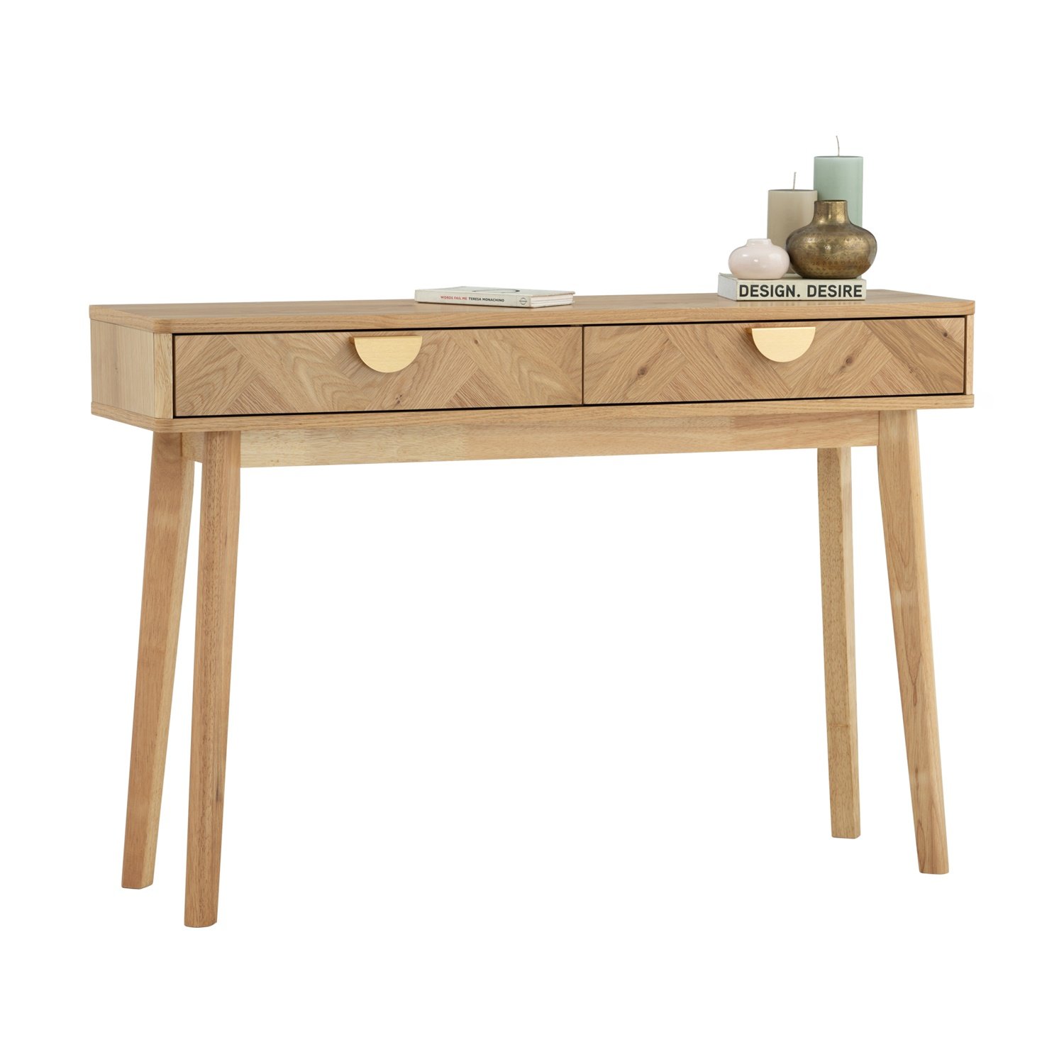 Loftus console table in Oak veneer top with Natural colour leg