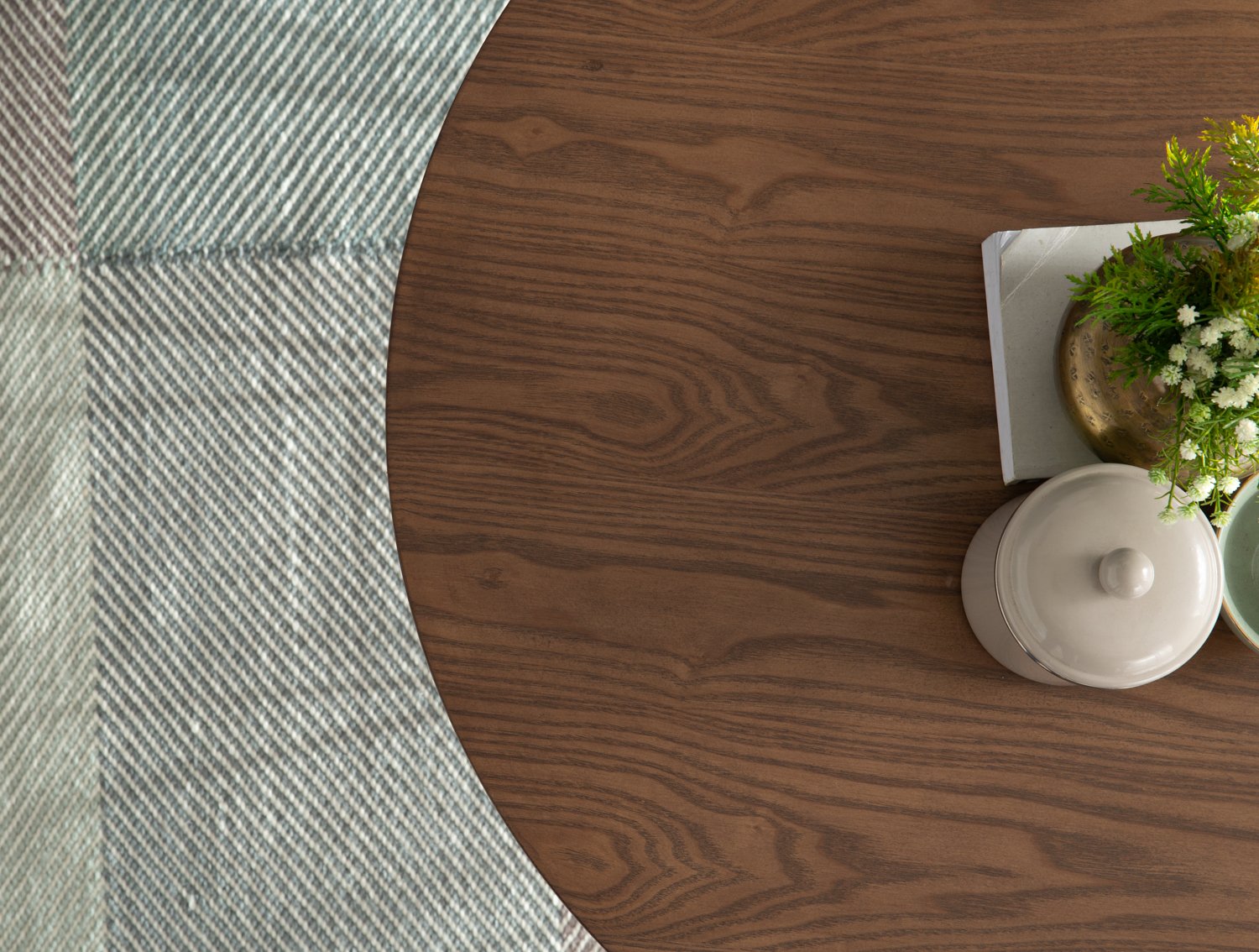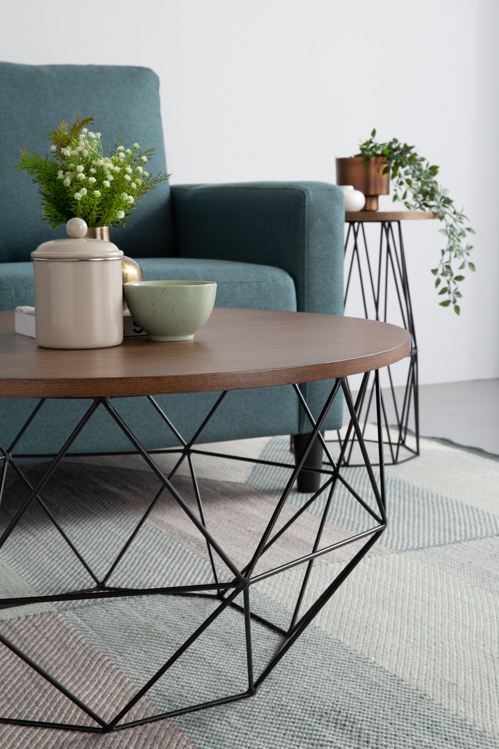 Lozenge round coffee table in Cocoa colour top, Matt Black Epoxy leg