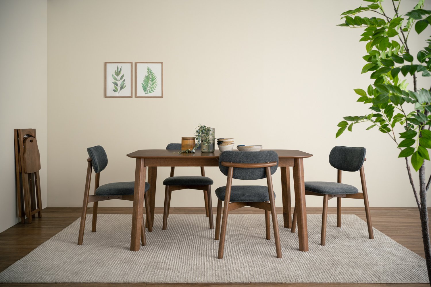 Luca dining chair in Cocoa colour frame, Greymist colour Belfast fabric cushion back and seat