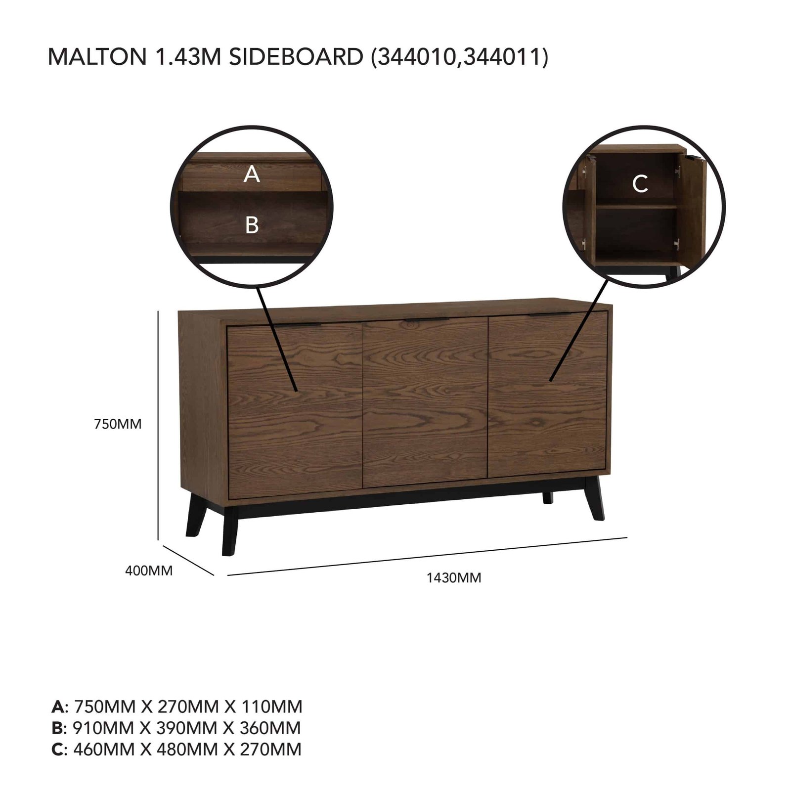 Malton 1.43m sideboard on Black colour leg, Cocoa colour body
