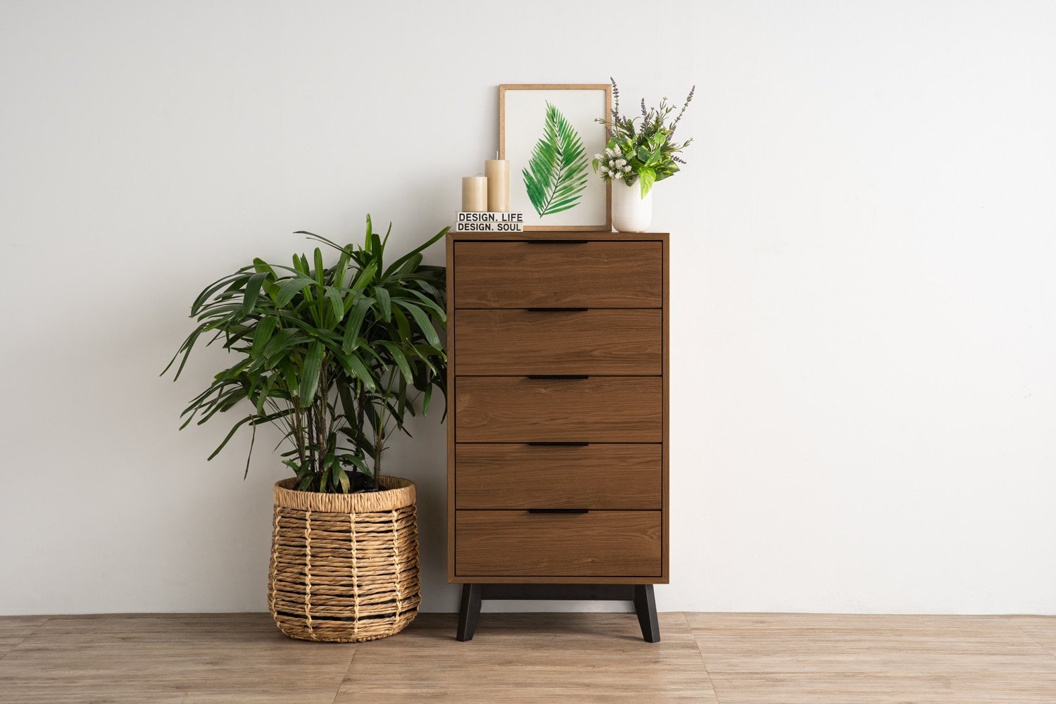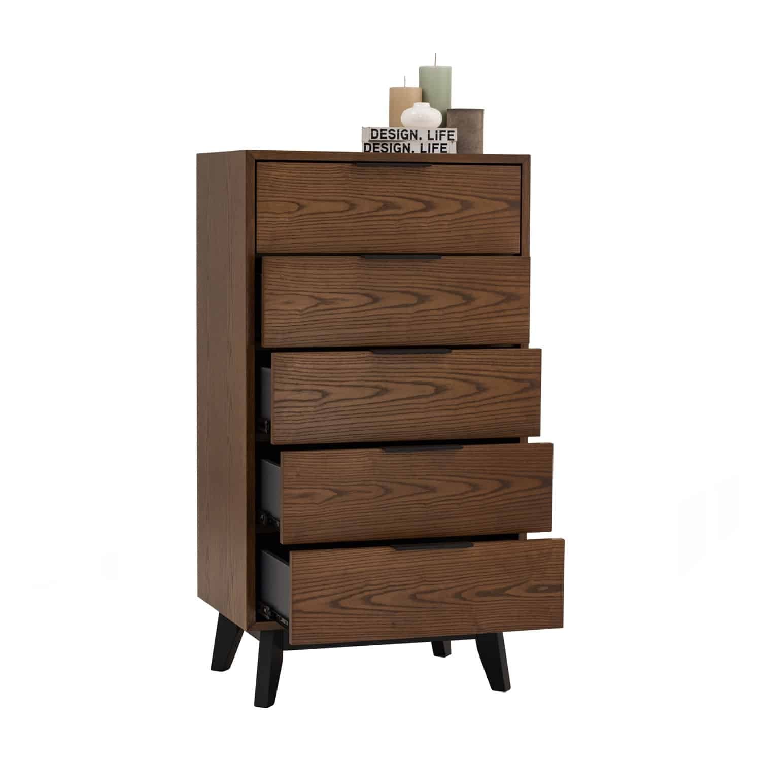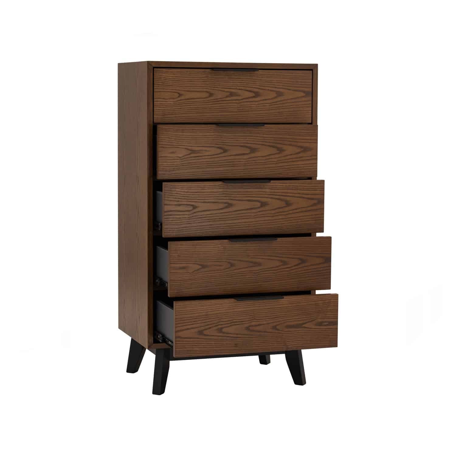 Malton 5 drawer dresser in Black colour leg, Cocoa colour body