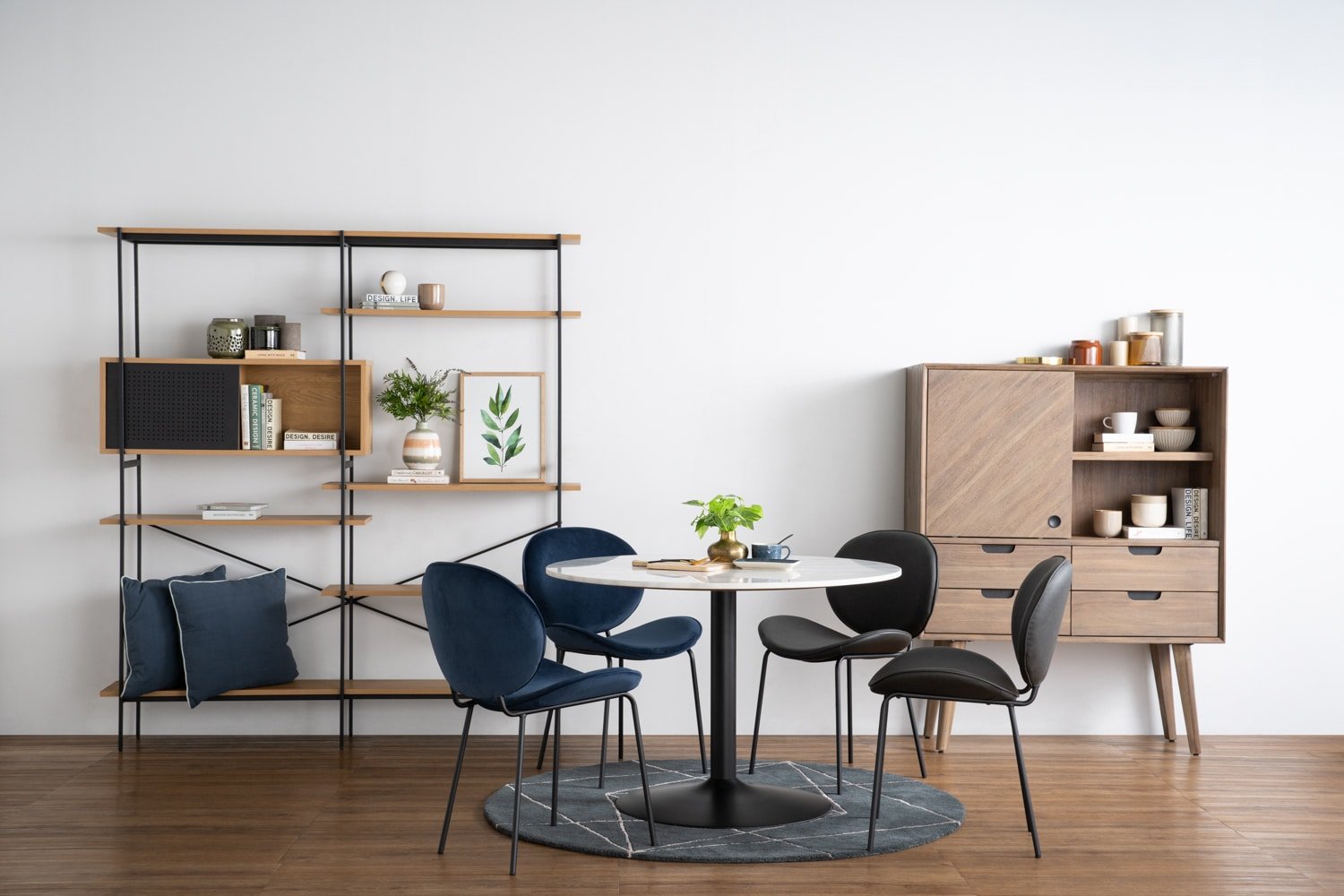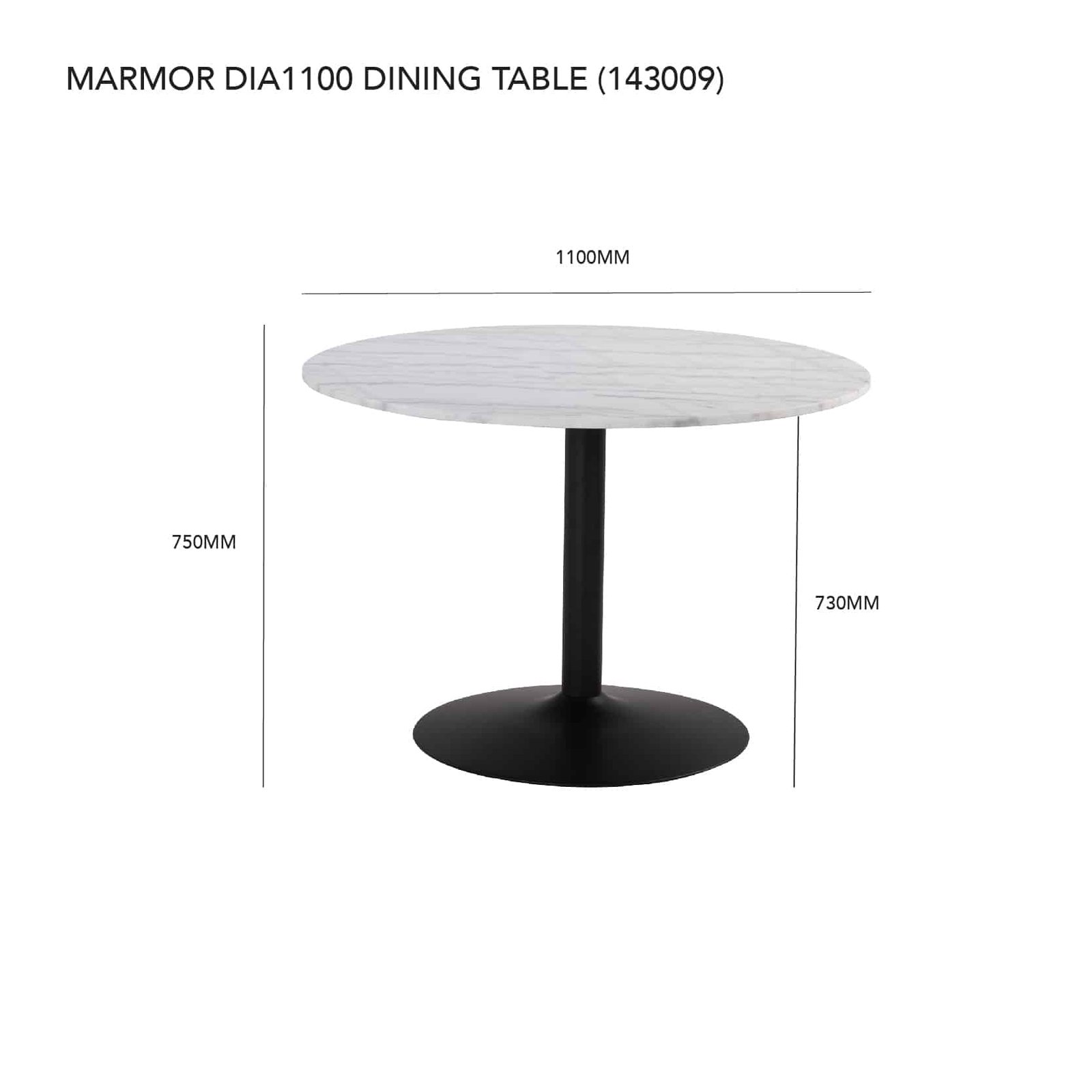 Marmor Dia 1100 Round Dining Table in Matt Black Epoxy colour leg, White colour marble top