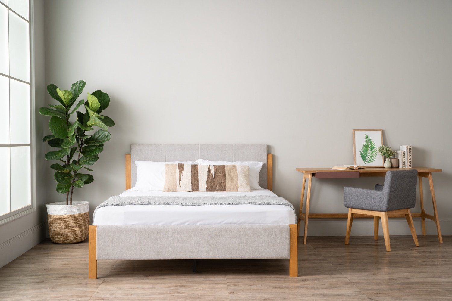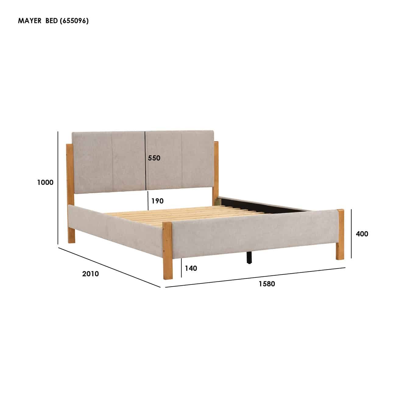 Mayer Queen bed on Black colour leg, Light Grey colour Savana fabric (Fit mattress: 1520mm x 1910mm)