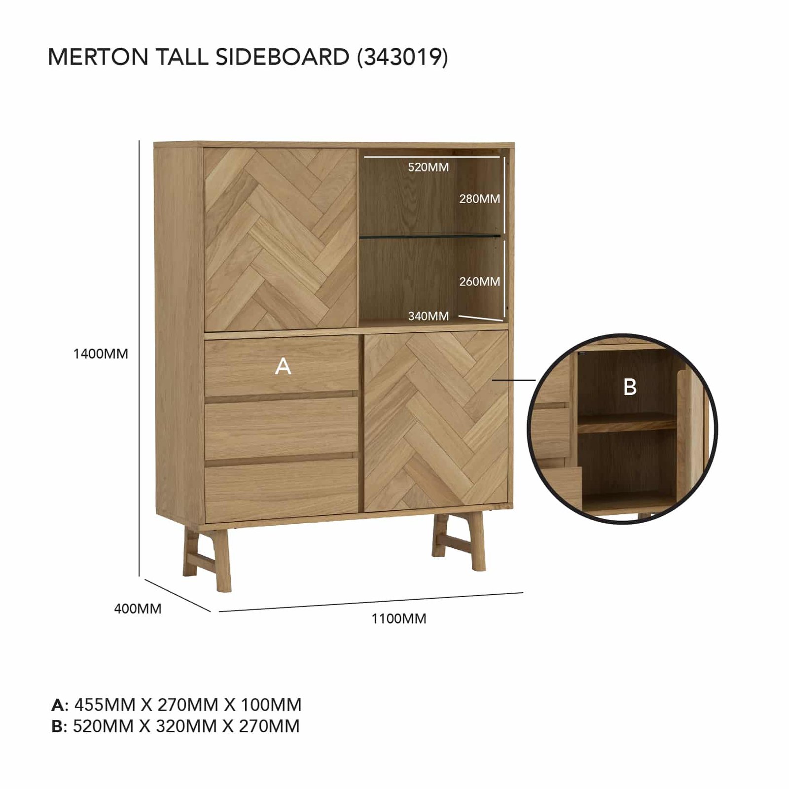 Merton Tall Sideboard with 3 drawer in Natural Oak colour