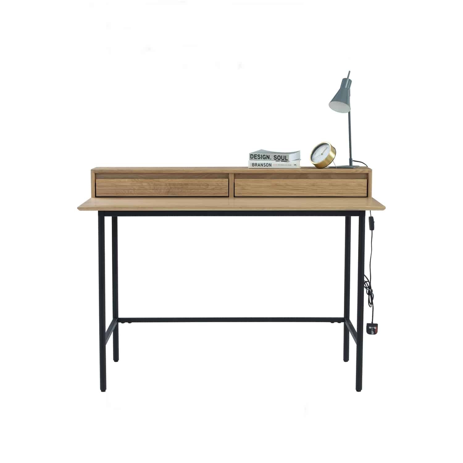 Merton Working Desk with Sand Black colour frame, Natural Oak colour shelve