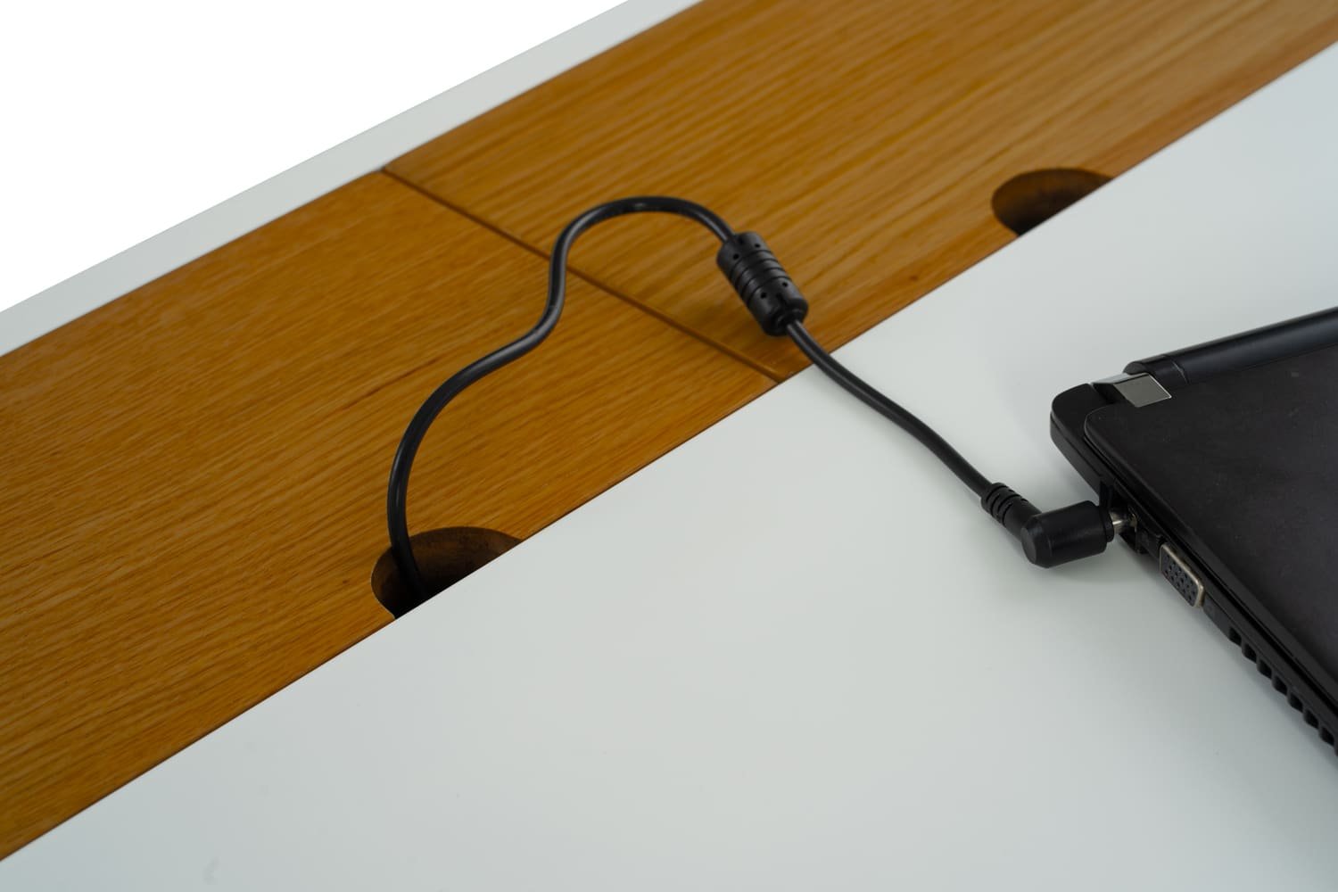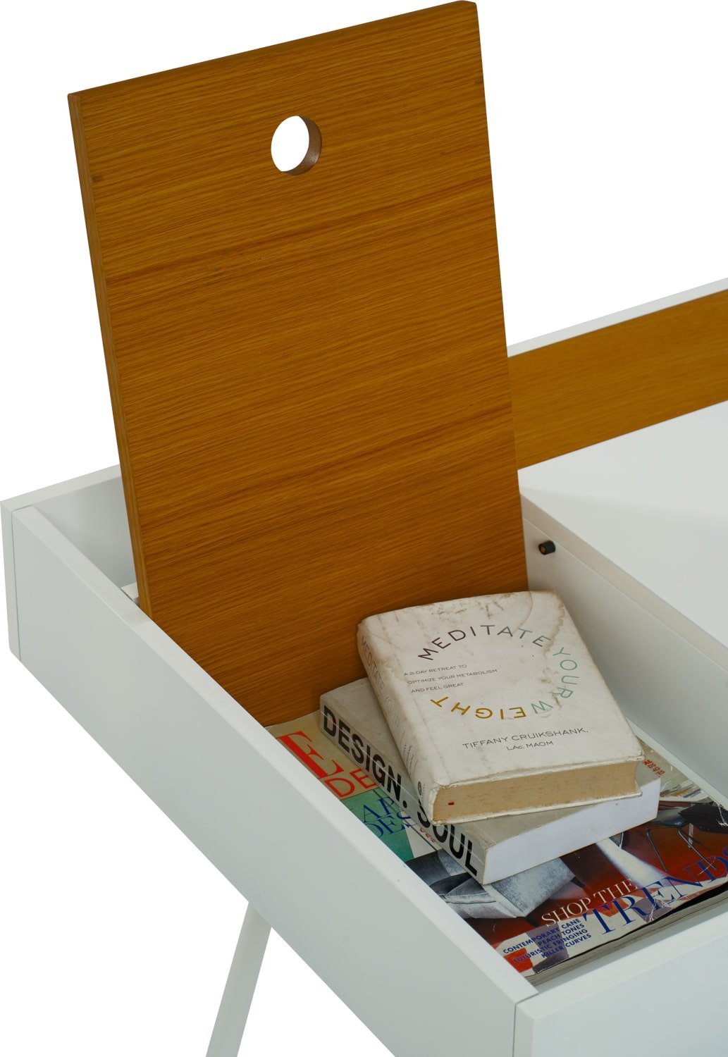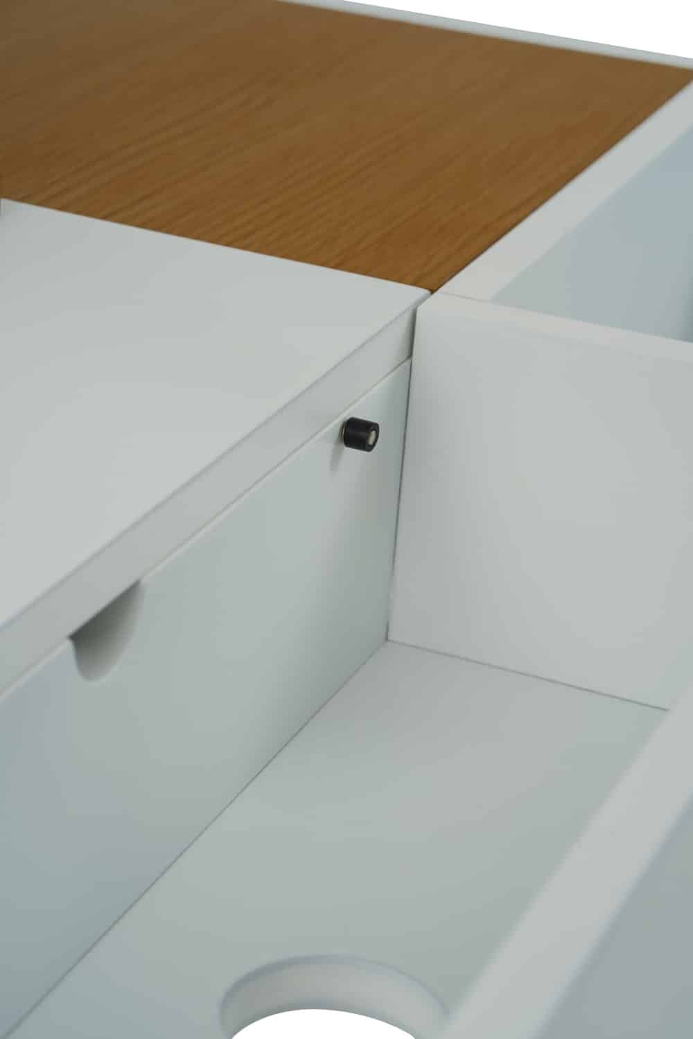Morse working desk in White Lacquered and Oak Veneer with Matt White Epoxy leg